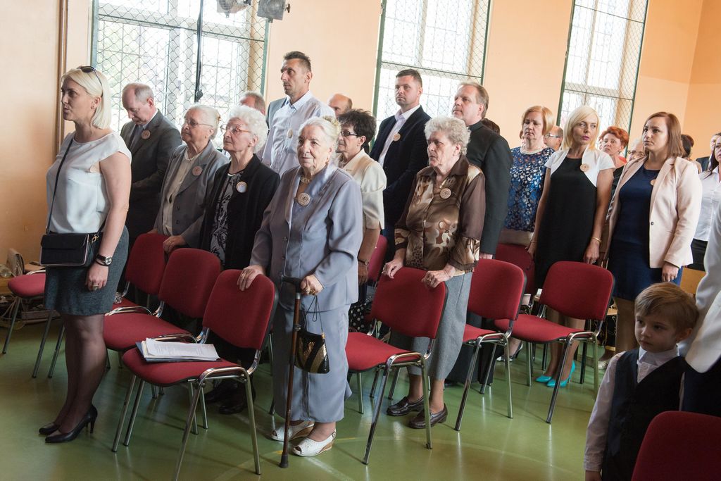 Uroczystości obchodów sześćdziesięciolecia Szkoły Podstawowej rozpoczęto wspólnym odśpiewaniem hymnu szkoły. Następnie, w pięknie udekorowanej sali gimnastycznej, pani dyrektor Beata Drozd uroczyście przywitała przybyłych na jubileusz gości, absolwentów szkoły, byłych jej pracowników, jak również rodziców: