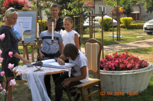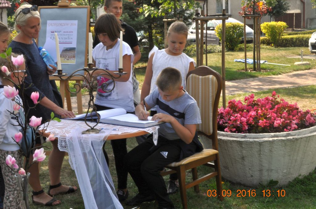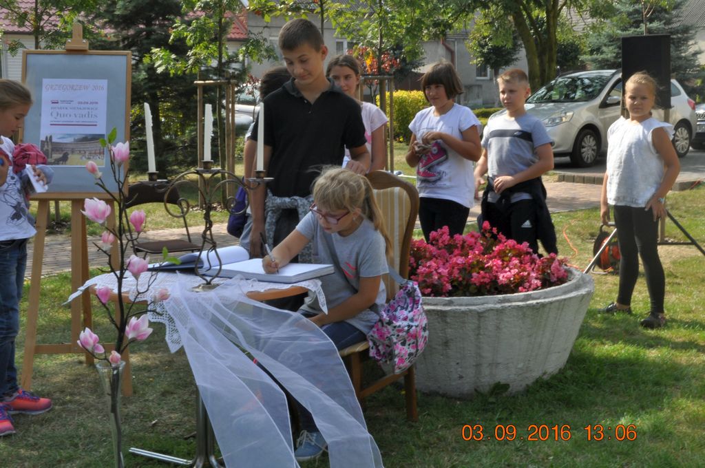 3 września w parku przy Urzędzie Gminy w Grzegorzewie spotkali się miłośnicy literatury polskiej, aby przeczytać i wysłuchać fragmenty powieści Henryka Sienkiewicza "Quo vadis”.