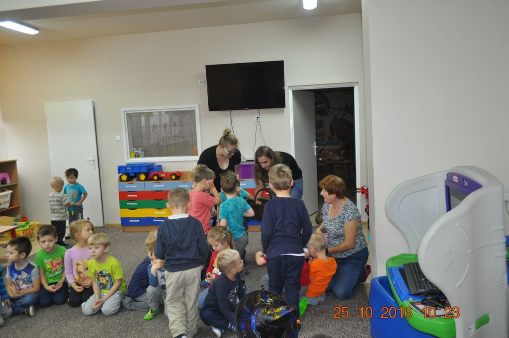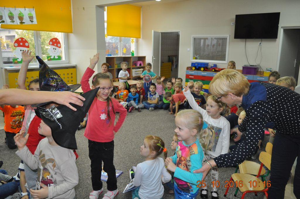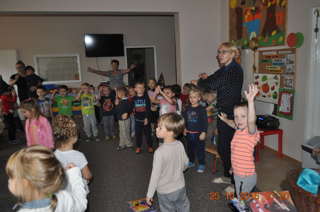 25 października Biblioteka odwiedziła Przedszkolaków w Gminnym Przedszkolu w Grzegorzewie i zaprosiła do wysłuchania najpopularniejszych baśni i bajek polskich. Największa niespodzianka przewidziana była jednak na koniec spotkania. Przyszedł czas na gry i zabawy, jakie biblioteka zorganizowała dla najmłodszych. Były to zgadywanki i malowanie twarzy.