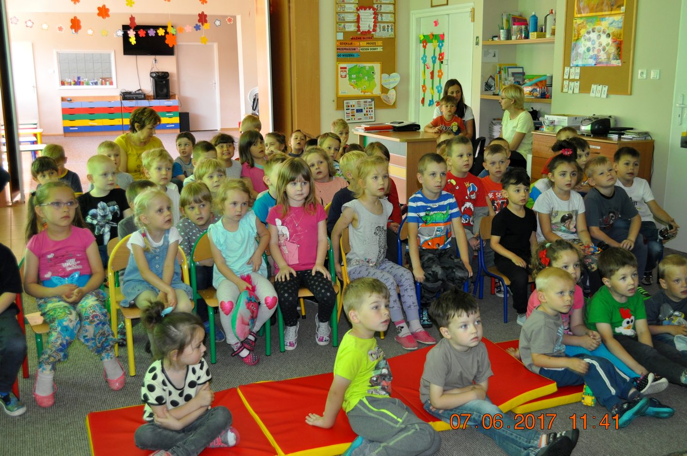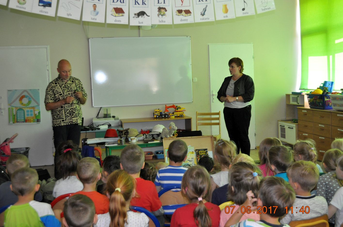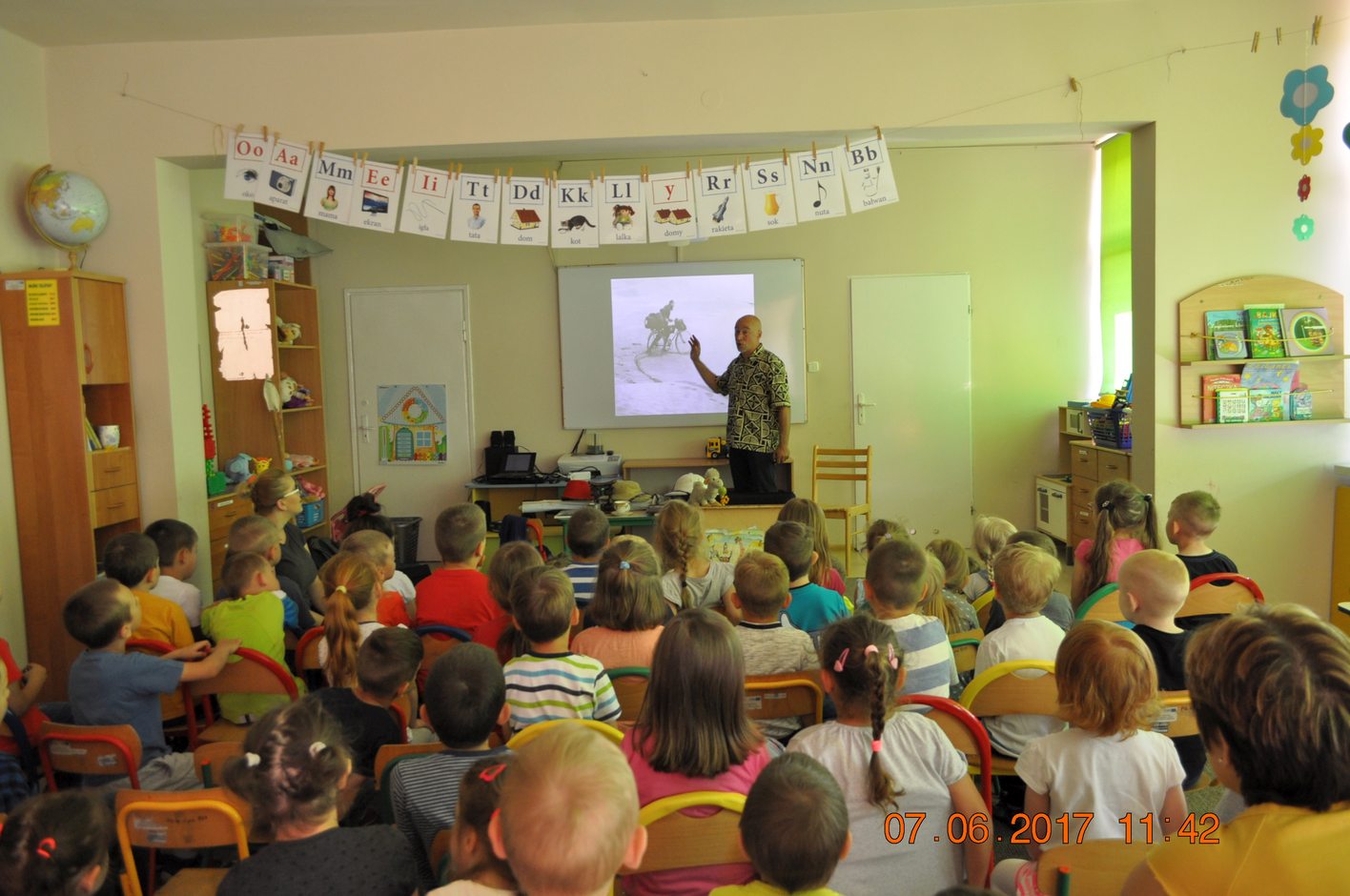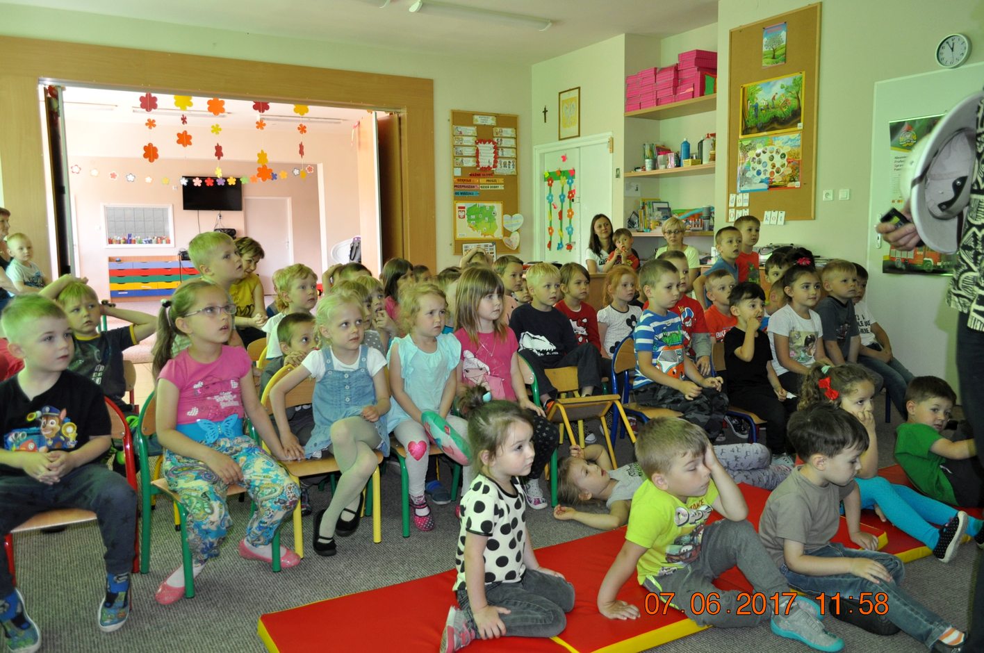 W miłej atmosferze, dzieci z zaciekawieniem słuchały opowieści Pana Łukasza Wierzbickiego. Przedszkolaki były zachwycone.