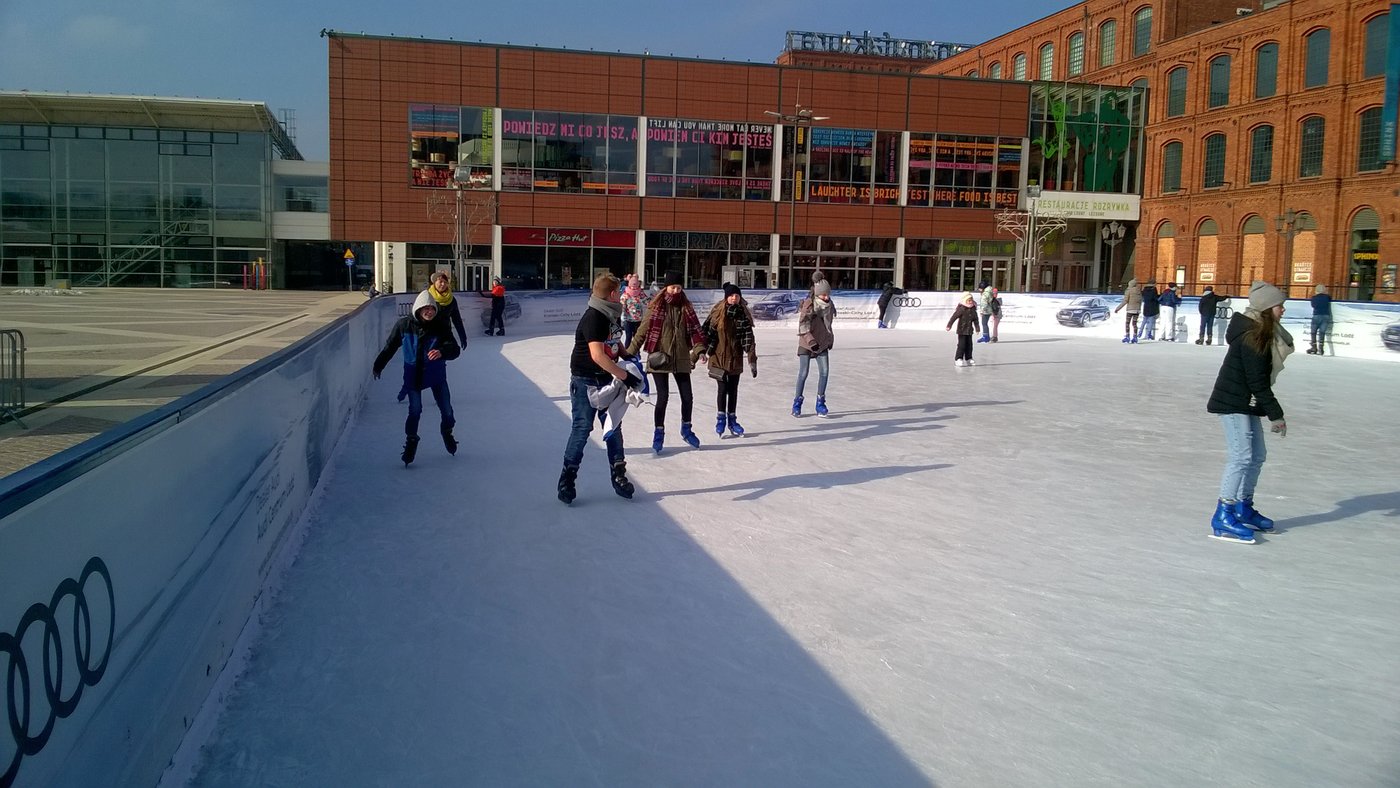 Wycieczka rozpoczęła się od pobytu na lodowisku ,,Manufaktura”. Mając do dyspozycji całe lodowisko mogliśmy obserwować wzloty i upadki nowicjuszy i zaawansowanych łyżwiarzy. Niektórzy wjeżdżali na taflę odważnie, a inni robili to trzymając się bandy, żeby mieć się, czego chwycić w najgorszym momencie. Mimo bolących kolan i kostek zabawa była niepowtarzalna. Zawsze towarzyszył wszystkim uśmiech. Zabawa na lodowisku zachęciła nas do aktywnego spędzania wolnego czasu.