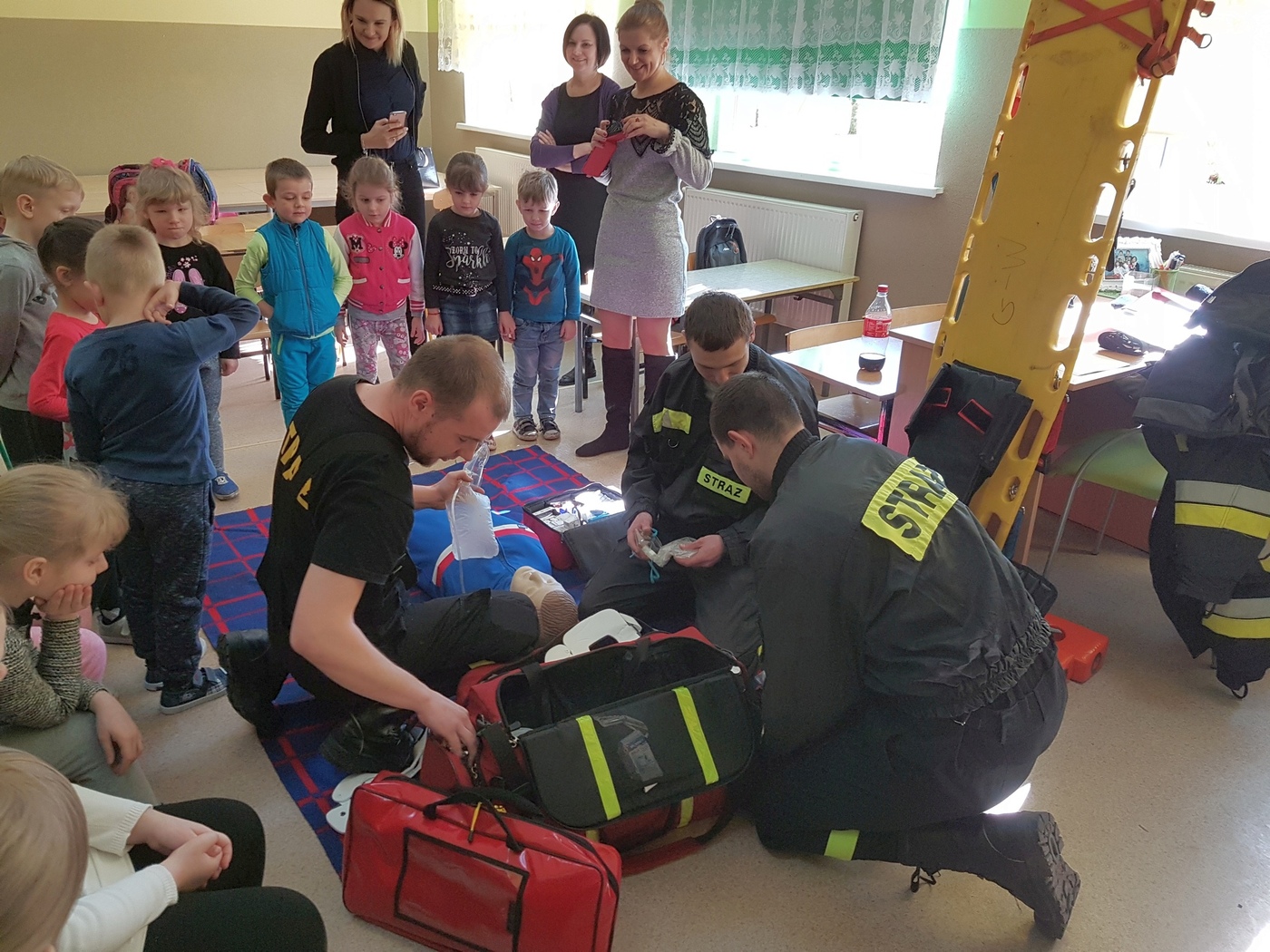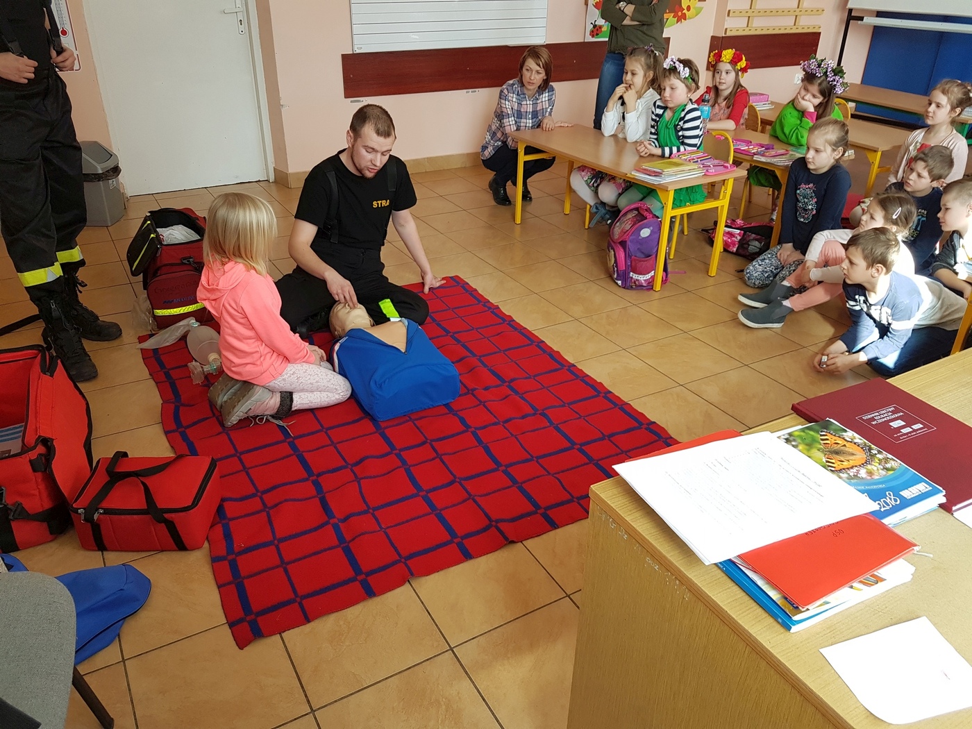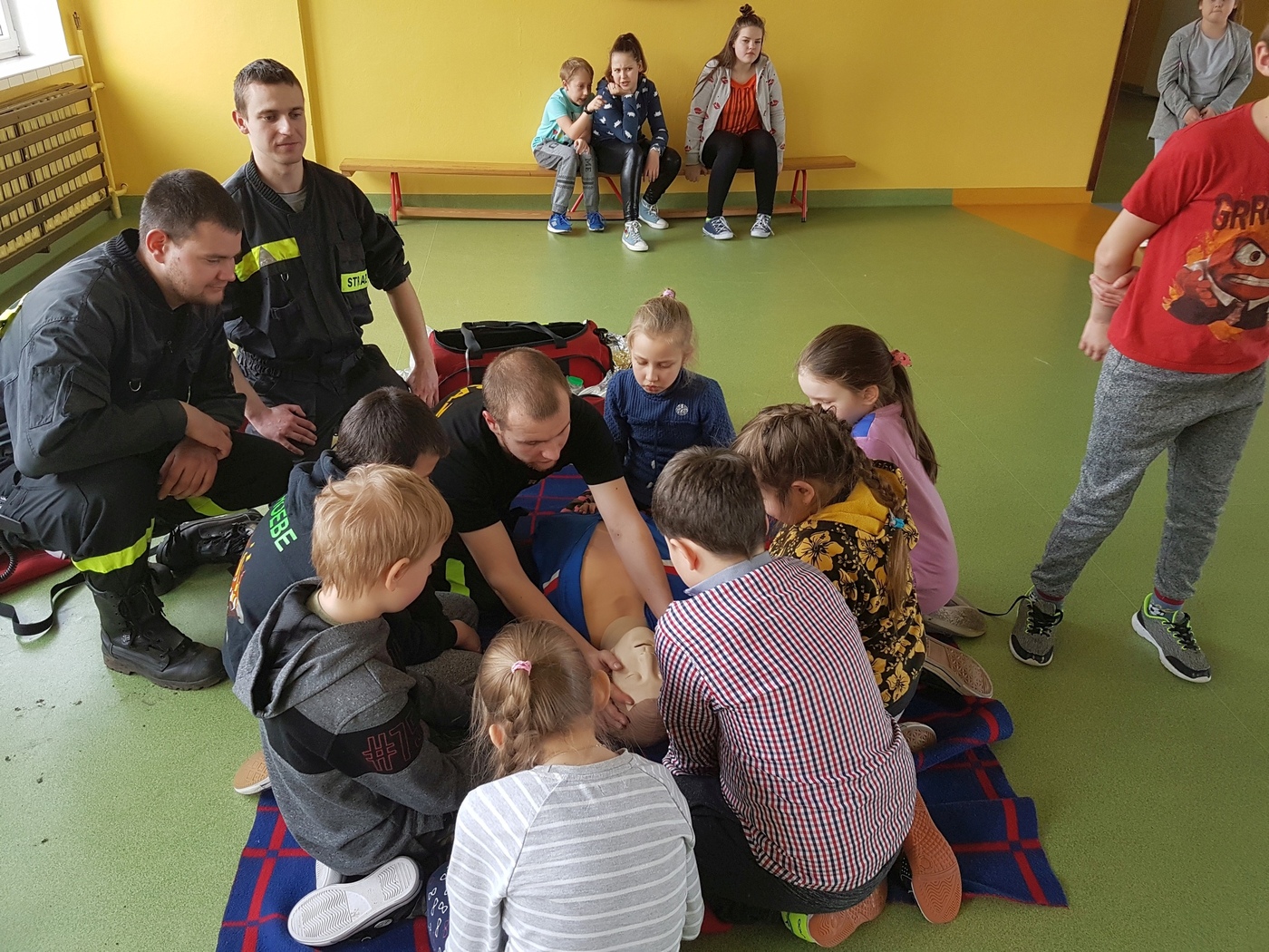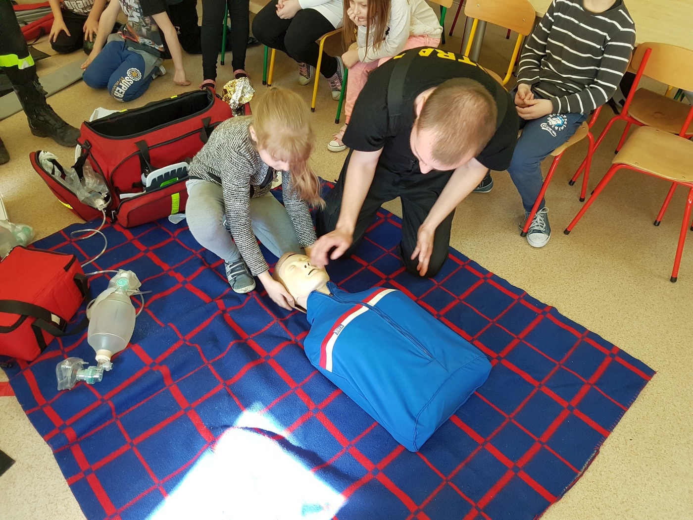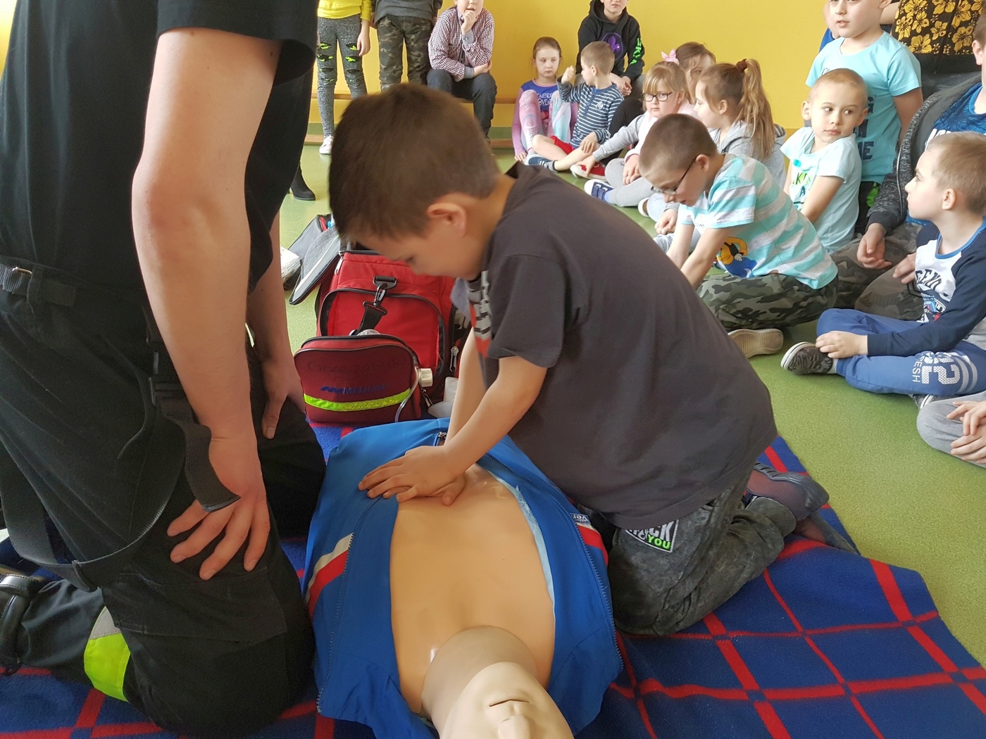 Praktyczne pokazy udzielenia pierwszej pomocy cieszyły się ogromnym zainteresowaniem wśród najmłodszych.
