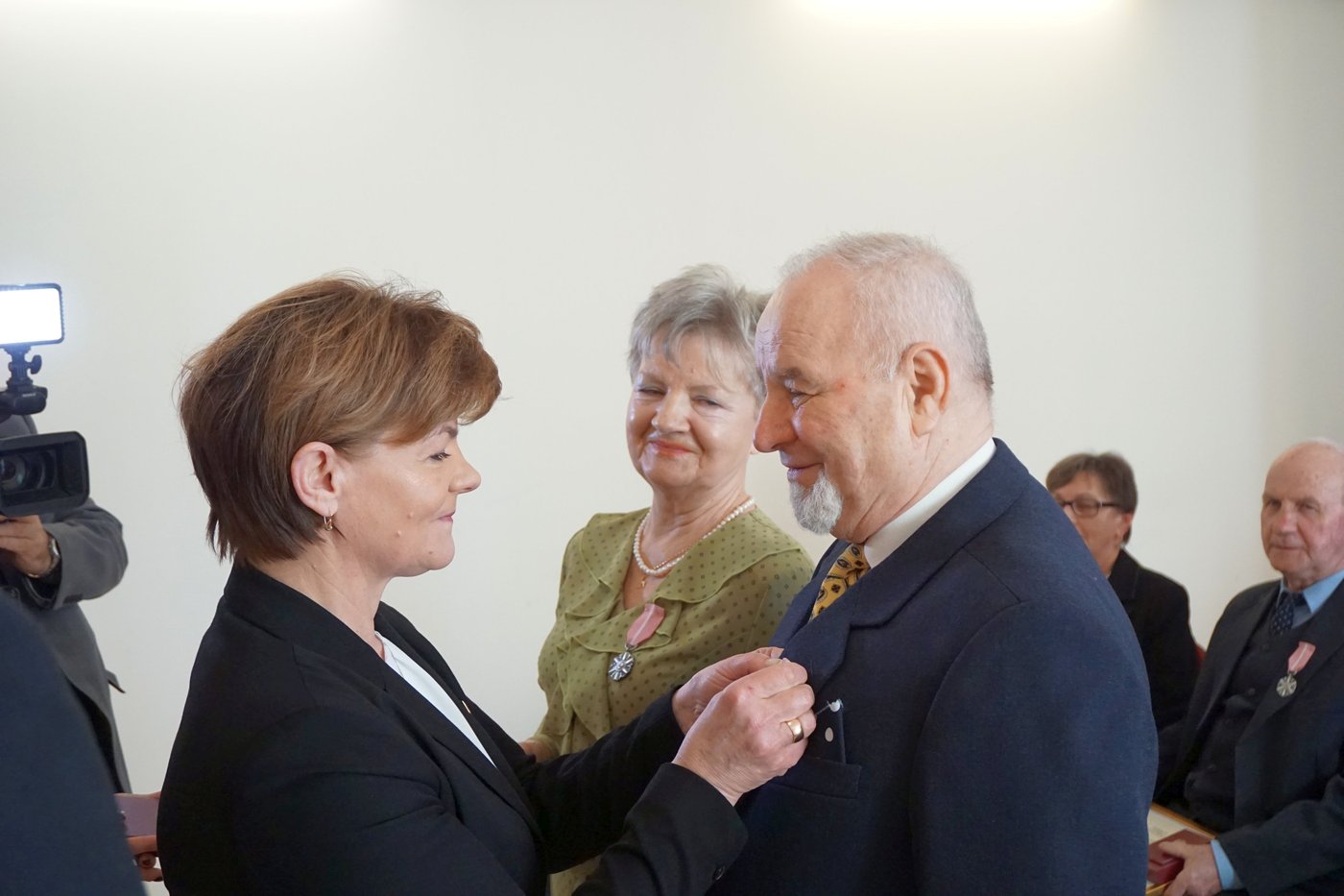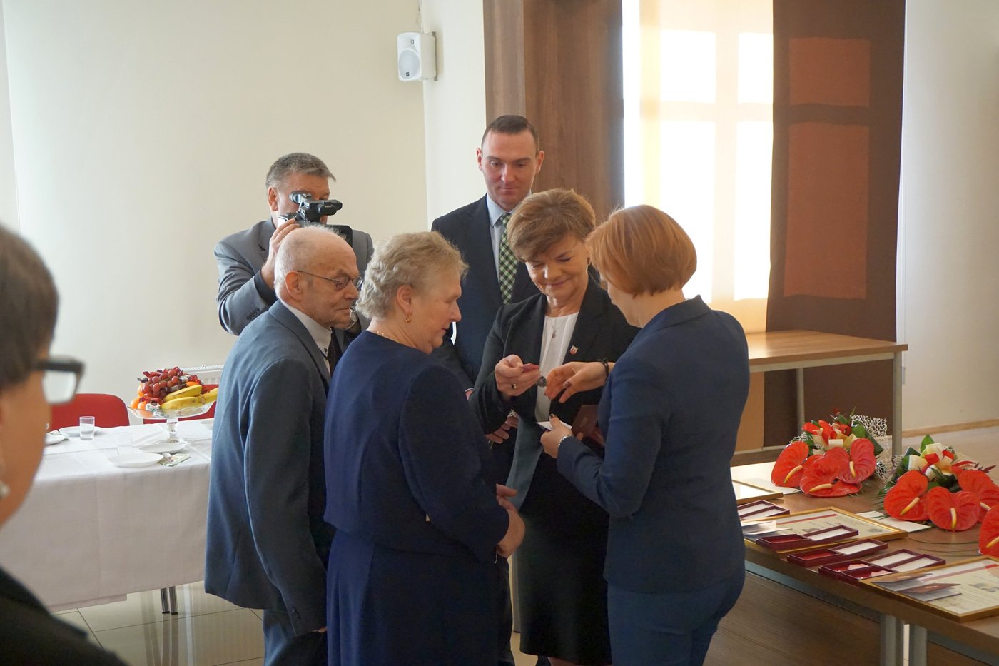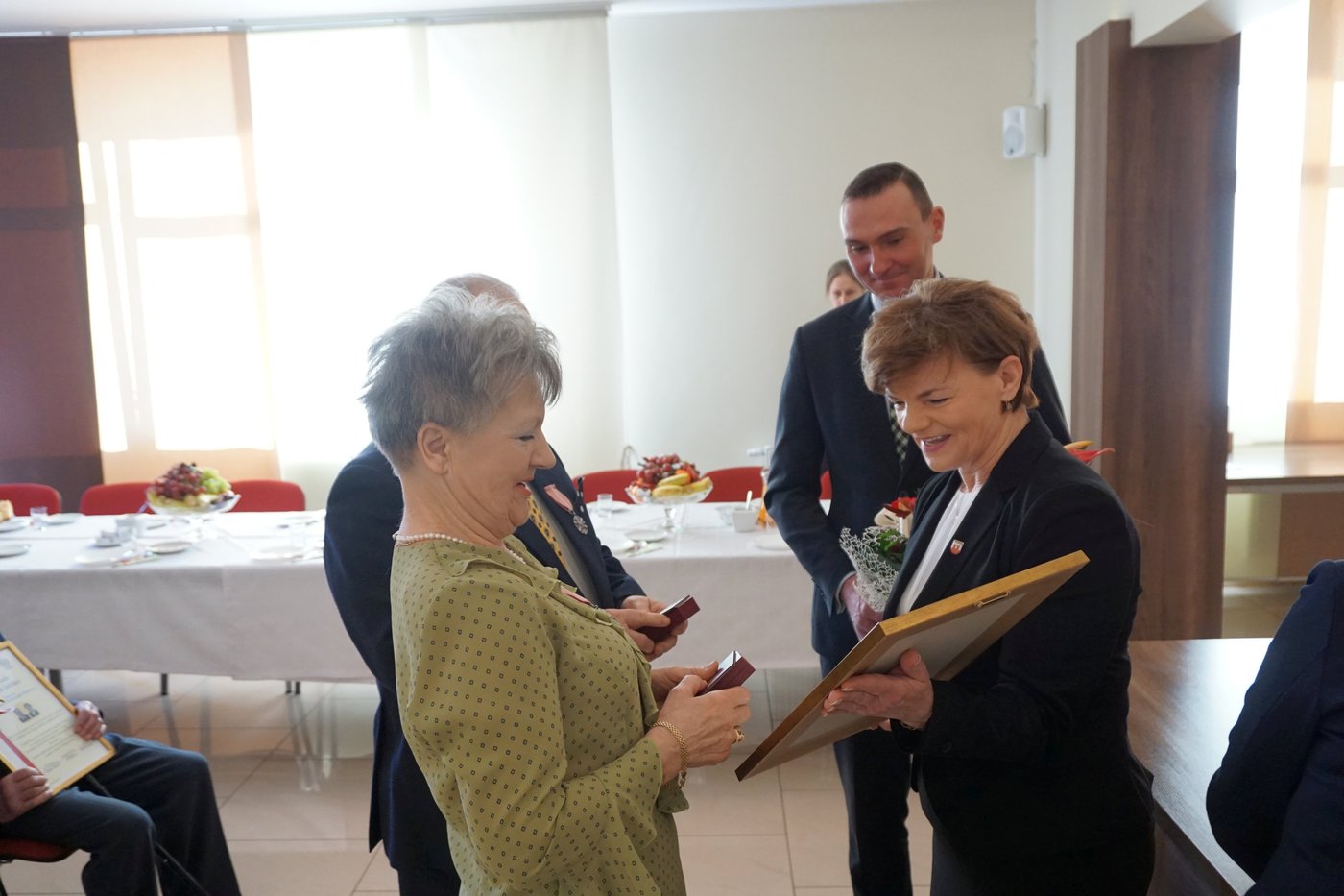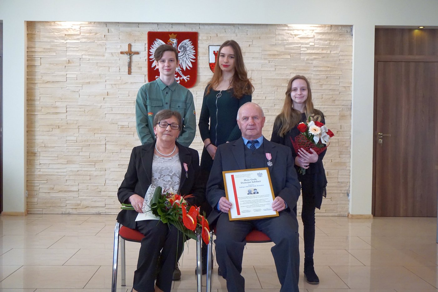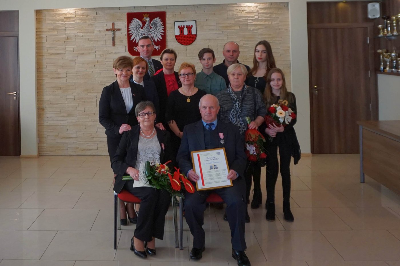 Bohaterowie uroczystości nie kryli wzruszenia i zaskoczenia, kiedy z rąk Wójta Gminy Pani Bożeny Dominiak otrzymywali nie tylko Medale za Długoletnie Pożycie Małżeńskie, ale też specjalnie wydrukowany na tę okazję oryginalny akt małżeństwa oraz pamiątkowy dyplom z życzeniami z okazji jubileuszu, zawierający zdjęcia małżonków. Dzięki temu mogli przypomnieć sobie pierwsze chwile swego związku.