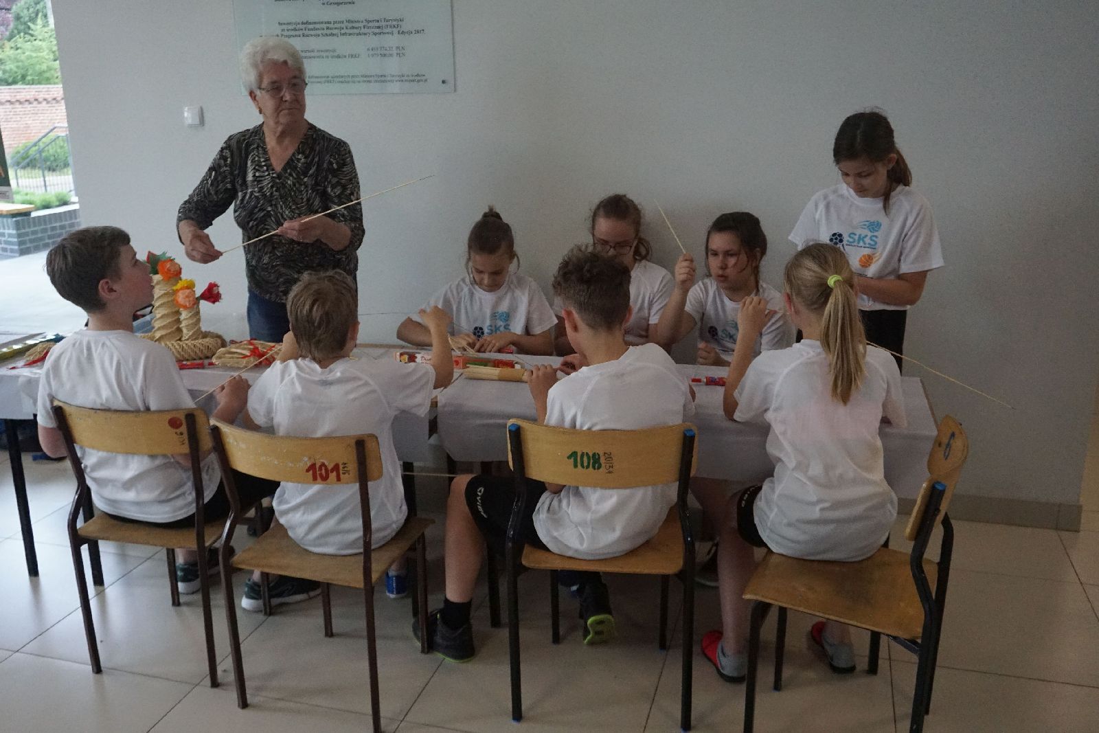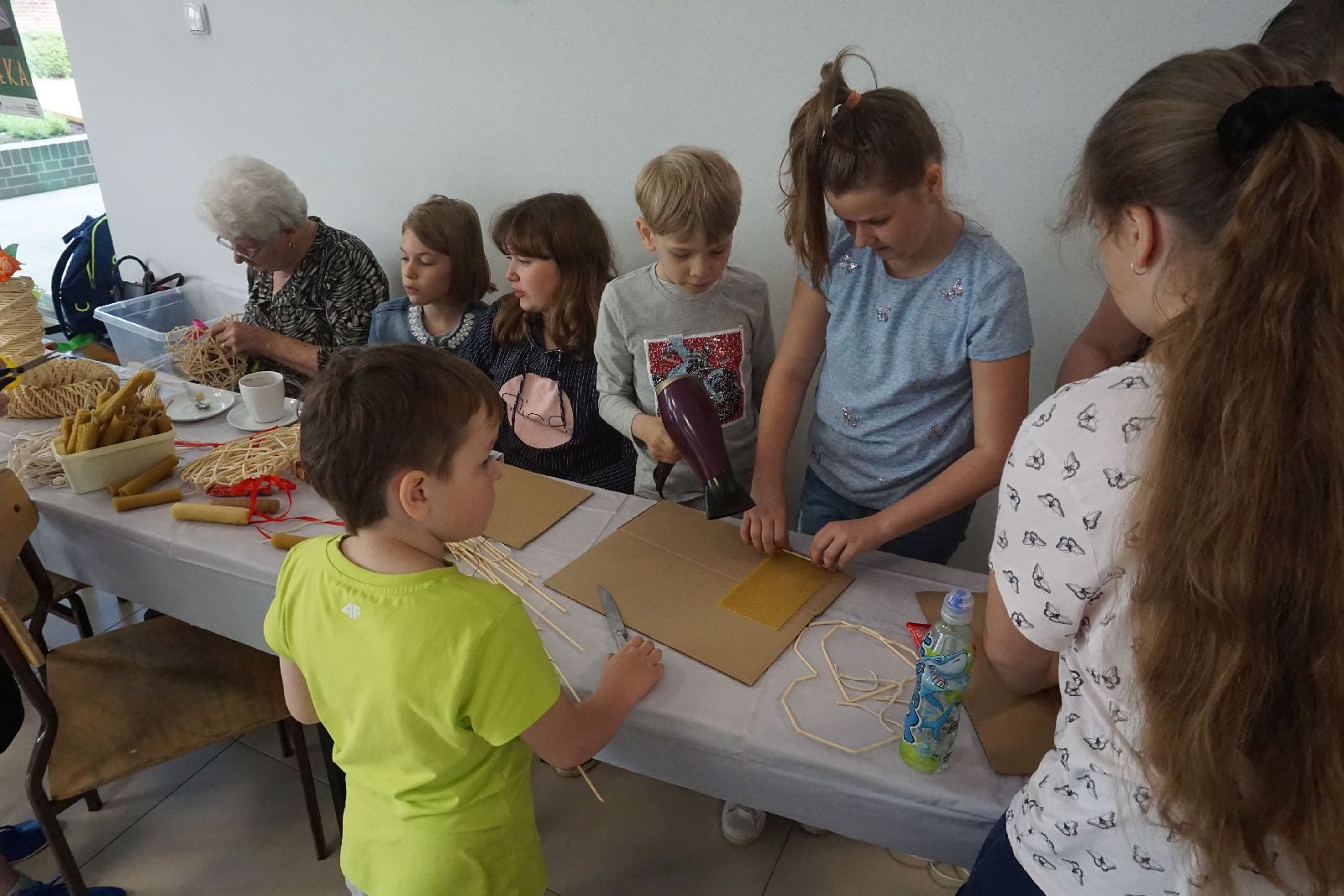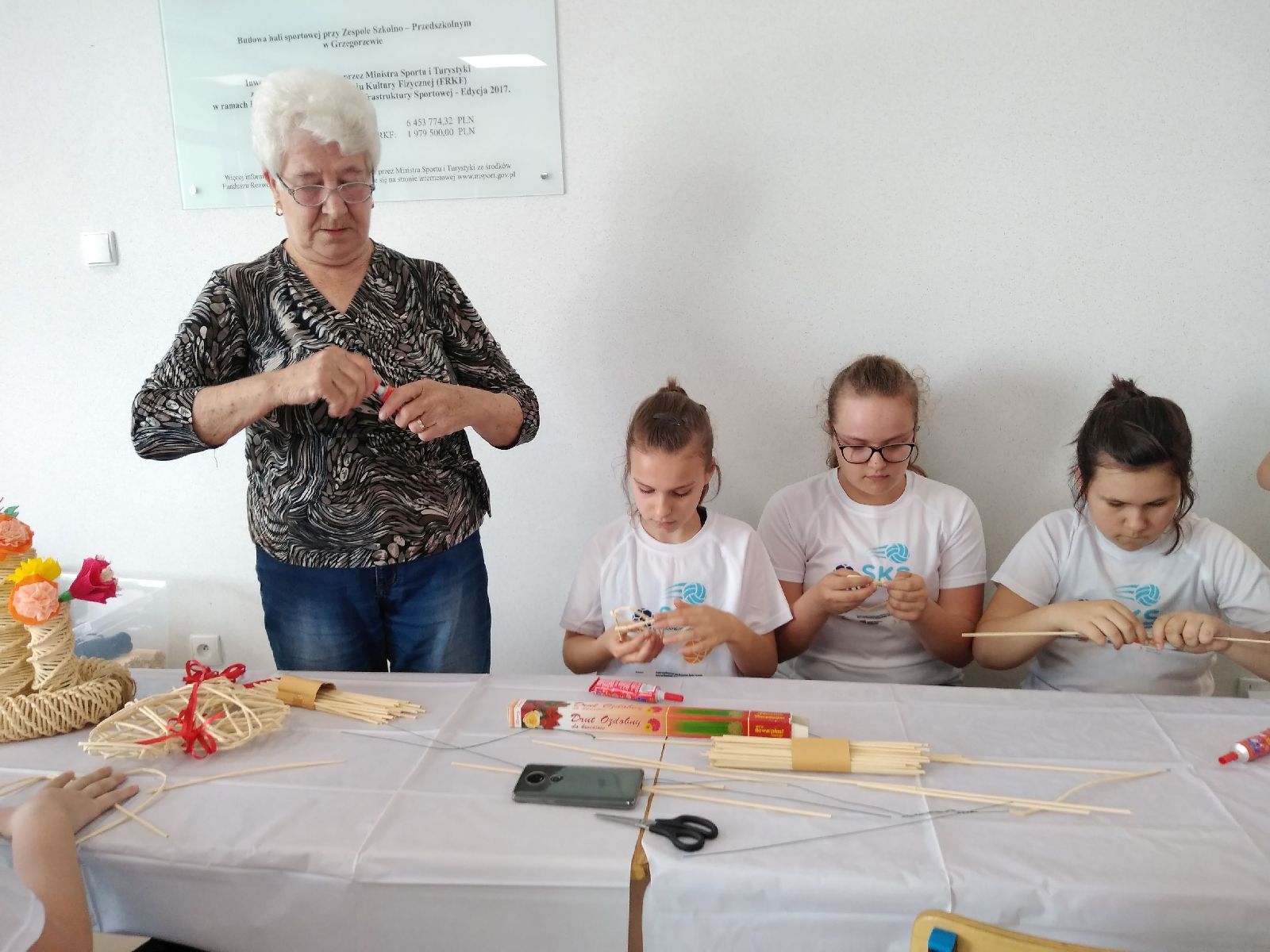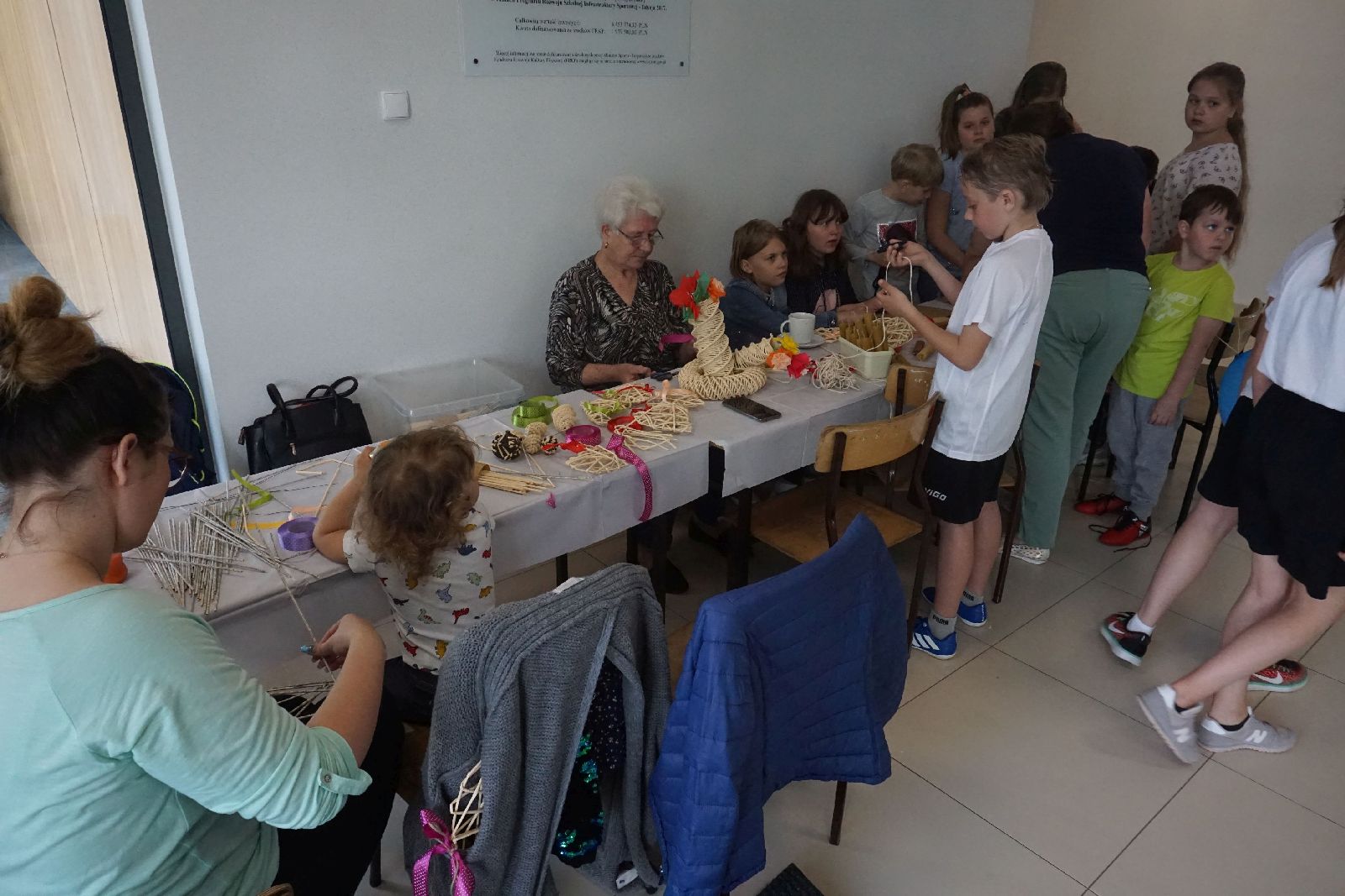 Zajęcia z plecionkarstwa poprowadziła doświadczona ,,artystka lokalna’’ pani Stefania Dorabiała, która wprowadziła dzieci w świat wikliny papierowej i recyklingu .