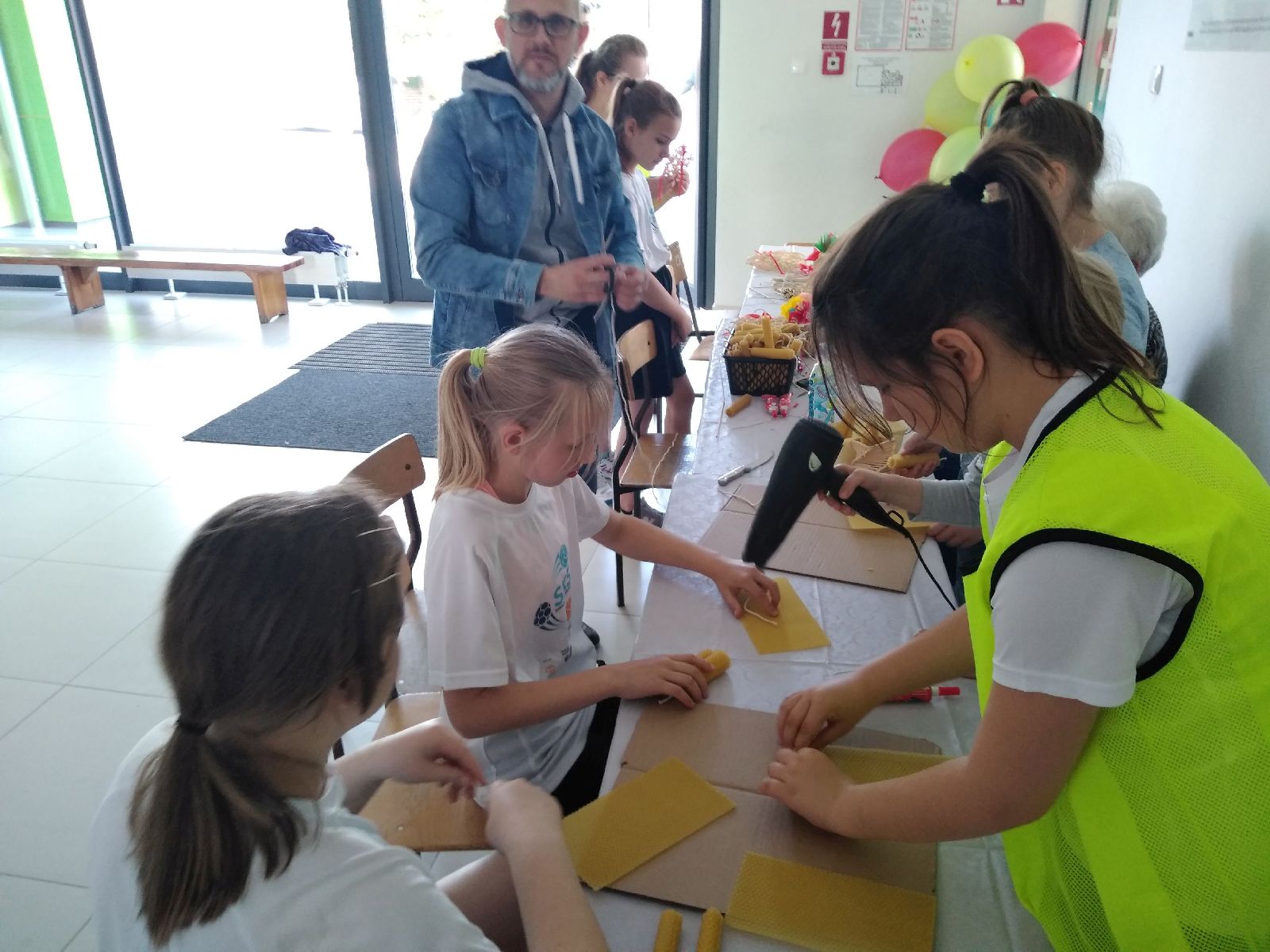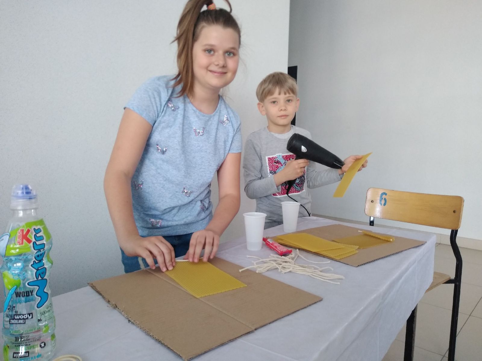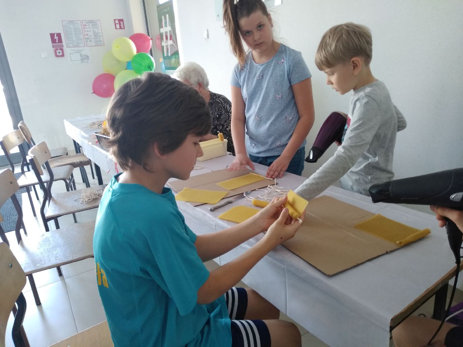 Również tego dnia odbyły się warsztaty robienia świec z węzy pszczelarskiej, które poprowadziła pani Agnieszka Malesza –Dyrektor Biblioteki.