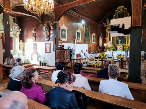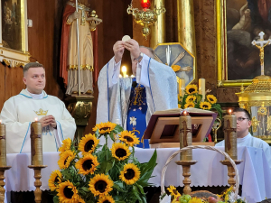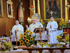 Następnie modląc się za wszystkich rolników i dziękując za ich ciężką pracę na ołtarz zostały złożone płody ziemi oraz chleb.