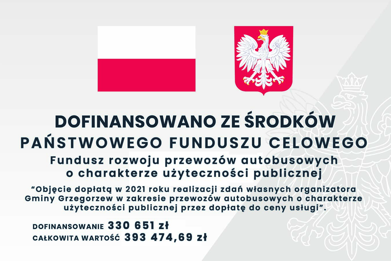 Wójt Gminy Grzegorzew zawarł z Wojewodą Wielkopolskim umowę na udzielenie dopłaty, dzięki której gmina otrzymała dofinansowanie z Funduszu rozwoju przewozów autobusowych o charakterze użyteczności publicznej, na utrzymanie 10 linii komunikacyjnych w 2021 roku.