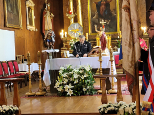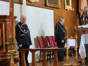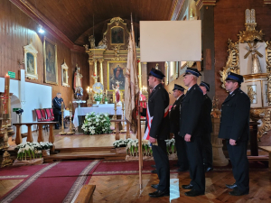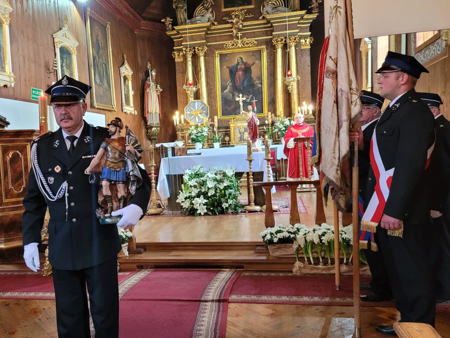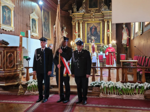 W trakcie Mszy Św. Ksiądz Prałat poświęcił figurkę Św. Floriana patrona Strażaków, którą ufundował Pan Piotr Opas - Członek Zarządu Głównego Związku Ochotniczych Straży Pożarnych RP w Warszawie.