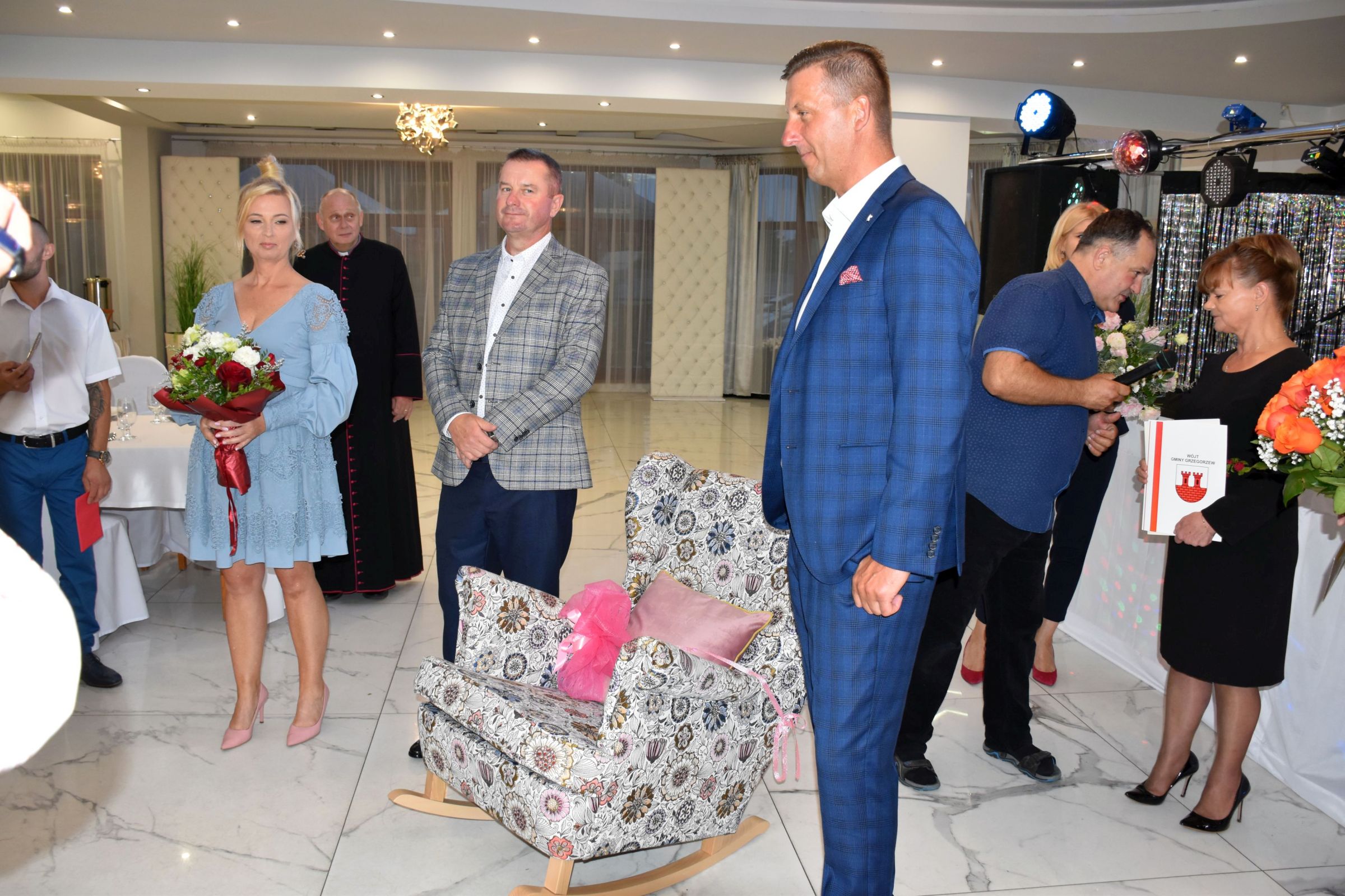 Na zaproszenie rodziny, Panią Kazimierę odwiedziła Wójt Bożena Dominiak wraz z Przewodniczącym Rady Gminy Tadeuszem Sosnowskim, Panią kierownik Zakładu Ubezpieczeń Społecznych Inspektoratu w Kole Agatą Kawalec-Świątek oraz Panią kierownik Urzędu Stanu Cywilnego w Grzegorzewie Anną Wawrzyniak. Złożyli oni Pani Kazimierze serdeczne życzenia dalszych wielu lat w zdrowiu i pomyślności wręczając bukiety kwiatów, list gratulacyjny oraz oryginalny akt urodzenia jubilatki.