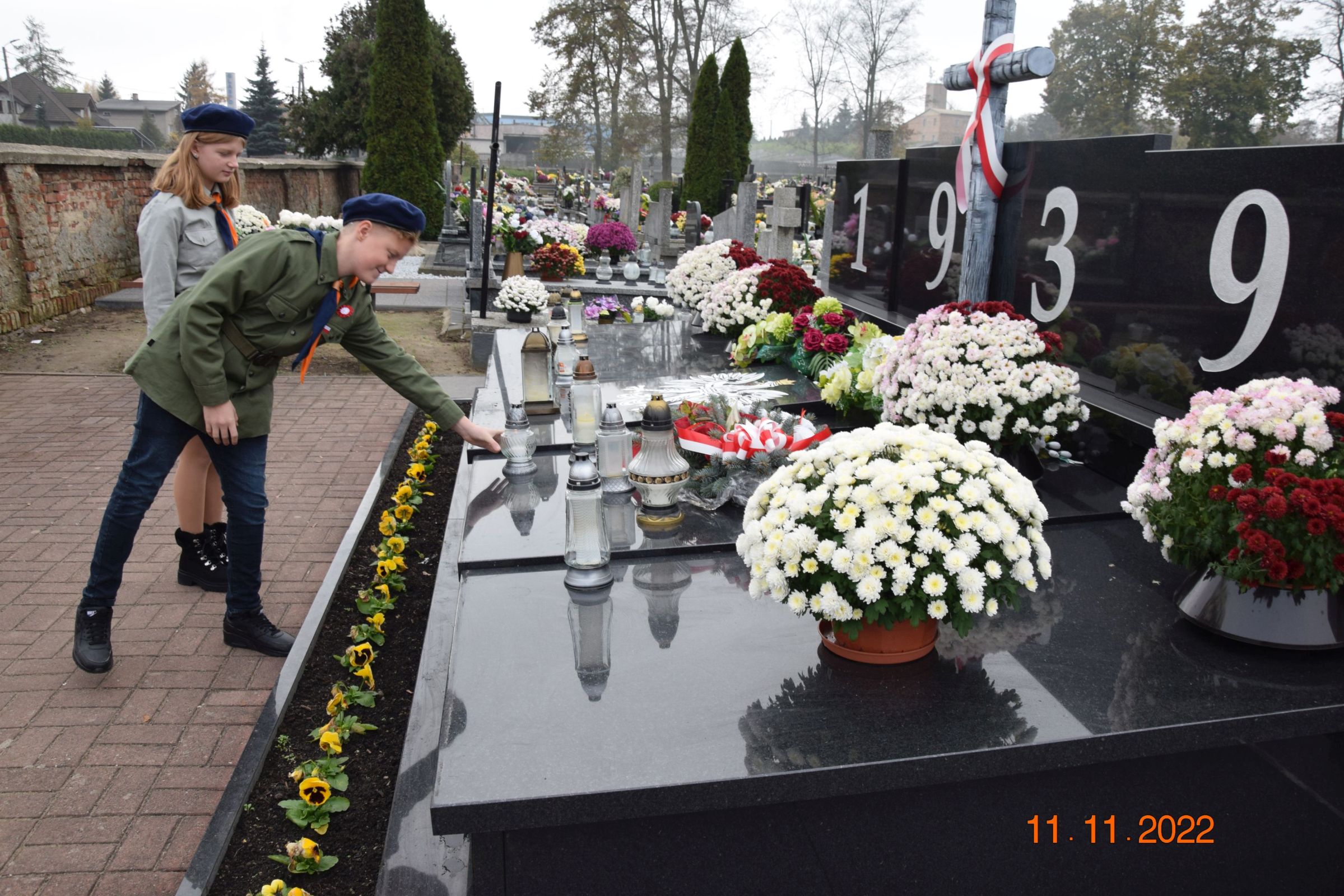 Dziękujemy również harcerzom za pełnienie warty przy tablicy upamiętniającej poległych w walce o niepodległość oraz zapalenie symbolicznych zniczy na grobach osób, które oddały życie w obronie Ojczyzny.