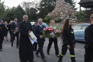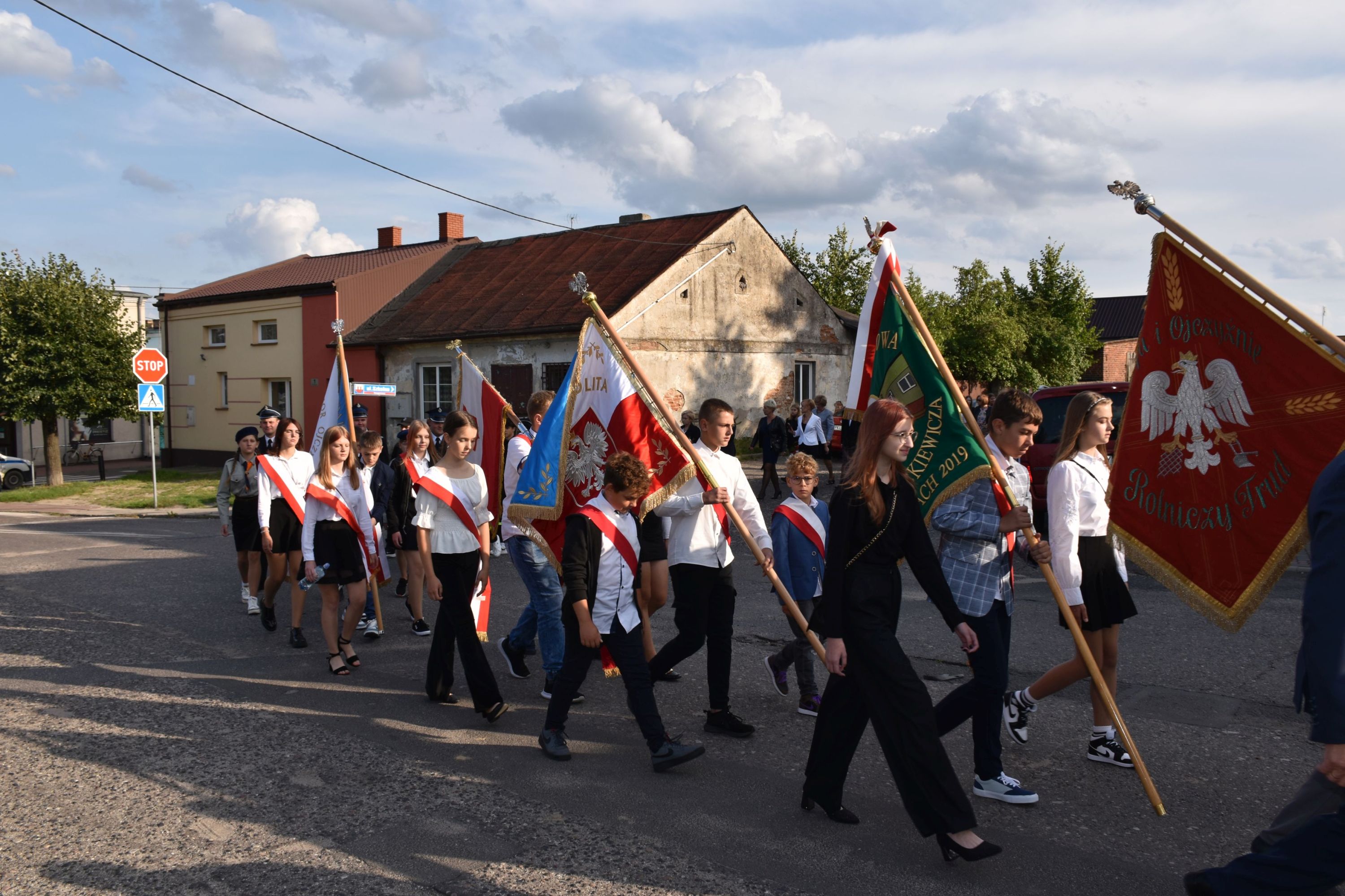 Po zbiórce przed Domem Strażaka samorządowcy, poczty sztandarowe, delegacje jednostek OSP, placówek oświatowych i mieszkańcy gminy na czele z orkiestrą dętą udali się do kościoła parafialnego, aby uczestniczyć we Mszy Świętej w intencji poległych w obronie naszej ojczyzny.