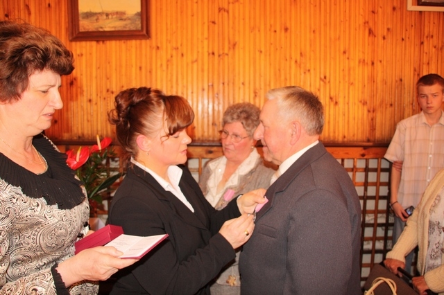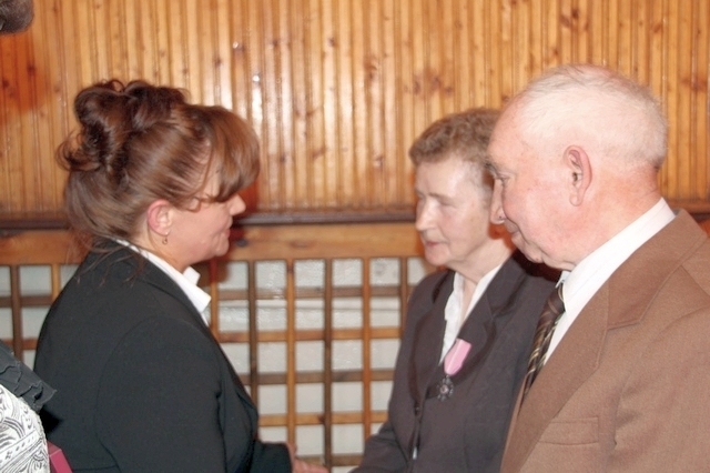 Aktu dekoracji medalami dokonała w imieniu Prezydenta RP Bożena Dominiak Wójt Gminy wraz z Przewodniczącym Rady Gminy Waldemarem Banasiakiem i Z-cą Kierownika USC Urszulą Kikosicką.