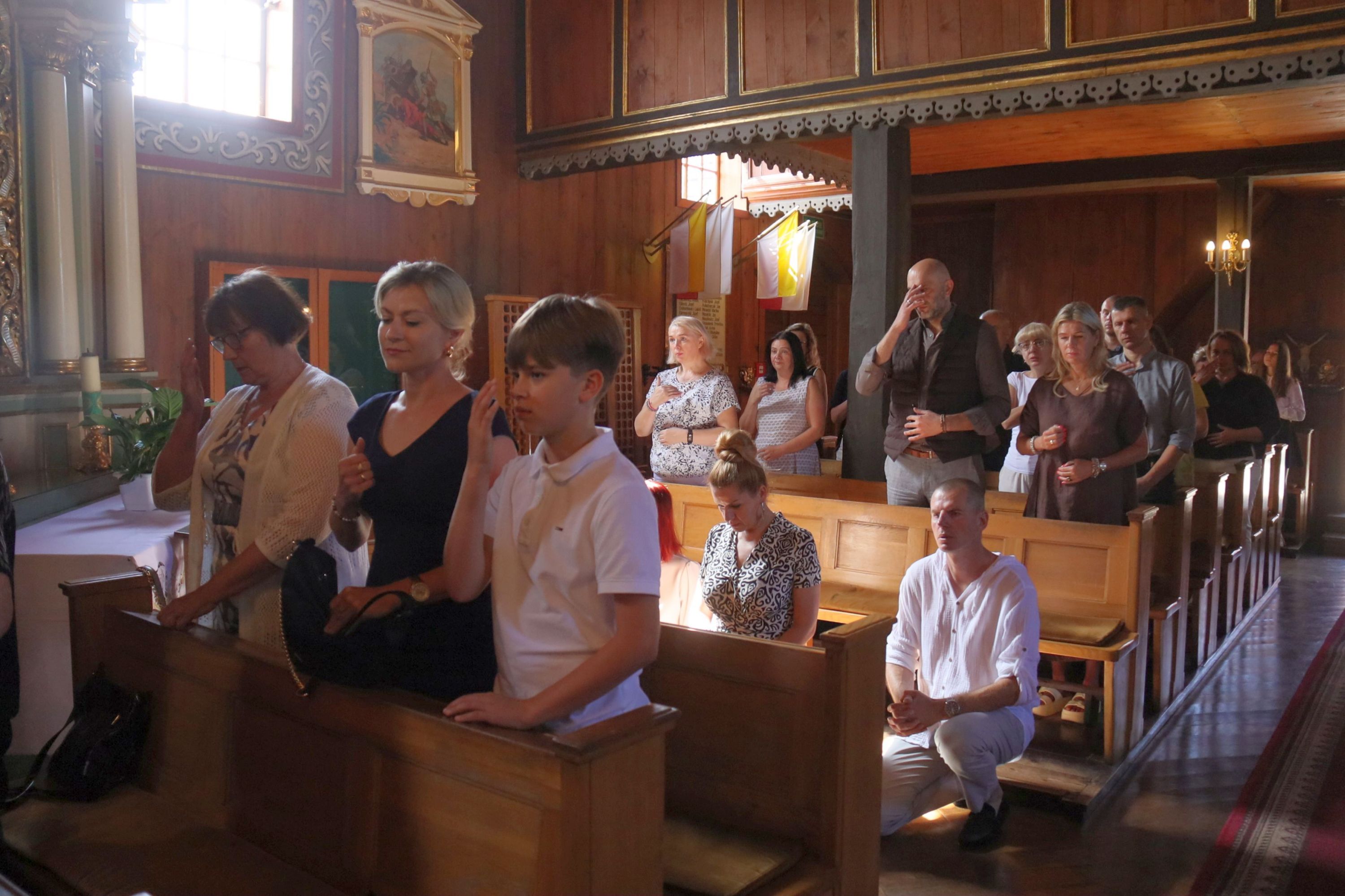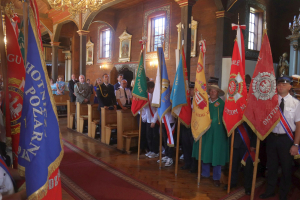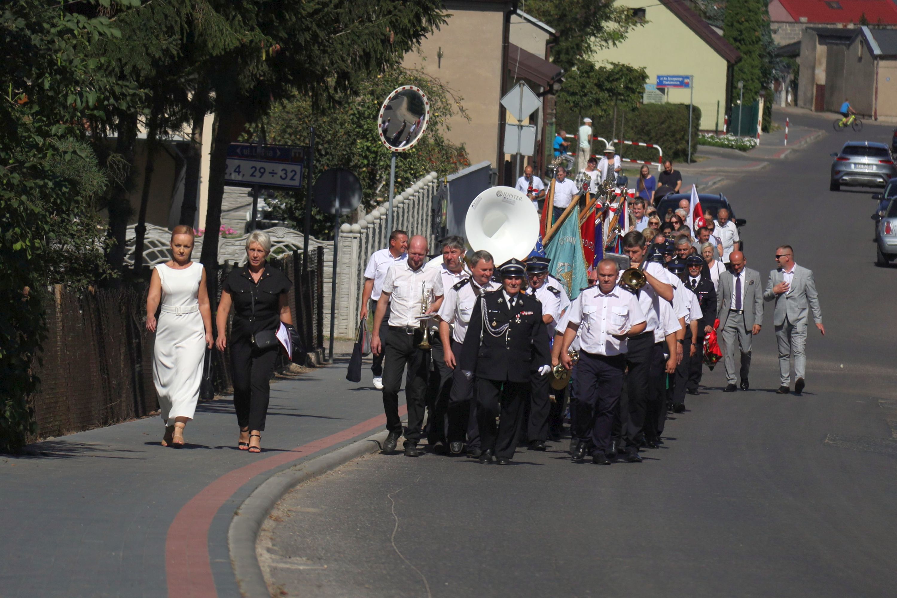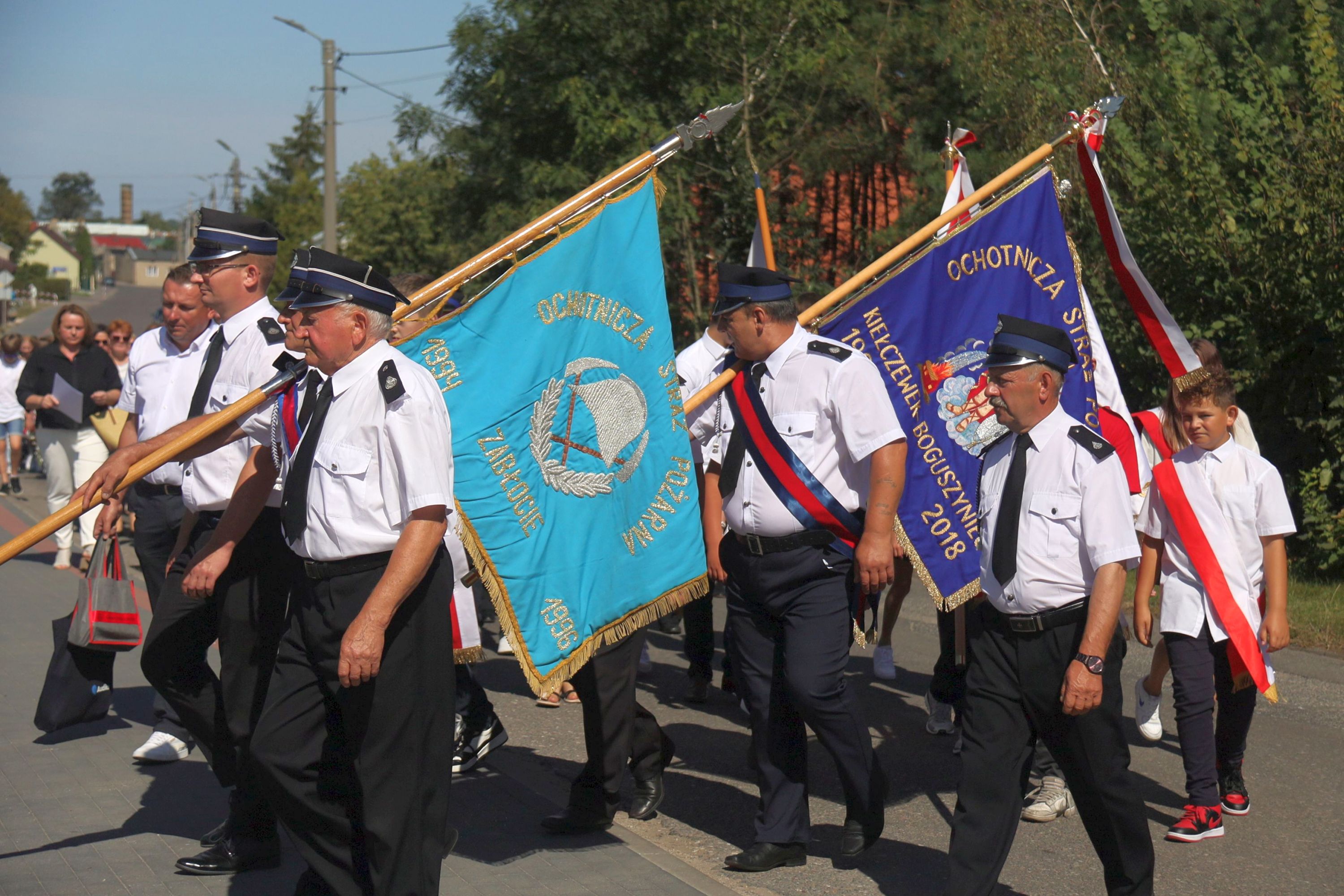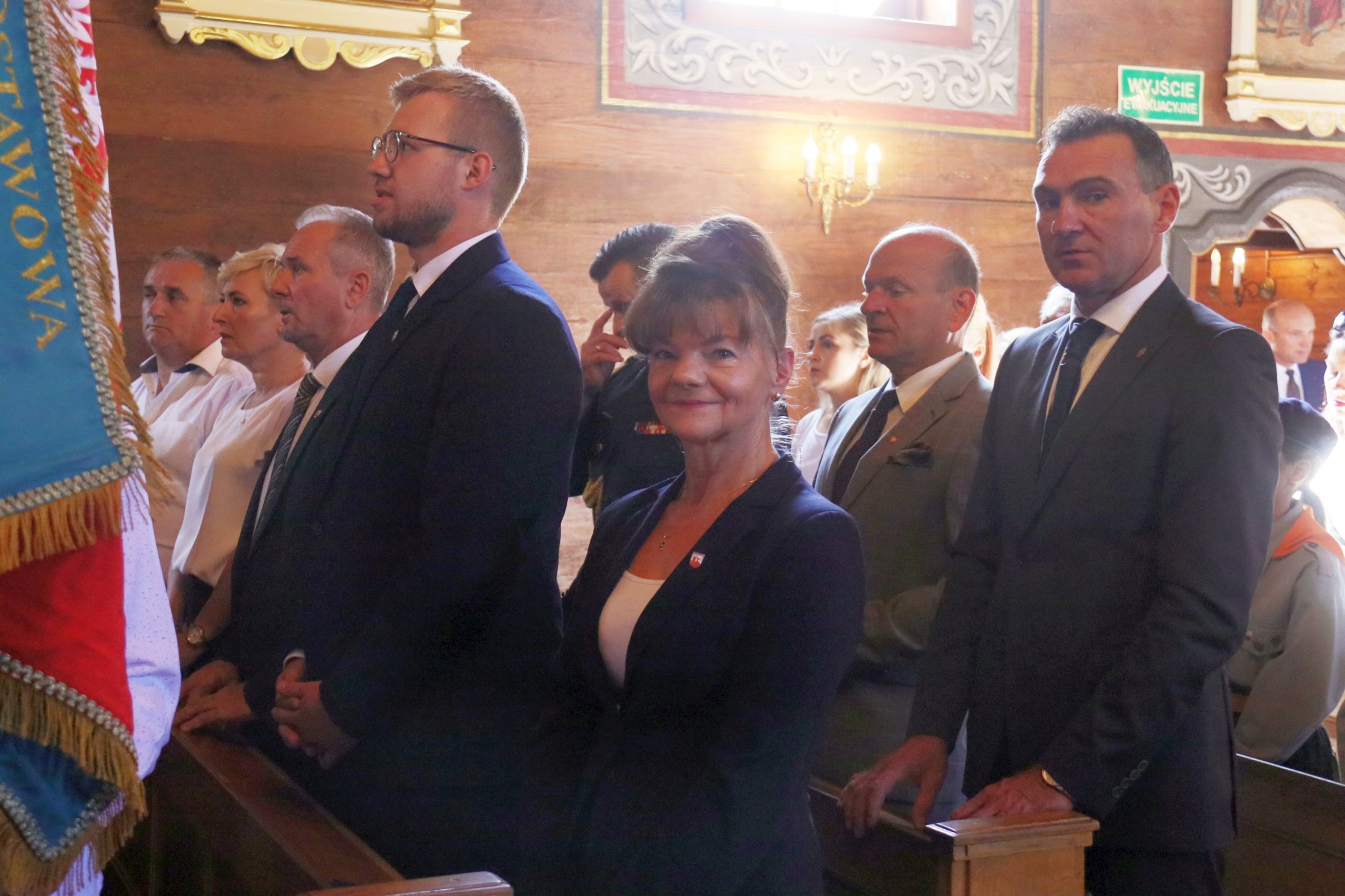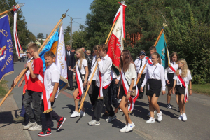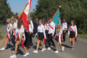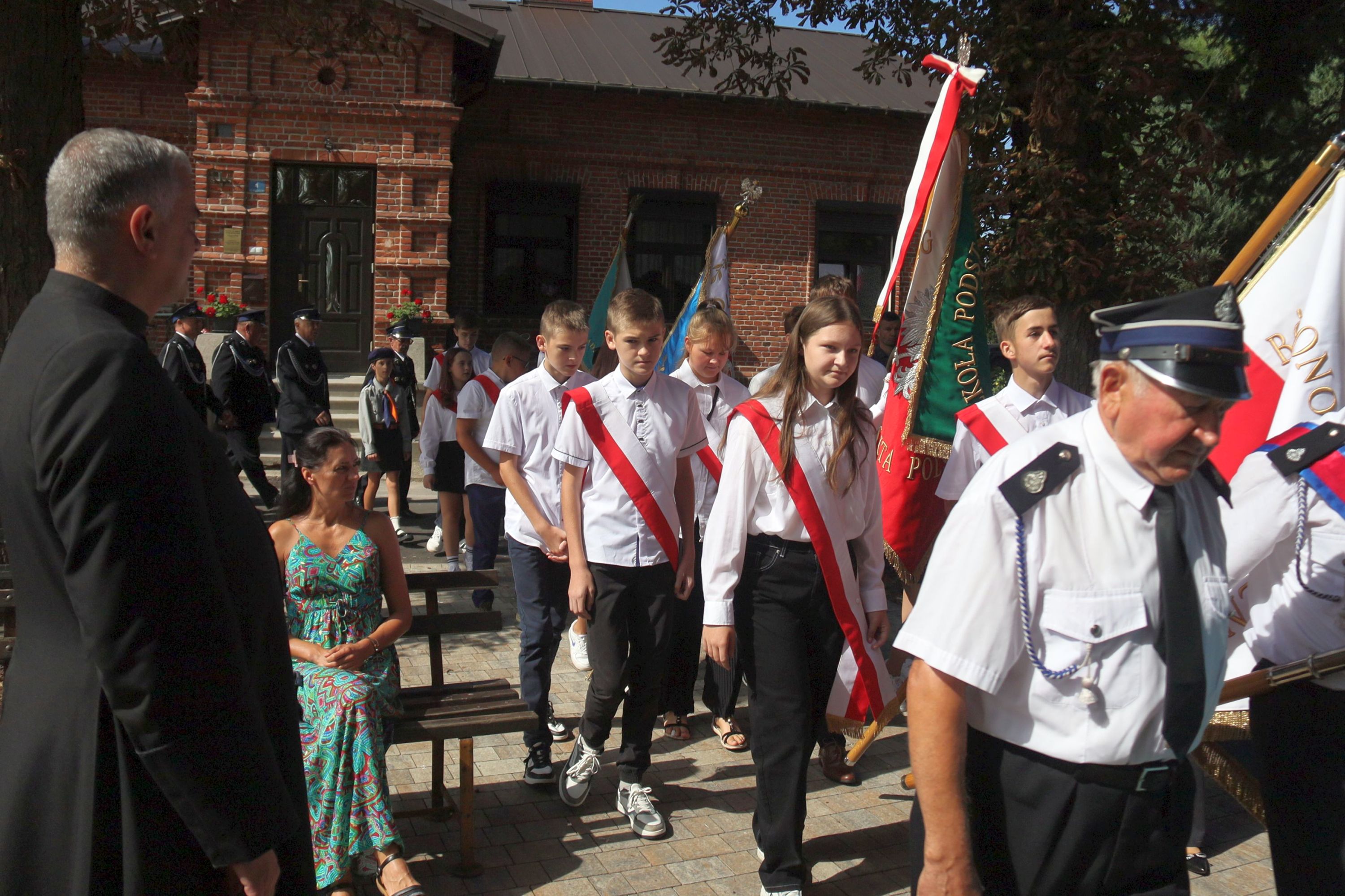 Po zbiórce przed Domem Strażaka samorządowcy, poczty sztandarowe, delegacje jednostek OSP, placówek oświatowych, kół gospodyń wiejskich, zaproszeni goście oraz mieszkańcy gminy na czele z orkiestrą dętą udali się do kościoła parafialnego aby uczestniczyć we Mszy świętej w intencji poległych w obronie naszej ojczyzny. Mszę Świętą odprawił ksiądz proboszcz Tomasz Król w koncelebrze z księdzem prałatem Michałem Pietrzakiem oraz księdzem wikariuszem Bartłomiejem Pyką z parafii Św. Bartłomieja Apostoła w Koninie.