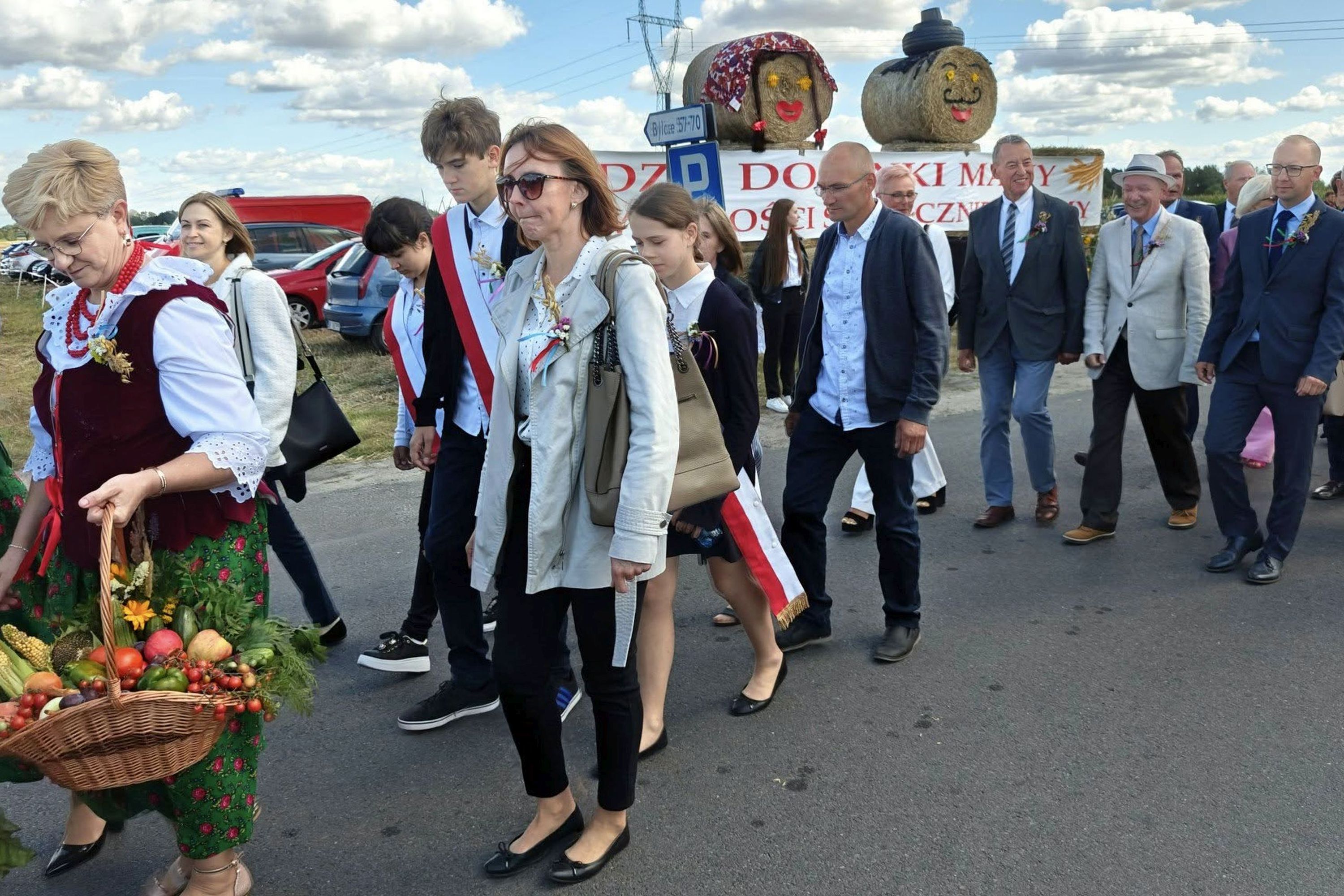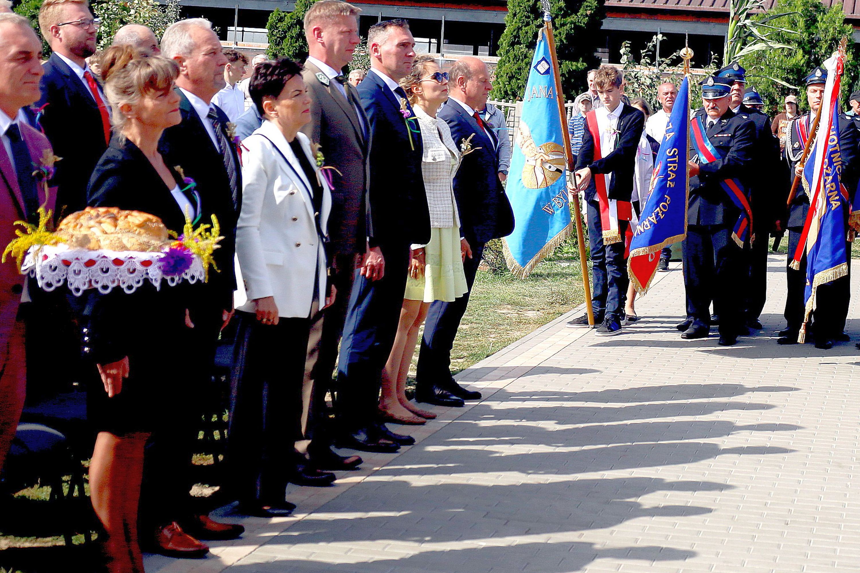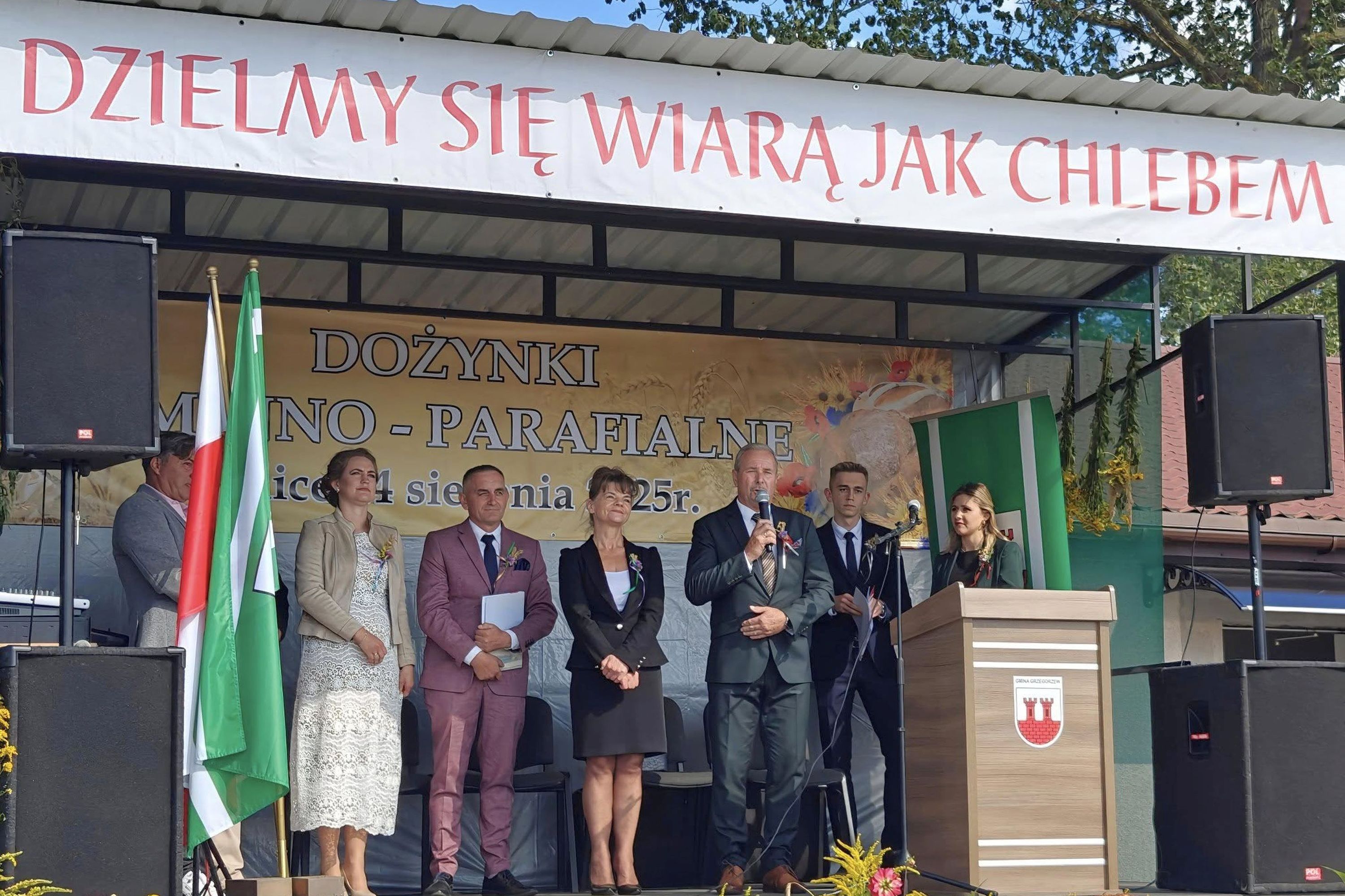 Jednym z centralnych momentów uroczystości było przekazanie chleba dożynkowego przez starostów – Katarzynę Janiak i Marcina Stegentę – na ręce Wójt Gminy oraz Przewodniczącego Rady Gminy Tadeusza Sosnowskiego. W krótkim przemówieniu Wójt Dominiak wyraziła wdzięczność za otrzymany bochen i zadeklarowała troskę o dobro wspólnoty lokalnej.