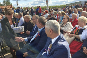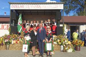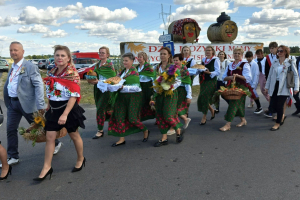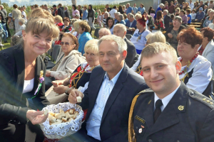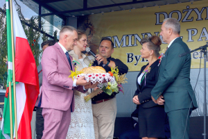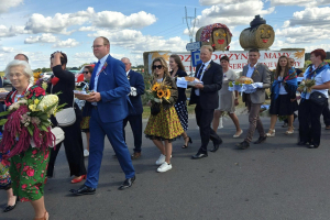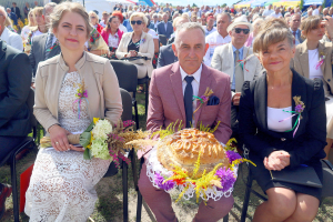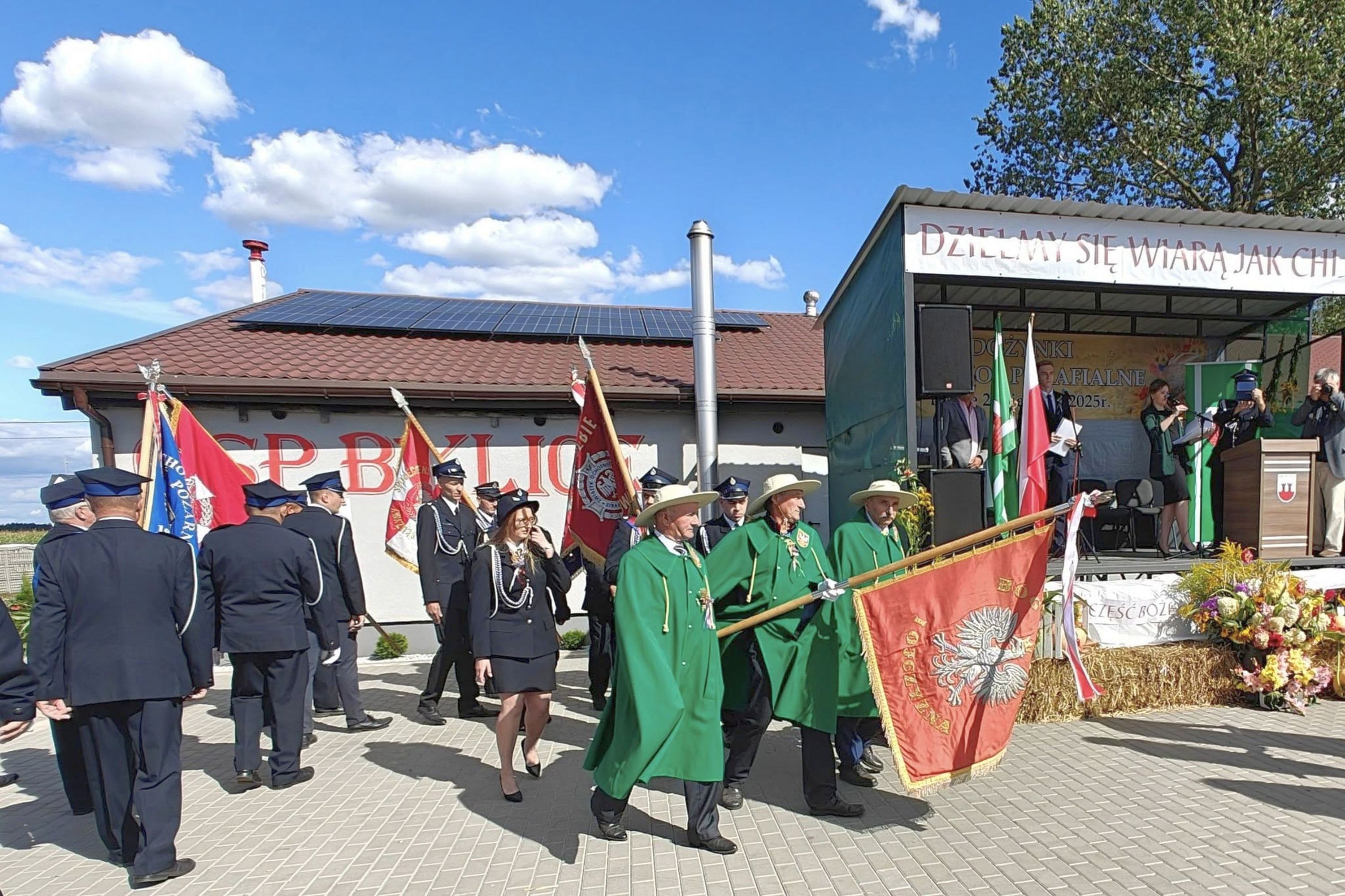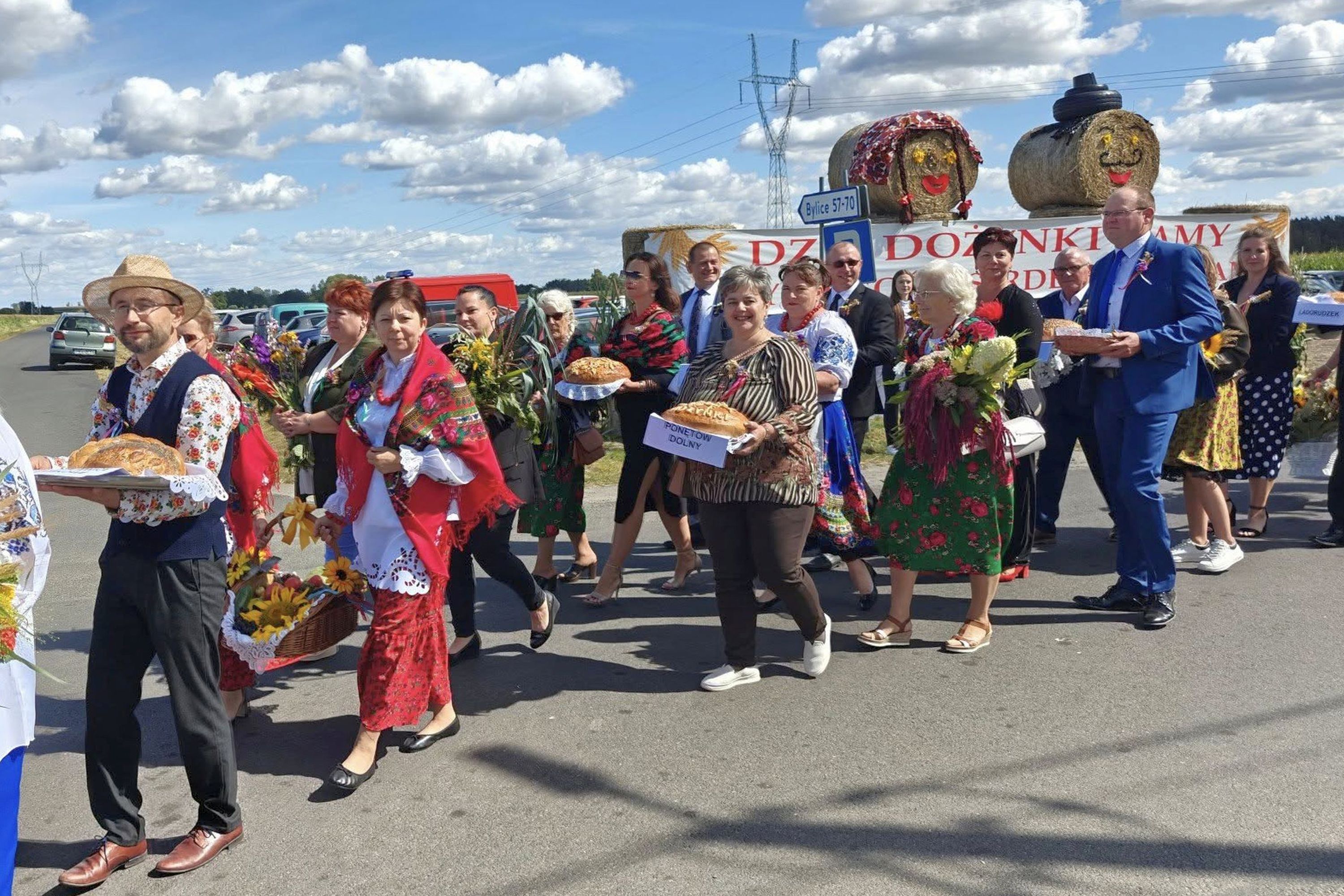 Jednym z centralnych momentów uroczystości było przekazanie chleba dożynkowego przez starostów – Katarzynę Janiak i Marcina Stegentę – na ręce Wójt Gminy oraz Przewodniczącego Rady Gminy Tadeusza Sosnowskiego. W krótkim przemówieniu Wójt Dominiak wyraziła wdzięczność za otrzymany bochen i zadeklarowała troskę o dobro wspólnoty lokalnej.