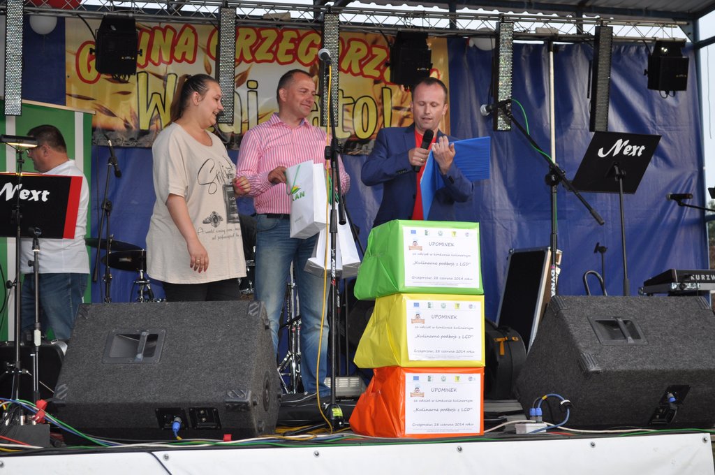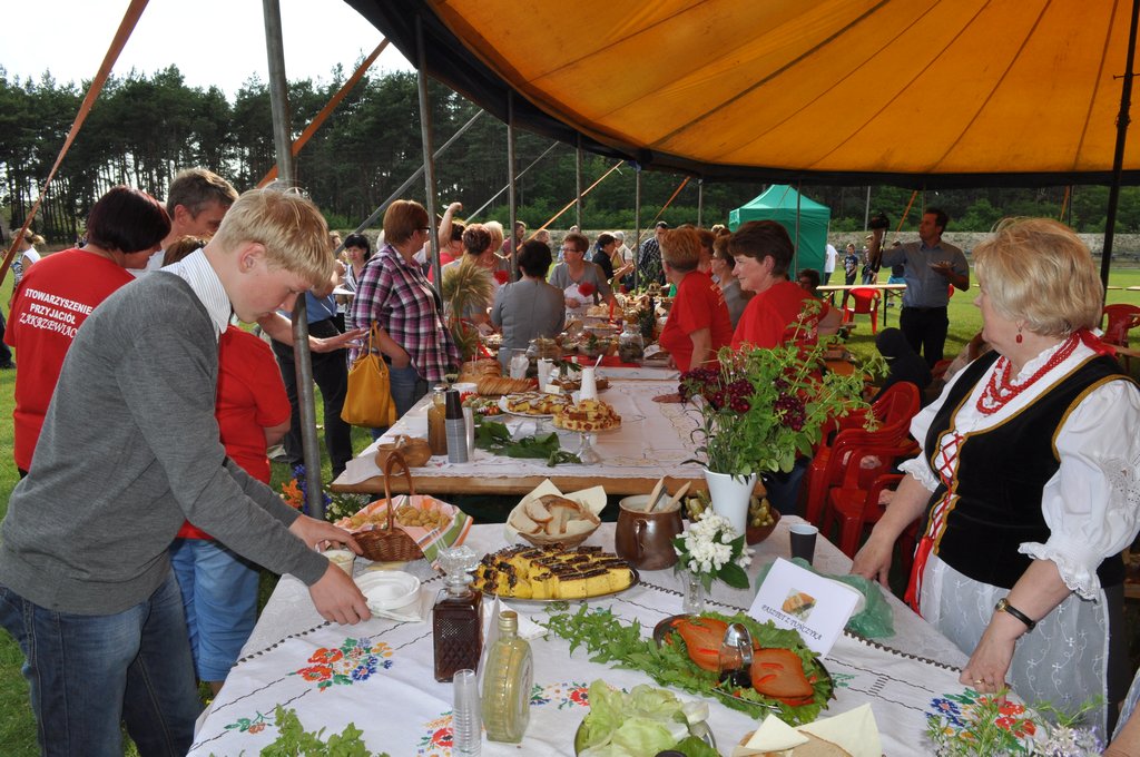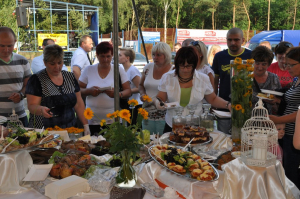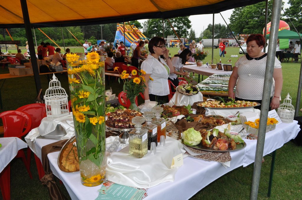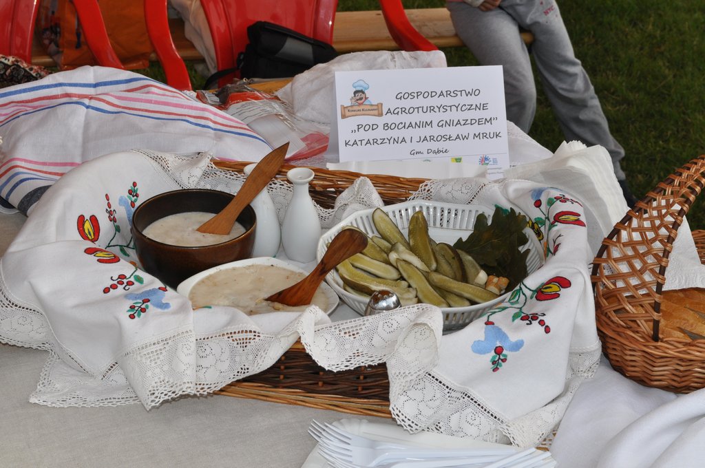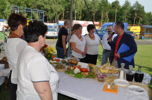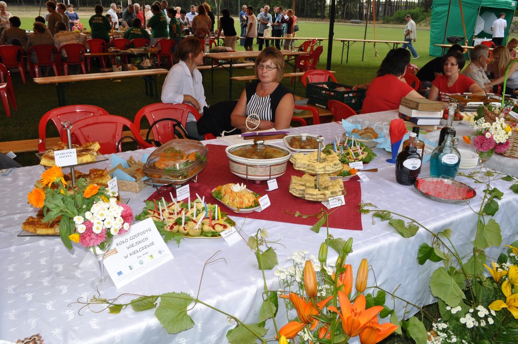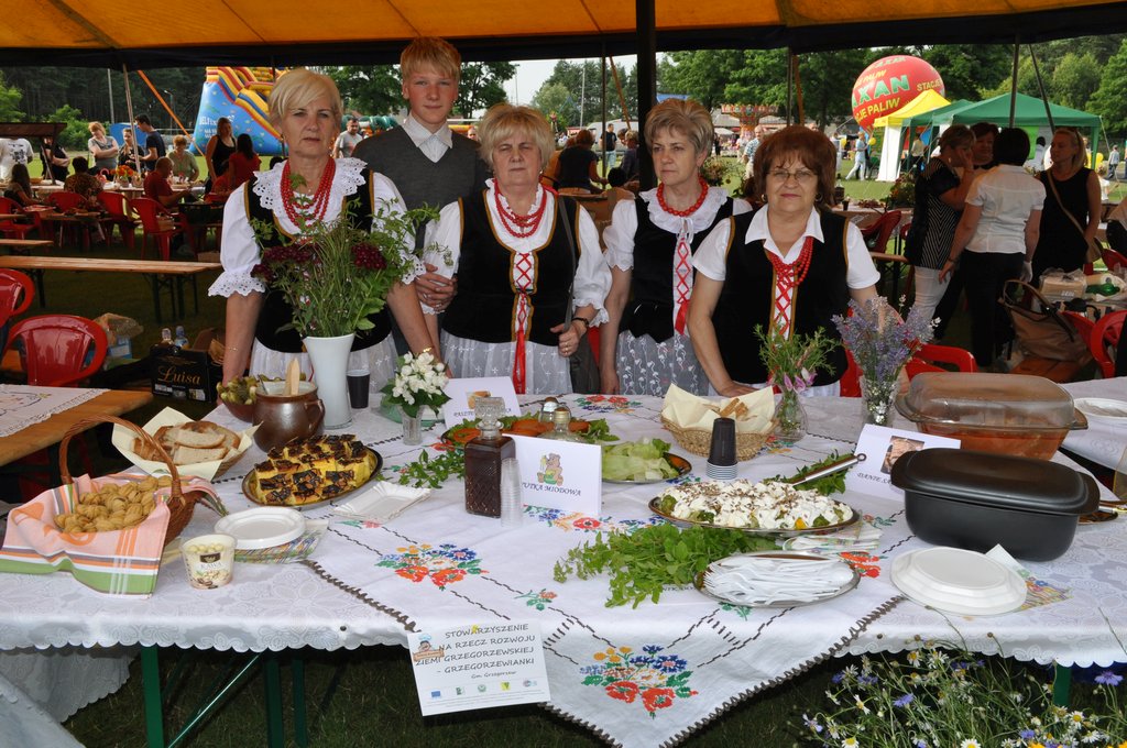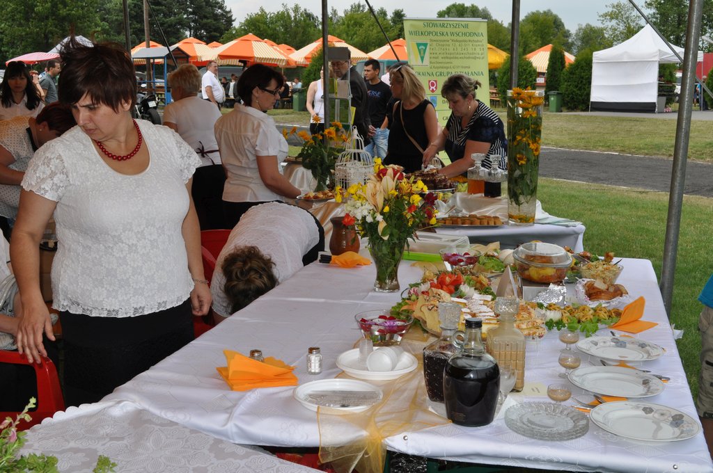 Dużym zainteresowaniem cieszyły się stoiska kulinarne wystawione w konkursie "Kulinarne podboje LGD". Inicjatorem i organizatorem konkursu było Stowarzyszenie "Wielkopolska Wschodnia". Konkurs został przeprowadzony w ramach realizowanego projektu współpracy o akronimie P.L.I.K. "Produkt Lokalny Inspiracją Kulinarną", realizowanego w partnerstwie z Lokalną Grupą Działania Stowarzyszenie "Solidarni w Partnerstwie". Projekt współpracy jest współfinansowany ze środków Europejskiego Funduszu Rolnego na rzecz Rozwoju Obszarów Wiejskich na lata 2007-2013, działalnia 4.21 "Wdrażanie projektów współpracy". Pod kulinarnym namiotem gościliśmy 14 wystawców - przedstawicieli gmin członkowskich Stowarzyszenia "Wielkopolska Wschodnia", a każde z nich miało do zaoferowania dania mięsne, ciasta i nalewki. Z naszej Gminy udział w konkursie wzięło Koło Gospodyń Wiejskich z Kiełczewka, które zajęło III miejsce w kategorii dania miesne - za "Królika w warzywach" oraz Stowarzyszenie Rozwoju Ziemii Grzegorzewskiej z Zespołem Ludowym "Grzegorzewianki" - otrzymując wyróżnienie Komisji również w kategorii dania miesnę za "Saganowe Danie".