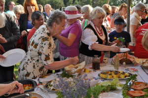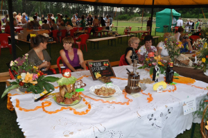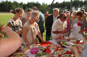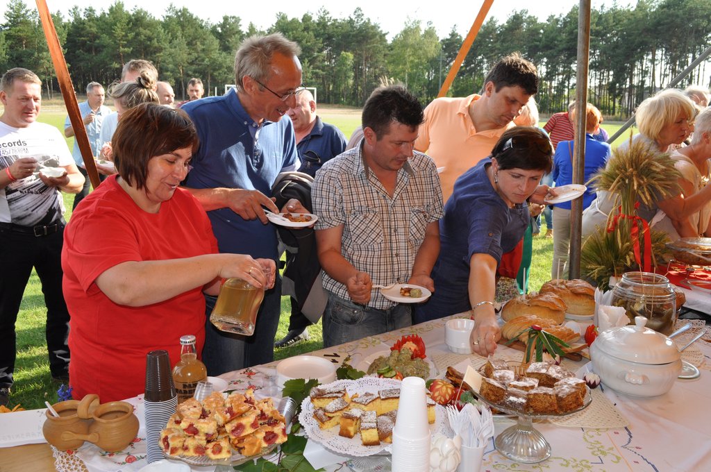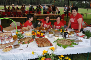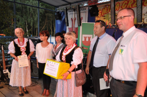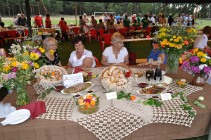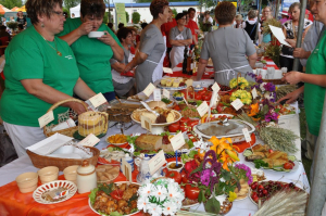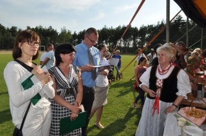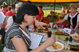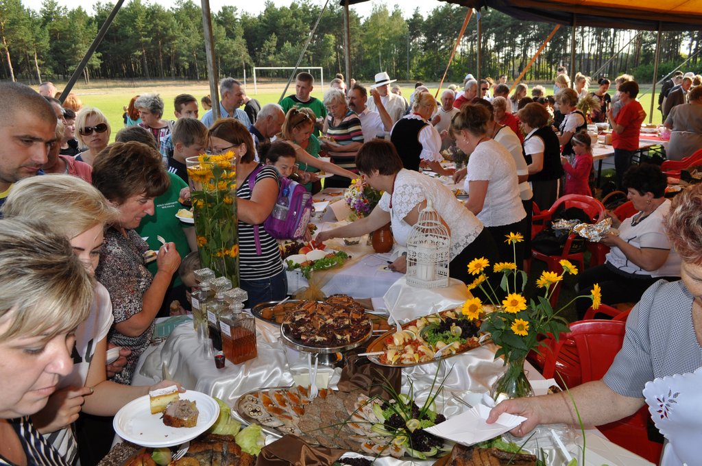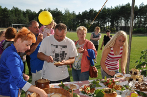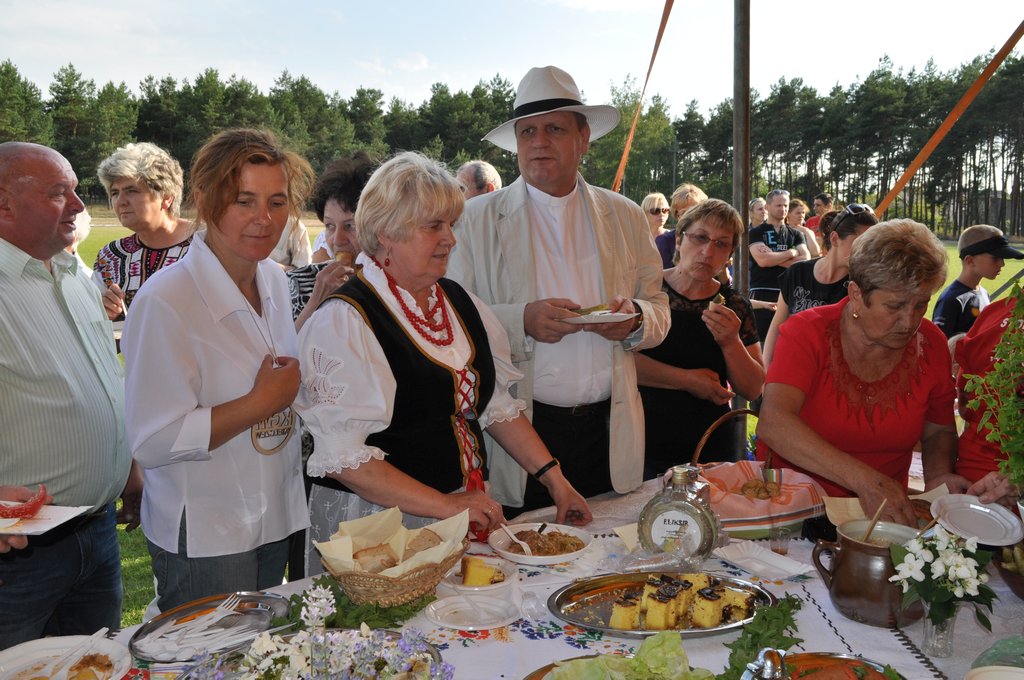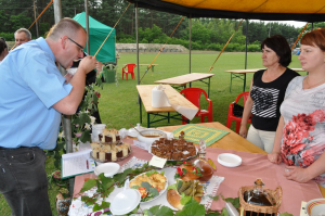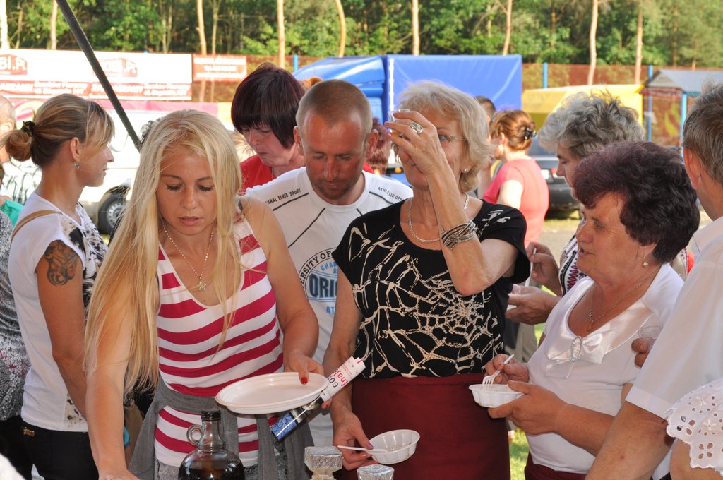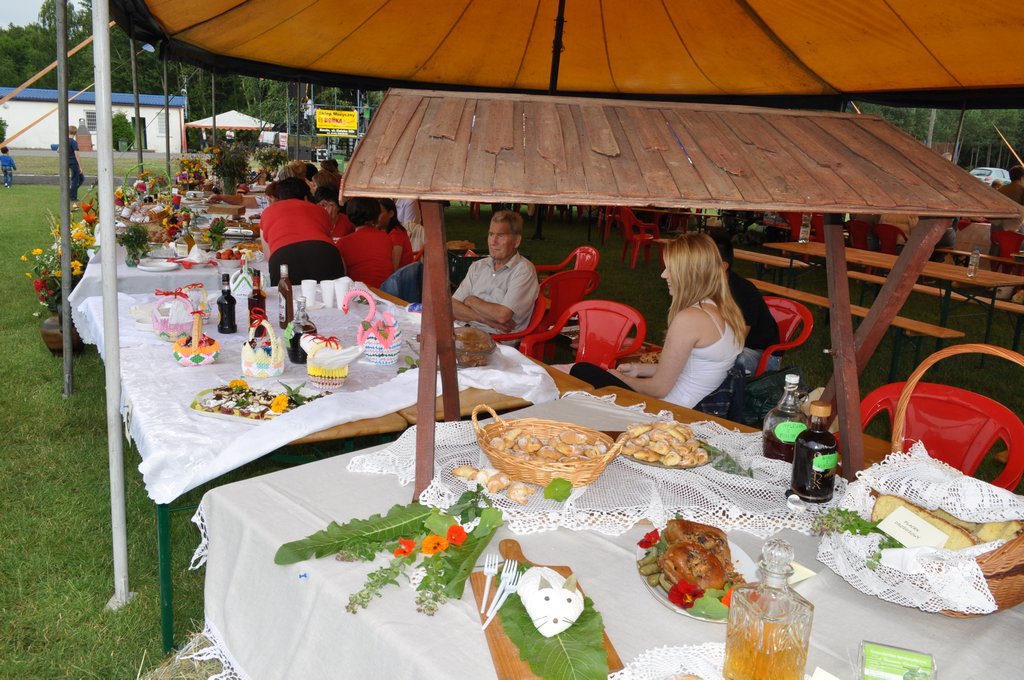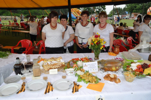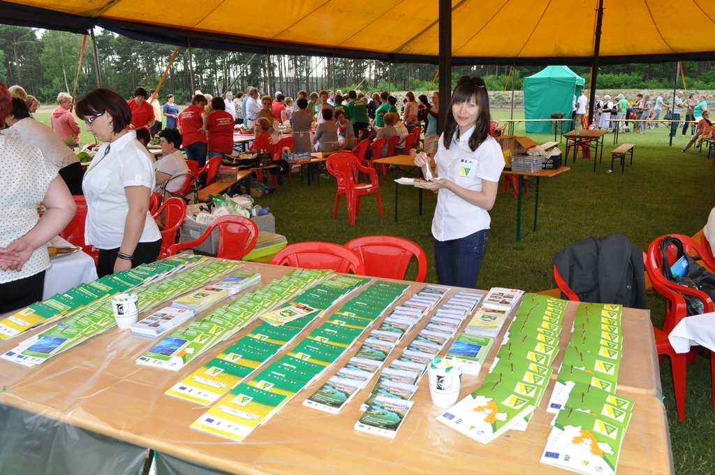 Dużym zainteresowaniem cieszyły się stoiska kulinarne wystawione w konkursie "Kulinarne podboje LGD". Inicjatorem i organizatorem konkursu było Stowarzyszenie "Wielkopolska Wschodnia". Konkurs został przeprowadzony w ramach realizowanego projektu współpracy o akronimie P.L.I.K. "Produkt Lokalny Inspiracją Kulinarną", realizowanego w partnerstwie z Lokalną Grupą Działania Stowarzyszenie "Solidarni w Partnerstwie". Projekt współpracy jest współfinansowany ze środków Europejskiego Funduszu Rolnego na rzecz Rozwoju Obszarów Wiejskich na lata 2007-2013, działalnia 4.21 "Wdrażanie projektów współpracy". Pod kulinarnym namiotem gościliśmy 14 wystawców - przedstawicieli gmin członkowskich Stowarzyszenia "Wielkopolska Wschodnia", a każde z nich miało do zaoferowania dania mięsne, ciasta i nalewki. Z naszej Gminy udział w konkursie wzięło Koło Gospodyń Wiejskich z Kiełczewka, które zajęło III miejsce w kategorii dania miesne - za "Królika w warzywach" oraz Stowarzyszenie Rozwoju Ziemii Grzegorzewskiej z Zespołem Ludowym "Grzegorzewianki" - otrzymując wyróżnienie Komisji również w kategorii dania miesnę za "Saganowe Danie".