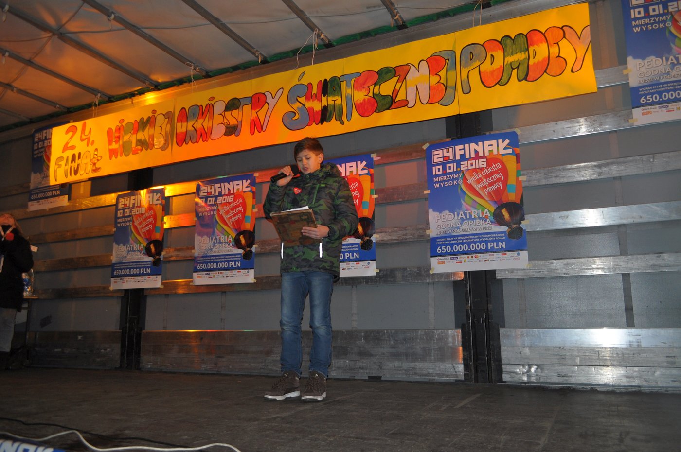 Już od samego rana 10 stycznia 2016 r. w naszej gminie kwestowało kilkudziesięciu wolontariuszy. Zbierali pieniądze do popołudnia, kiedy to na placu targowym rozpoczęła się impreza. Wszyscy wspólnie bawili się przy występach młodych artystów. Nie zabrakło szeregu licytacji, grochówki, ciasta i kiełbasek. A na koniec tradycyjne „Światełko do nieba”. Całe przedsięwzięcie nie byłoby możliwe bez wsparcia sponsorów, wielkich serc naszych mieszkańców i wolontariuszy. W tym roku Wielka Orkiestra Świątecznej Pomocy zagrała na rzecz oddziałów pediatrycznych i godnej opieki dla seniorów.