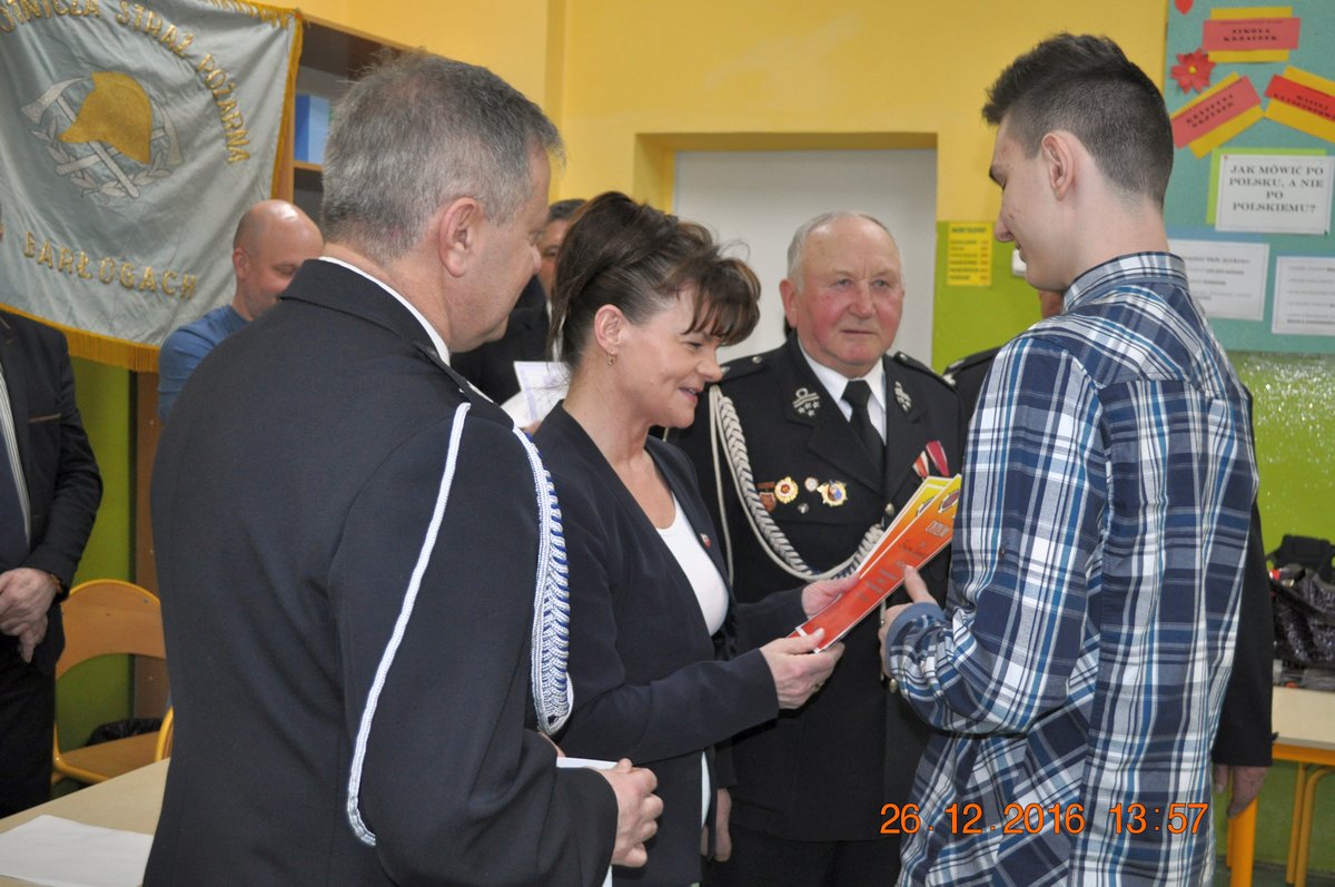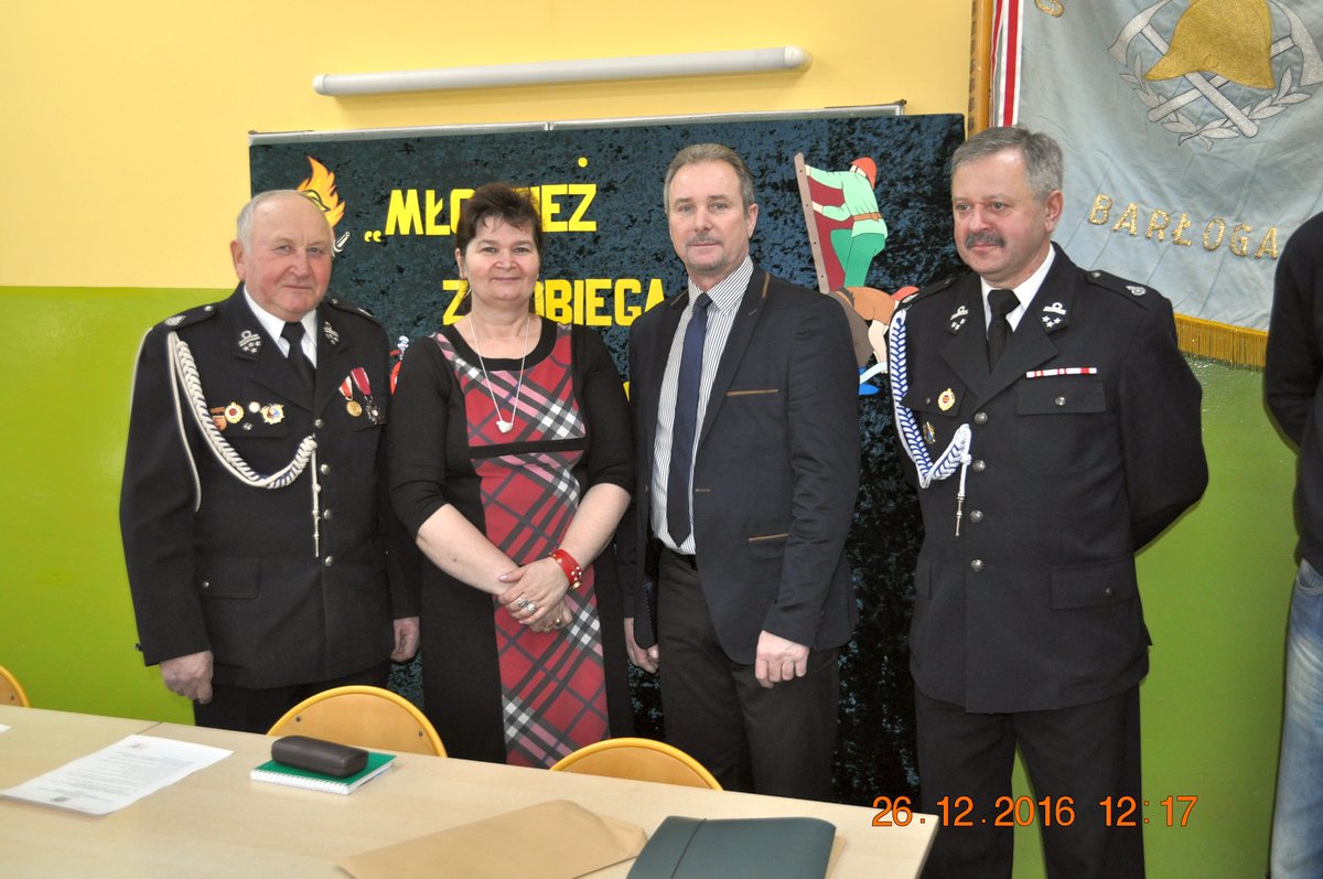 26 lutego 2016 r. w Szkole Podstawowej w Barłogach odbyły się eliminacje Gminnego Turnieju Wiedzy Pożarniczej "Młodzież Zapobiega Pożarom". Do turnieju przystąpili najlepsi z 4 szkół podstawowych oraz z miejscowego Gimnazjum. Szkoły Podstawowe reprezentowało po trzech uczniów, natomiast w kategorii gimnazjalnej rywalizowało 6 uczestników. Młodzi strażacy odpowiadali na pytania testowe z zakresu ochrony przeciwpożarowej i historii Związku Ochotniczych Straży Pożarnych. Zawodnicy mieli za zadanie w ciągu 30 minut rozwiązać test zawierający 30 pytań. Każda poprawna odpowiedź przynosiła uczestnikowi jeden punkt. W kategorii szkół podstawowych dwie dziewczynki uzyskały taką samą ilość punktów i w związku z tym przeprowadzono dogrywkę. Uczestnicy konkursu wykazali dużą wiedzę na temat przepisów i wyposażenia technicznego straży pożarnej.