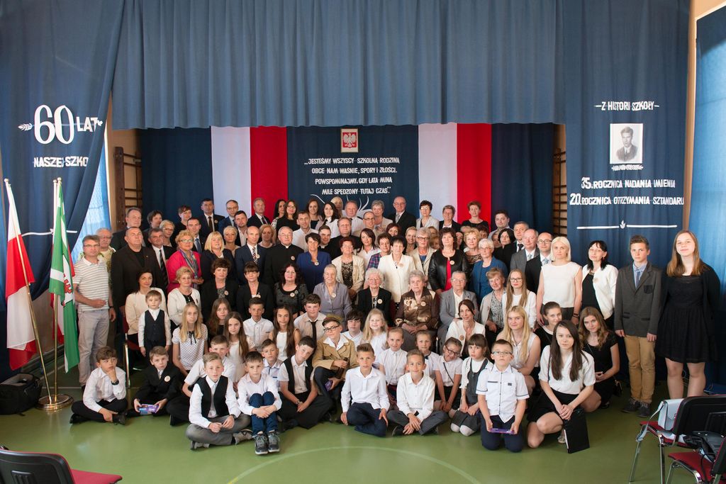 Uroczystości obchodów sześćdziesięciolecia Szkoły Podstawowej rozpoczęto wspólnym odśpiewaniem hymnu szkoły. Następnie, w pięknie udekorowanej sali gimnastycznej, pani dyrektor Beata Drozd uroczyście przywitała przybyłych na jubileusz gości, absolwentów szkoły, byłych jej pracowników, jak również rodziców: