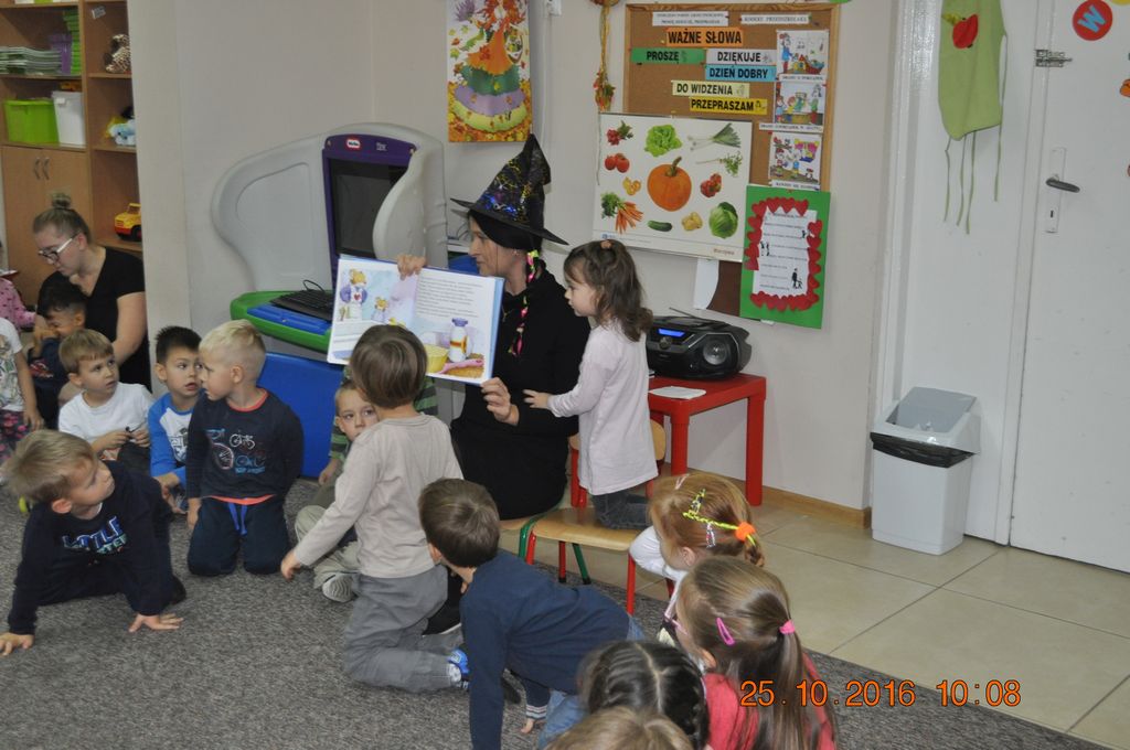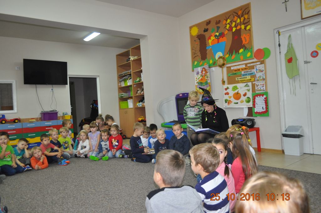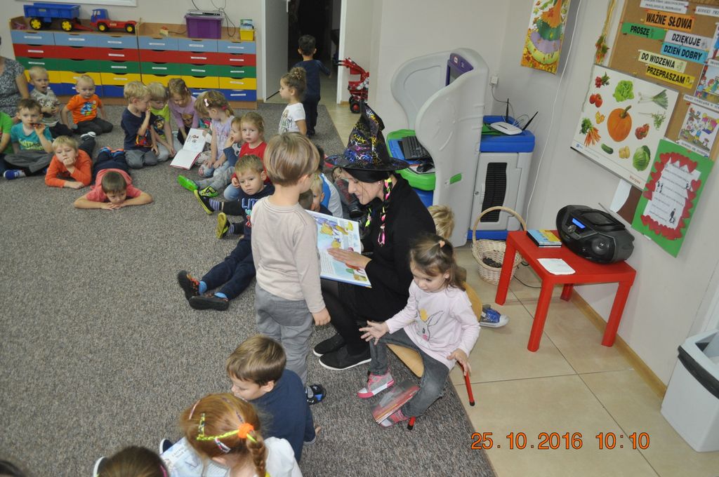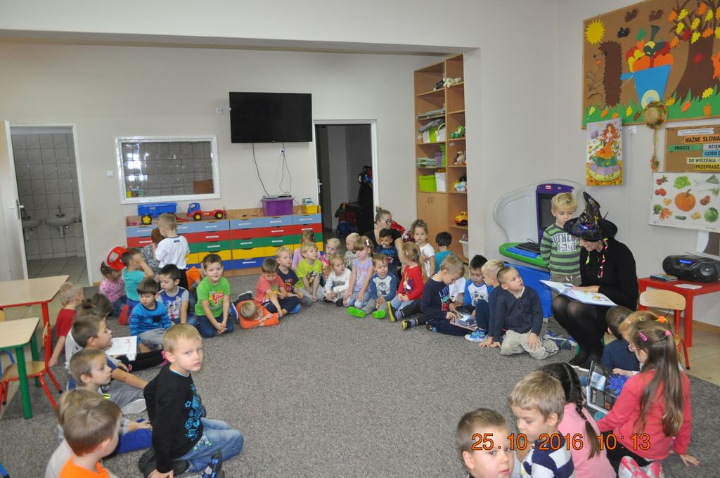 25 października Biblioteka odwiedziła Przedszkolaków w Gminnym Przedszkolu w Grzegorzewie i zaprosiła do wysłuchania najpopularniejszych baśni i bajek polskich. Największa niespodzianka przewidziana była jednak na koniec spotkania. Przyszedł czas na gry i zabawy, jakie biblioteka zorganizowała dla najmłodszych. Były to zgadywanki i malowanie twarzy.