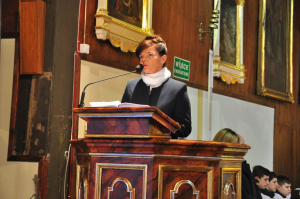 Po zakończeniu liturgii Tomasz Nuszkiewicz, dyrektor Muzeum Technik Ceramicznych w Kole przedstawił rys historyczny powstania Grzegorzewa. Opierając się na treści dokumentu z 1236 r., będącego pierwszą wzmianką historyczną o Grzegorzewie stwierdził, że musiał być on już wtedy większą i znaczniejszą majętnością książęcą, siedzibą jakiegoś bliżej nieokreślonego obszaru administracyjnego nazywanego - „districtus”. Znajdując się od 1236 r. we władaniu arcybiskupstwa, Grzegorzew pozostał nadal ośrodkiem okręgu gospodarczo – administracyjnego, który zaczął się formować w jego bliższej i dalszej okolicy, by sto lat później być już nazywany miastem - „civitas”. Wiadomo także, że w Grzegorzewie znajdował się dwór będący rezydencją właściciela miasta, a także siedzibą klucza majątkowego. Często przebywali w nim arcybiskupi gnieźnieńscy i członkowie kapituły, czego dowodem są wystawiane przez nich liczne dokumenty, w których jako miejsce wystawienia figuruje Grzegorzew. Prelegent podkreślił, że pierwszy zapis w gruncie rzeczy nie podaje daty powstania miejscowości w rzeczywistości, lecz jest zaledwie początkiem występowania jej w źródłach historycznych. O ile zatem w oparciu o dokument z 1236 r. można z pewnością szukać początków Grzegorzewa w XII stuleciu, to na podstawie jego położenia na starych szlakach handlowych, zachowanych do dnia dzisiejszego wczesnośredniowiecznych układów urbanistycznych oraz obronnego znaczenia jako punktu na pograniczu kasztelanii łęczyckiej i lądzkiej można przypuszczać, że powstał on u zarania Państwa Polskiego.