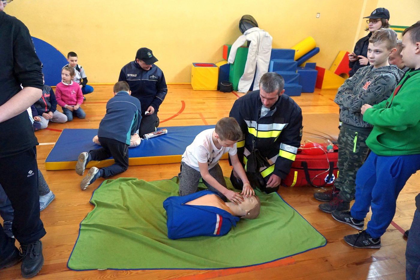 Druhowie z Jednostki OSP w Barłogach posiadający uprawnienia ratowników w zakresie kwalifikowanej pierwszej pomocy, pod dowództwem Naczelnika Jednostki druha Kamila Misiaka, zaprezentowali profesjonalny pokaz udzielania pierwszej pomocy. Uczniowie z dużym zainteresowaniem obserwowali pokaz w wykonaniu strażaków ochotników. Serdecznie dziękujemy.