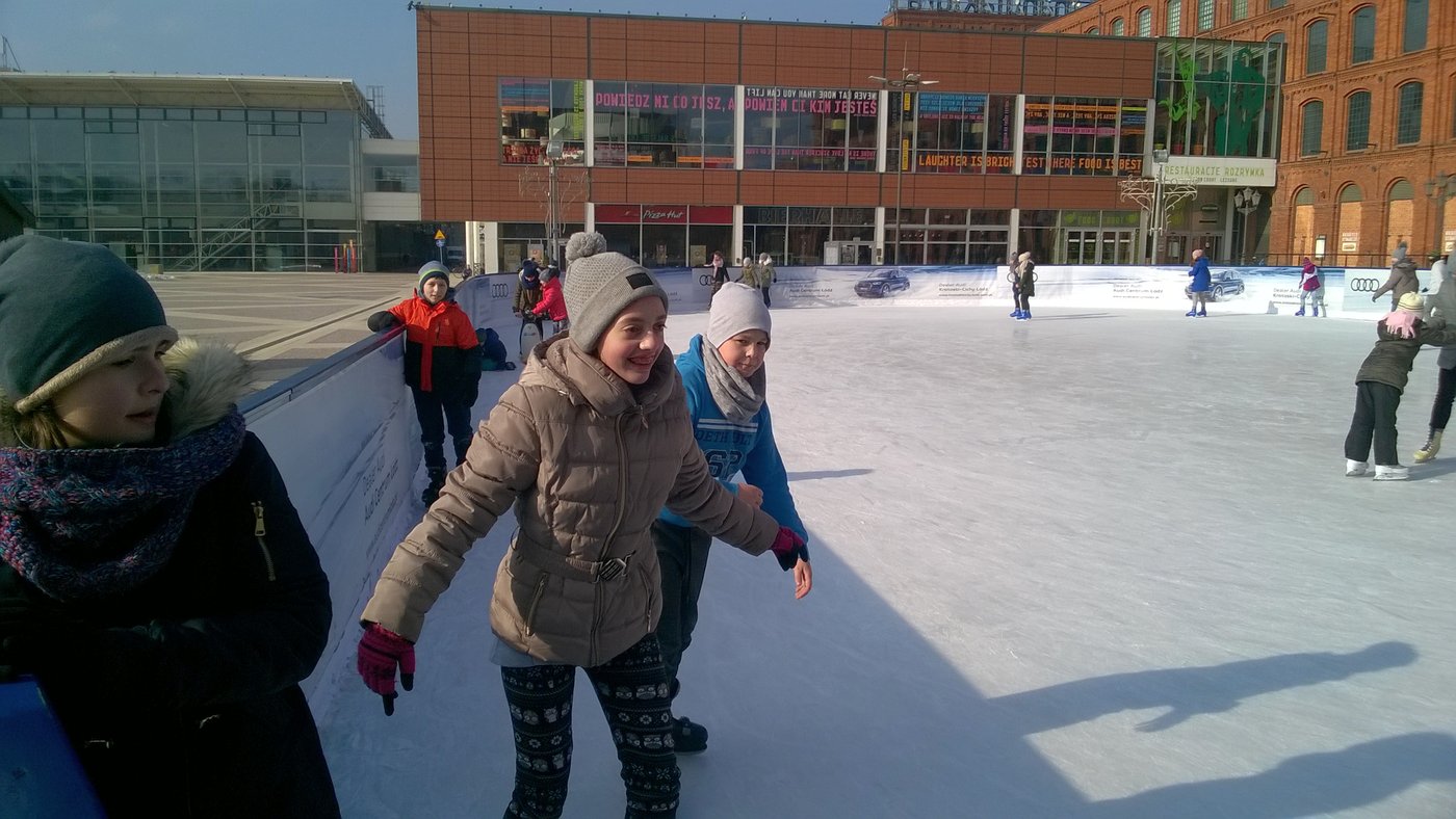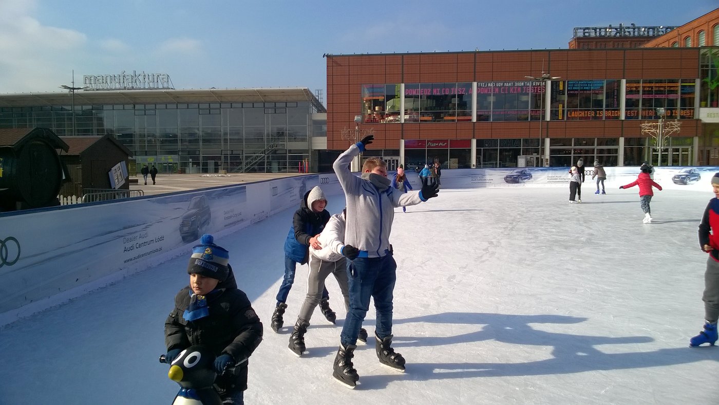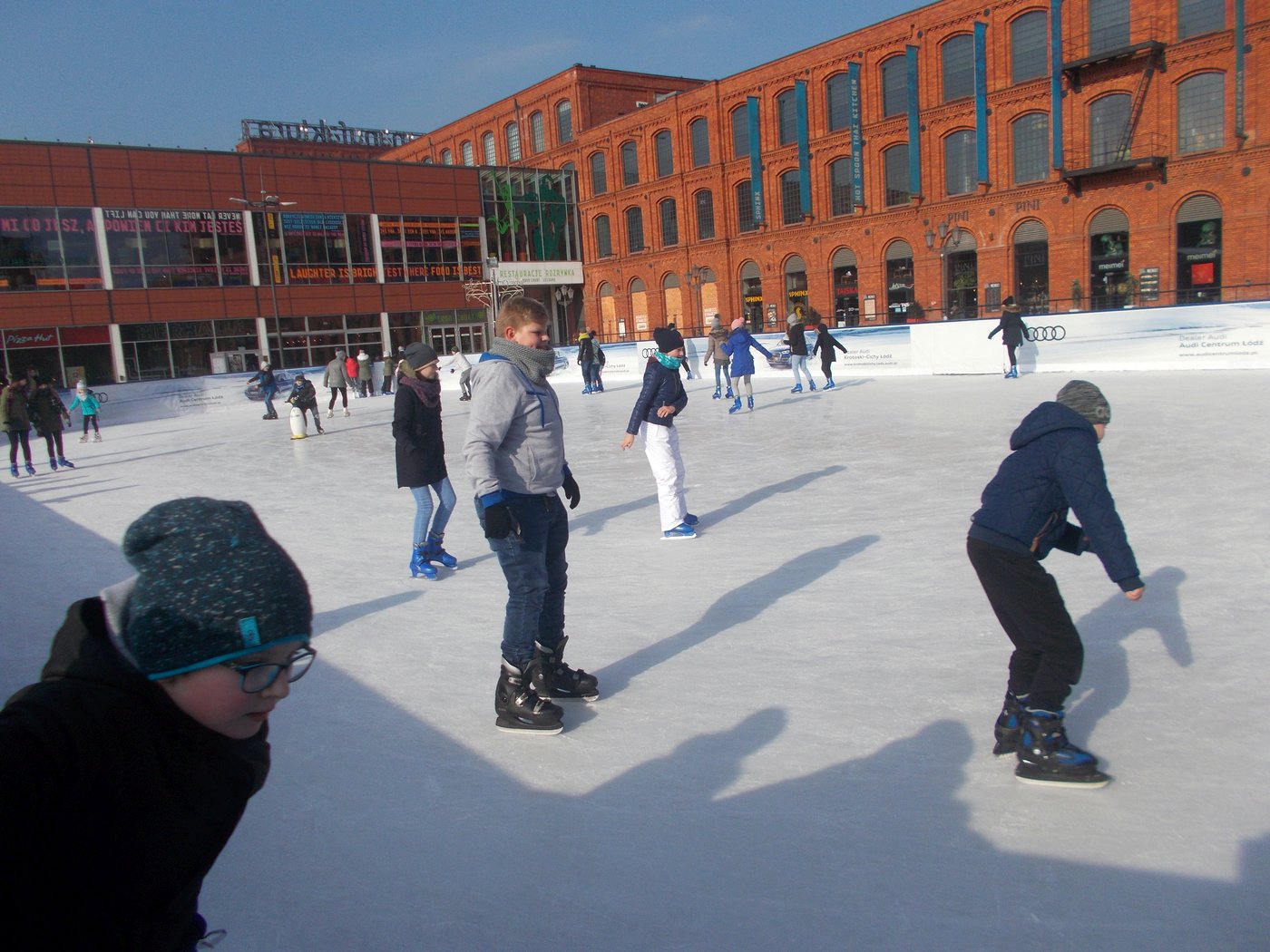 Wycieczka rozpoczęła się od pobytu na lodowisku ,,Manufaktura”. Mając do dyspozycji całe lodowisko mogliśmy obserwować wzloty i upadki nowicjuszy i zaawansowanych łyżwiarzy. Niektórzy wjeżdżali na taflę odważnie, a inni robili to trzymając się bandy, żeby mieć się, czego chwycić w najgorszym momencie. Mimo bolących kolan i kostek zabawa była niepowtarzalna. Zawsze towarzyszył wszystkim uśmiech. Zabawa na lodowisku zachęciła nas do aktywnego spędzania wolnego czasu.