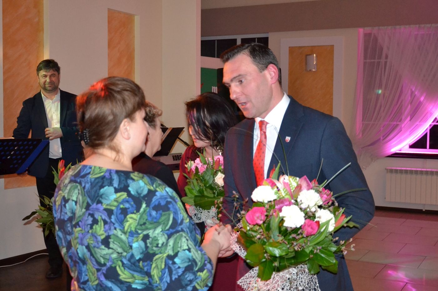 Z powodu wyjazdu służbowego w spotkaniu nie mogła uczestniczyć Wójt Gminy Grzegorzew Bożena Dominiak, ale w jej imieniu, jak również własnym i wszystkich samorządowców gminy Grzegorzew, najserdeczniejsze życzenia wszystkim paniom z okazji ich święta złożyli Przewodniczący Rady Gminy Grzegorzew Waldemar Banasiak oraz Sekretarz Gminy Aneta Niestrawska.