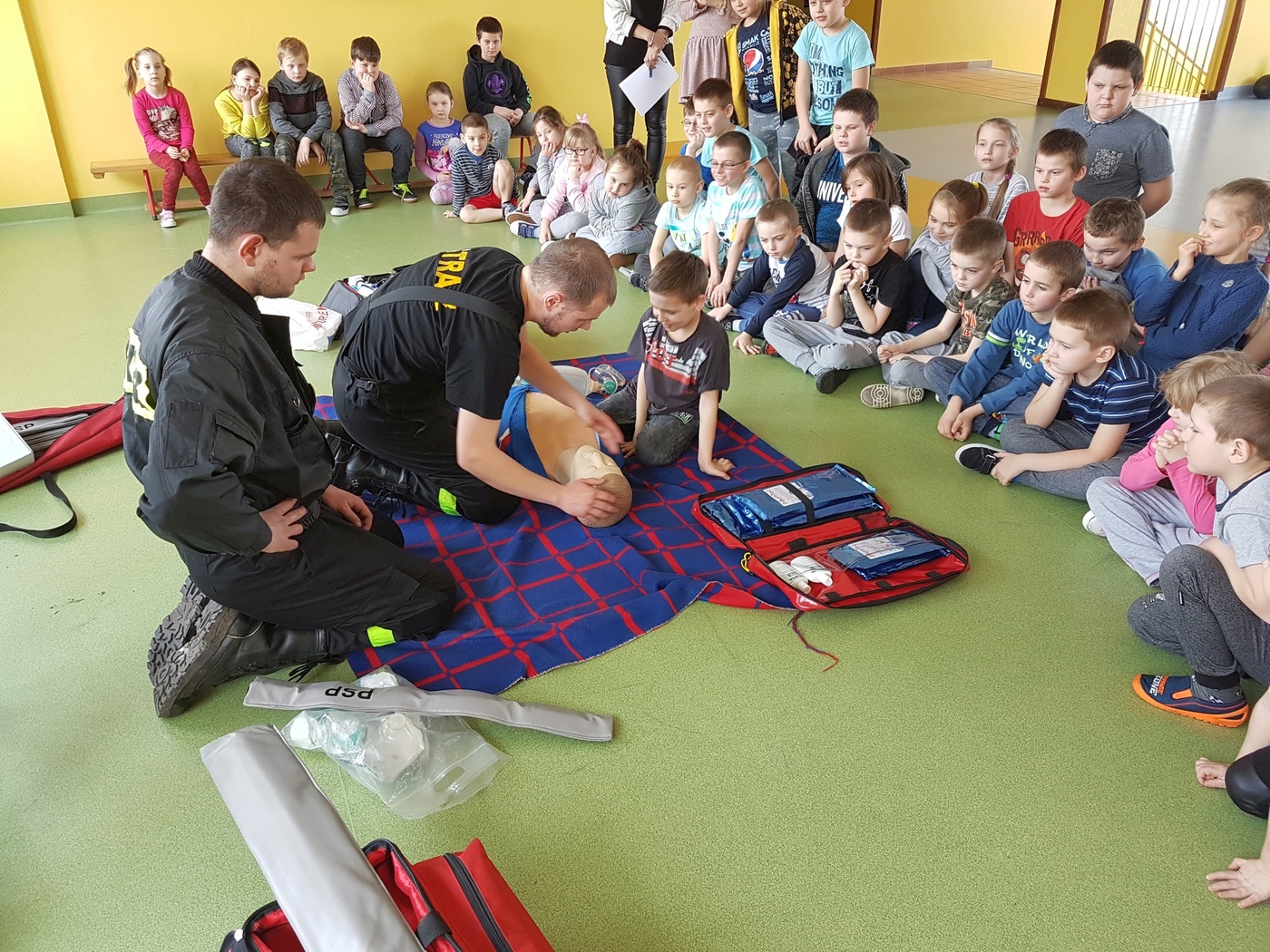 Praktyczne pokazy udzielenia pierwszej pomocy cieszyły się ogromnym zainteresowaniem wśród najmłodszych.