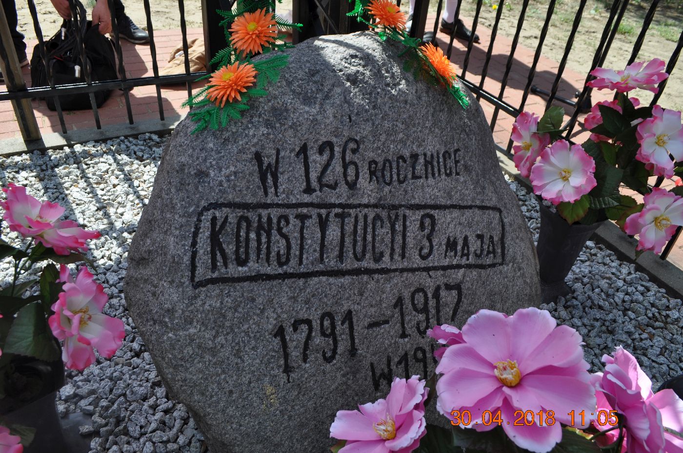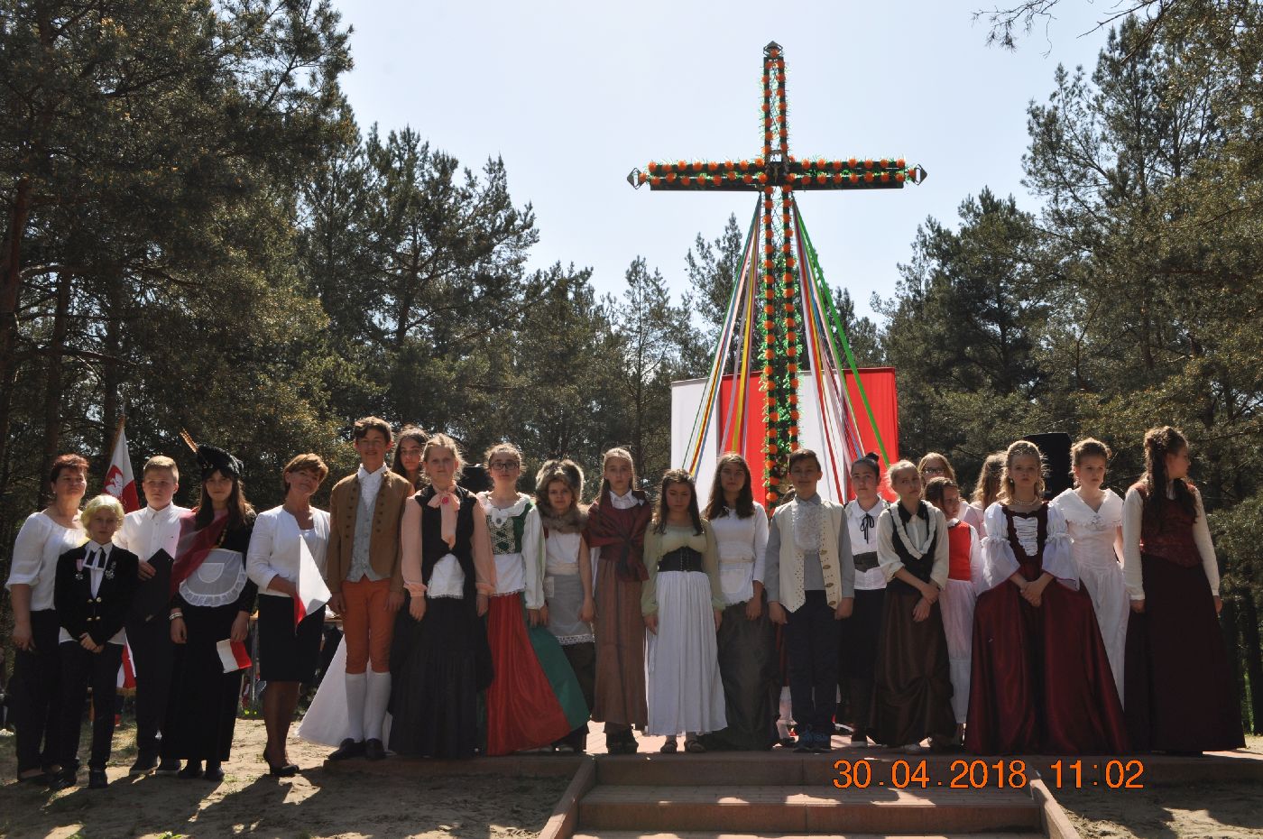 Spotykamy się w miejscu, gdzie Mieszkańcy Grzegorzewa 101 lat temu, w 1917 r., u progu odzyskania niepodległości przez nasz kraj, postawili Pamiątkowy Krzyż, ku czci Konstytucji 3 Maja 1791 r.