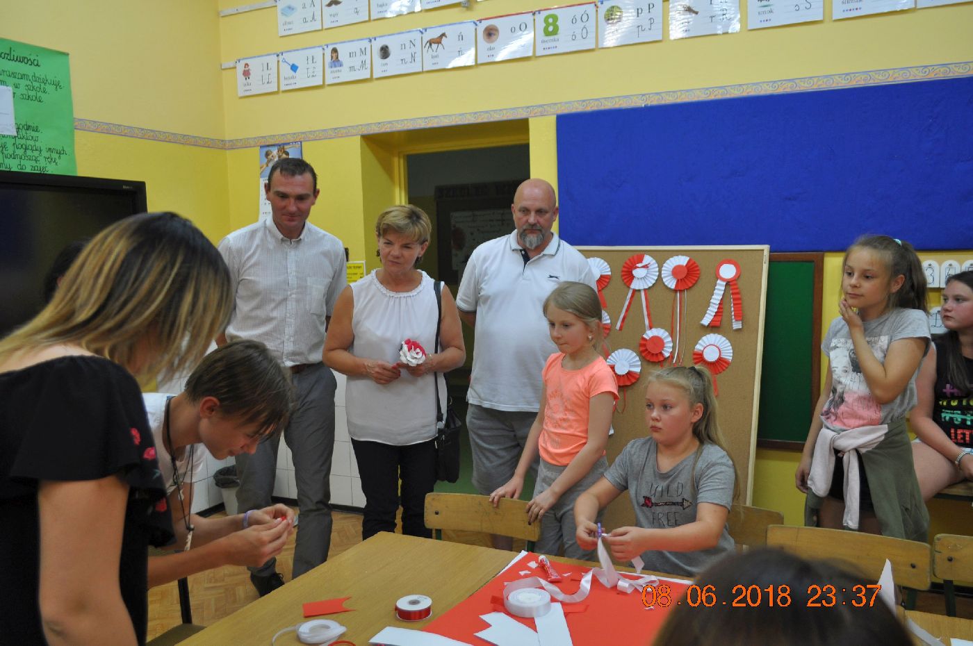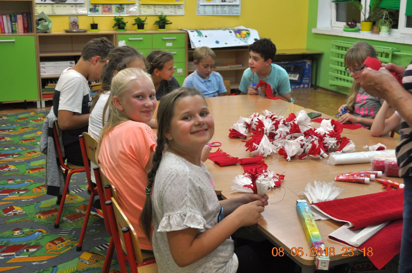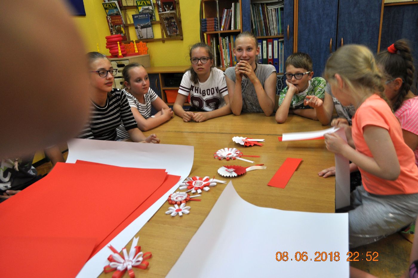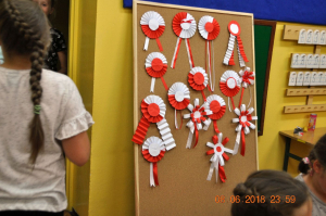 Natomiast panie Ewelina Bylewska i Edyta Gołębiowska robiły z dziećmi kotyliony patriotyczne, które zostaną wykorzystane podczas gminnych obchodów Święta Niepodległości w naszej gminie. Przygotowane podczas warsztatów biało-czerwone kotyliony będą symbolem jedności i radości ze wspólnego świętowania 100. rocznicy odzyskania niepodległości przez nasza kraj i naszą gminę.