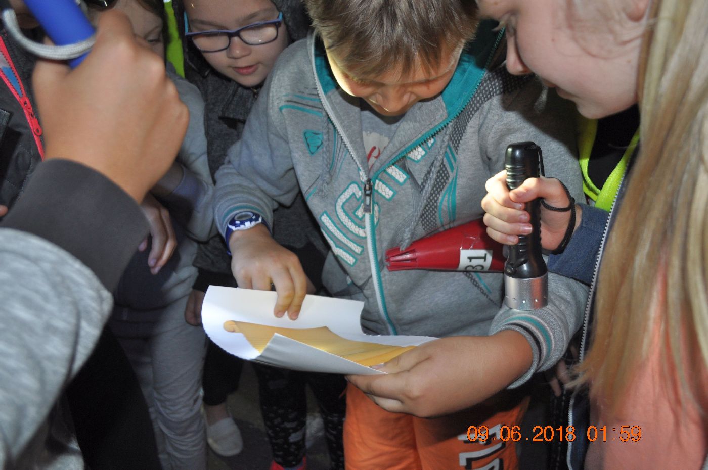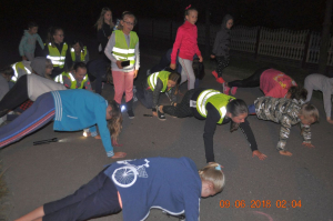 Na koniec Nocy w Bibliotece nadszedł czas na konkurencję na którą wszyscy czekali ,, Nocne podchody”. Na trasie podchodów uczestnicy wykonywali zadania odpowiadając na następujące pytania: Napisz trzy zwrotki Mazurka Dąbrowskiego, wymień wszystkie historyczne stolice Polski, wymień królów z dynastii Piastów, Jagiellonów, wolnej elekcji. Wszystko to pod okiem bardzo czujnych opiekunów. Po powrocie nadszedł czas na toaletę i przygotowanie się do snu. Noc była spokojna, jednak o spaniu to nikt nie myślał. Dzieci stwierdziły, że to przecież Noc Bibliotek a odpoczywać będą później.