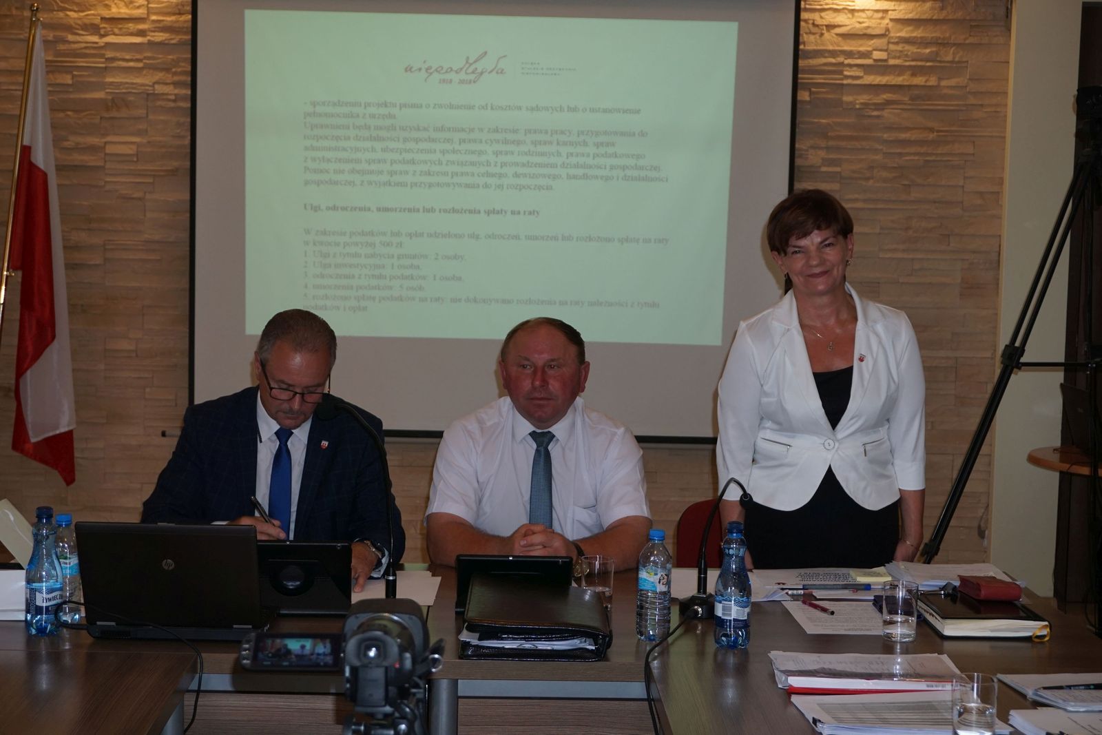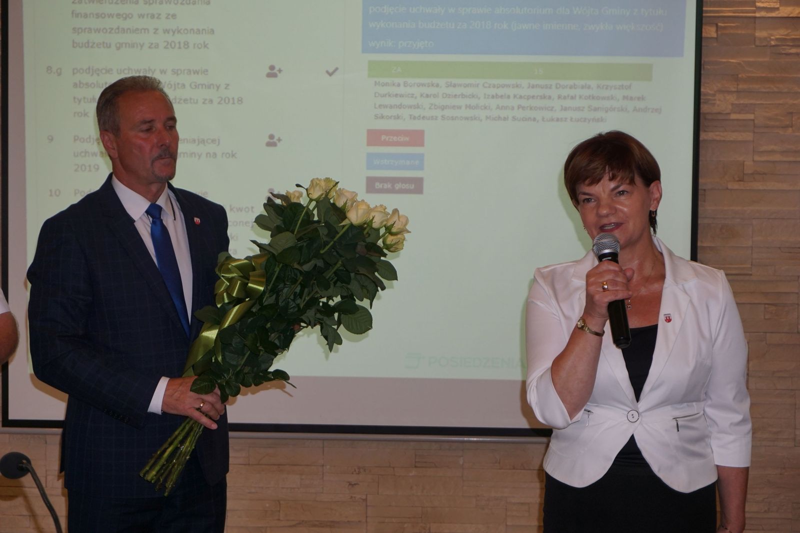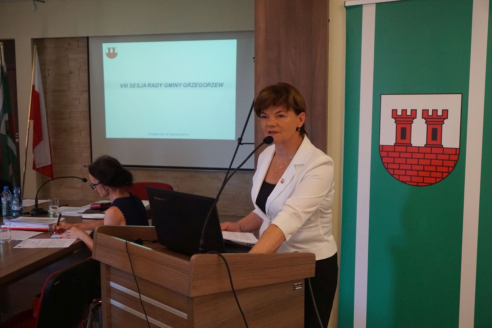 Pani Wójt Bożena Dominiak po raz pierwszy zaprezentowała 150-stronnicowy raport o stanie gminy za 2018 rok, który jest swoistym spojrzeniem na aktualną sytuację gminy. Raport ten stanowi źródło informacji w zakresie demografii, mienia komunalnego, zagospodarowania przestrzennego, prowadzonych inwestycji, oświaty, bezpieczeństwa, ochrony środowiska, pomocy społecznej, ochrony zdrowia, kultury i sportu. Pani Wójt po złożonym raporcie jednogłośnie otrzymała od Rady Gminy Grzegorzew wotum zaufania. Następnie Wójt Gminy złożyła sprawozdanie z wykonania budżetu i zadań Gminy Grzegorzew z ubiegłego roku. Dochody budżetu zrealizowane zostały w kwocie 26.128 955,00 zł, co stanowi 96,47 % planu. Wydatki budżetu gminy zostały zrealizowane w kwocie 31.917.822,76 zł, tj. w 97,13 %. W 2018 roku Gmina Grzegorzew zrealizowała inwestycje za kwotę 9.603.864,19 zł. Po przedstawionym sprawozdaniu z wykonania budżetu i zadań z 2018 roku Rada Gminy jednomyślnie podjęła uchwałę o udzieleniu Pani Wójt absolutorium z tytułu wykonania budżetu za 2018 rok. Pani Wójt nie ukrywając wzruszenia podziękowała pracownikom urzędu gminy za pracę i zaangażowanie, podkreślając, że to ich wspólny sukces.