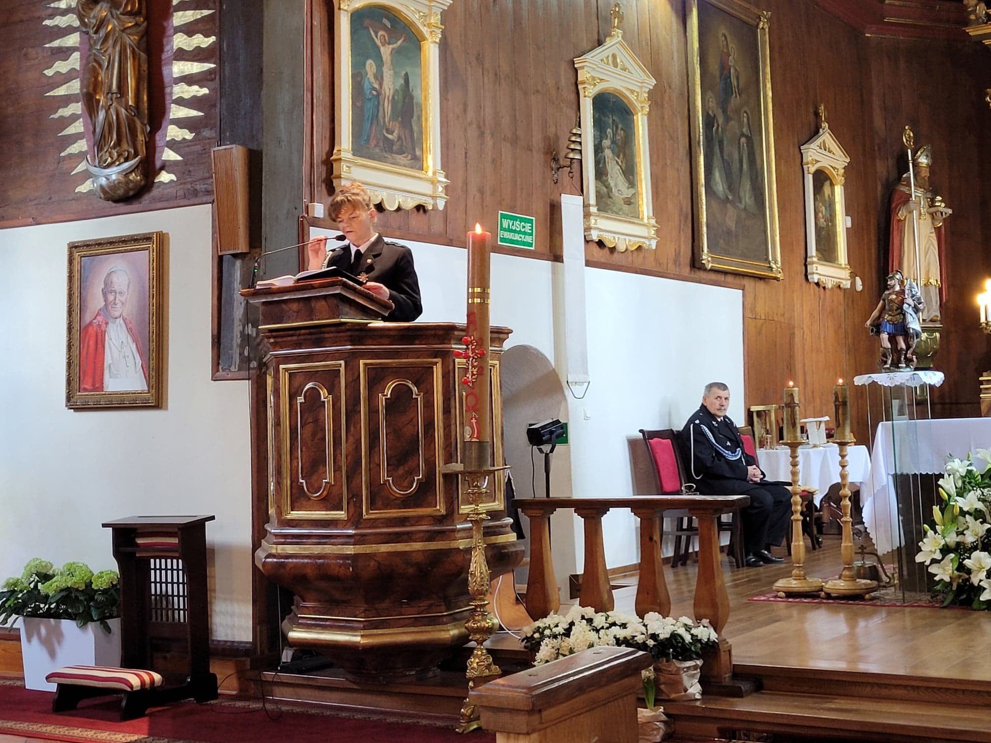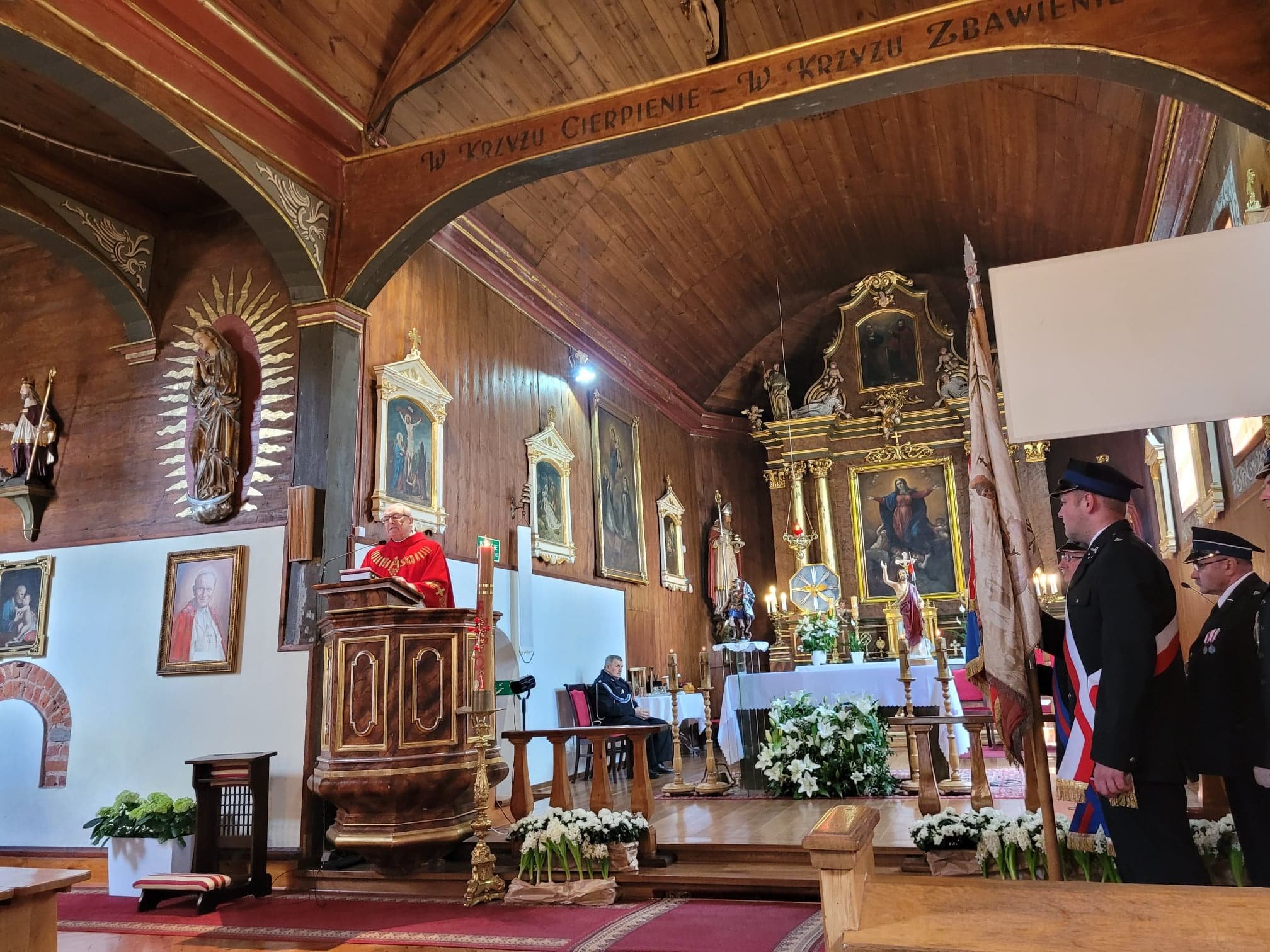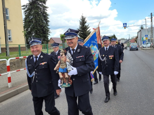 W trakcie Mszy Św. Ksiądz Prałat poświęcił figurkę Św. Floriana patrona Strażaków, którą ufundował Pan Piotr Opas - Członek Zarządu Głównego Związku Ochotniczych Straży Pożarnych RP w Warszawie.