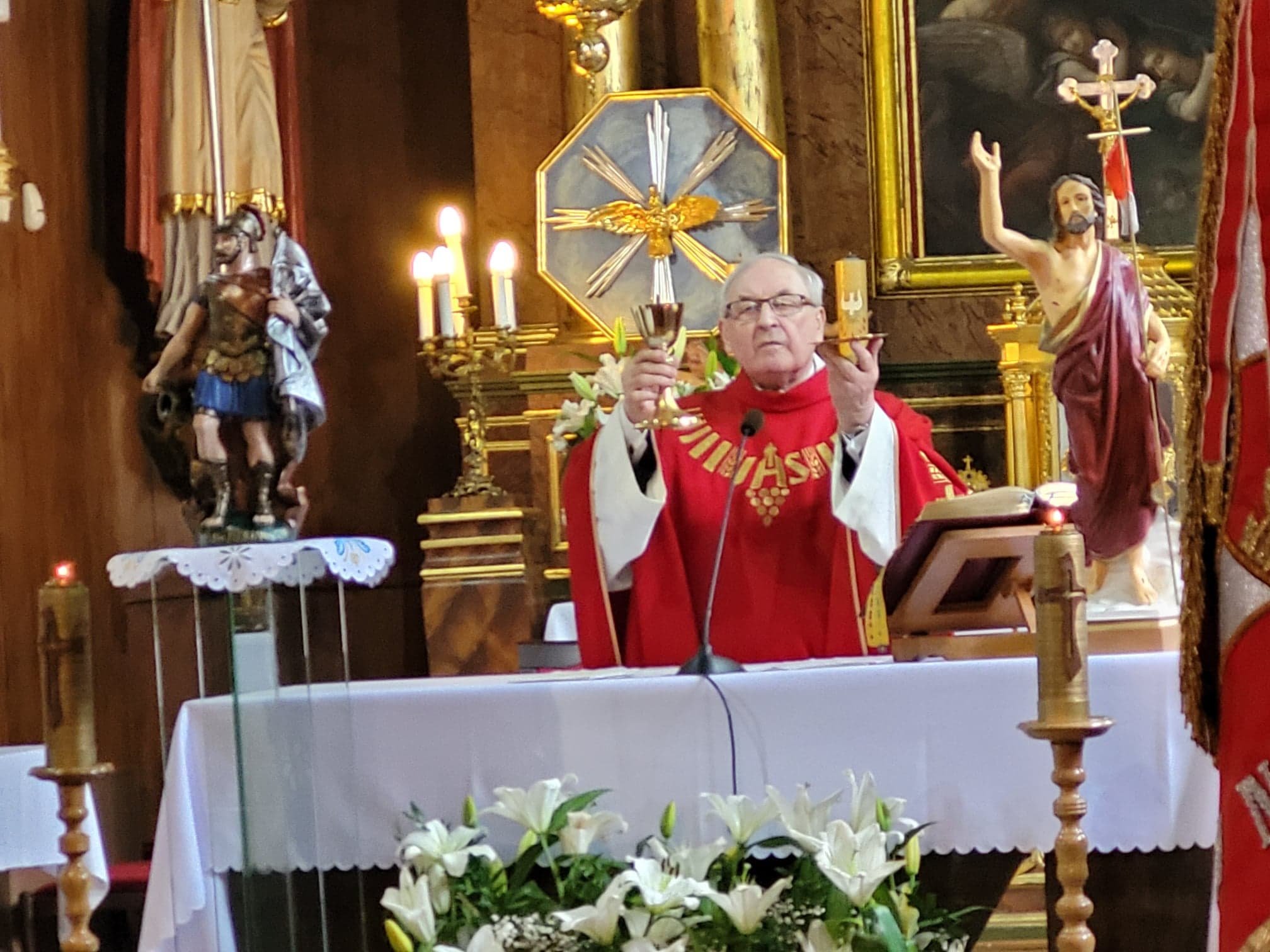 Świętowanie rozpoczęto zbiórką i uroczystym przemarszem z akompaniamentem Orkiestry do Kościoła Parafialnego gdzie miała miejsce Msza Święta w intencji druhów Strażaków, której przewodniczył Ksiądz Prałat Michał Pietrzak.