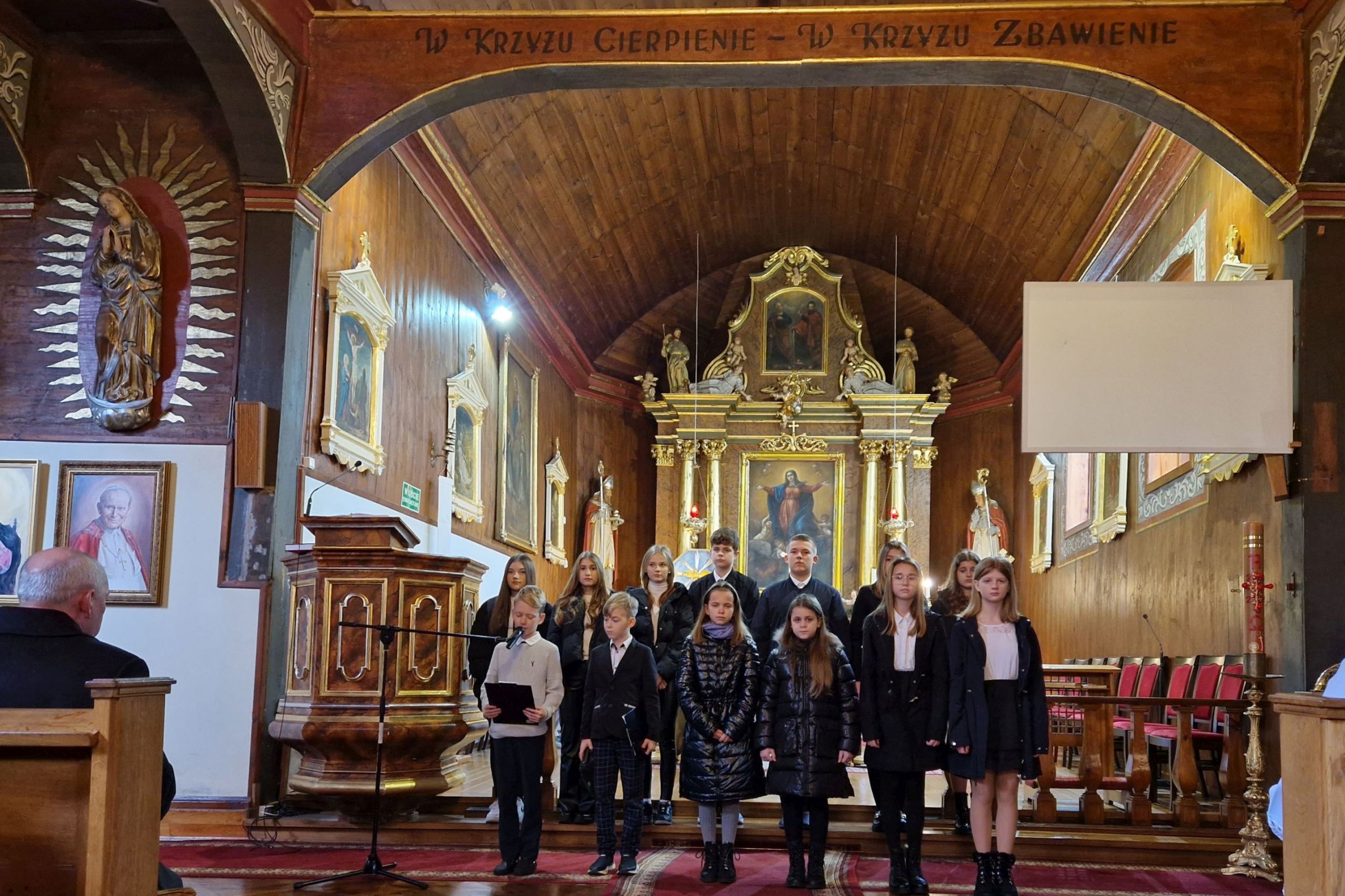 Uczniowie Szkoły Podstawowej im. Tadeusza Zawadzkiego „Zośki” w Grzegorzewie przedstawili nam montaż słowno-muzyczny pt. ,,Nie rzucim ziemi skąd nasz ród”, przypominając nam najważniejsze daty z historii naszego kraju i wzbudzając w nas wielkie emocje.