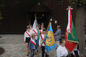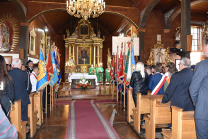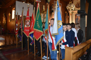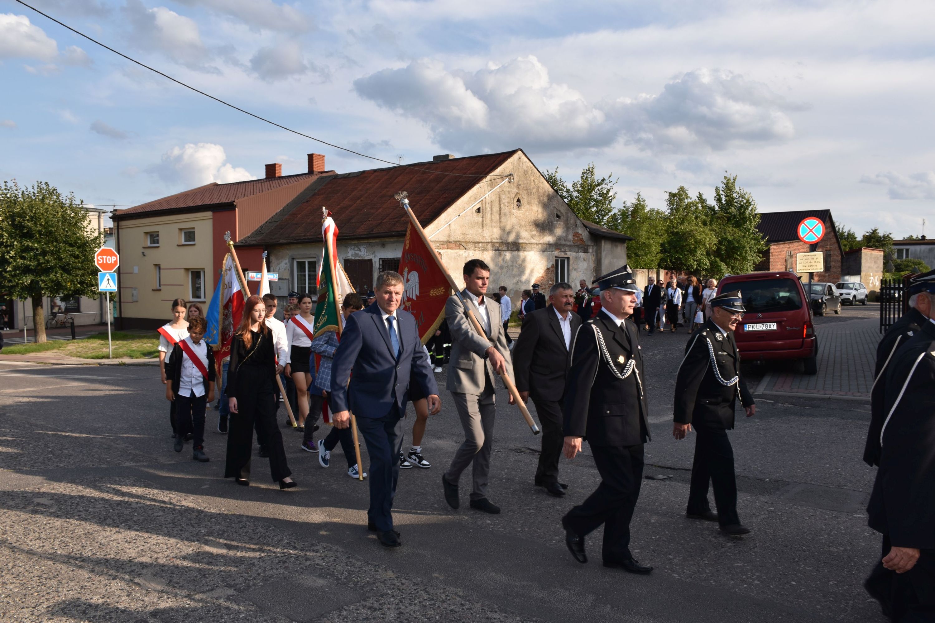 Po zbiórce przed Domem Strażaka samorządowcy, poczty sztandarowe, delegacje jednostek OSP, placówek oświatowych i mieszkańcy gminy na czele z orkiestrą dętą udali się do kościoła parafialnego, aby uczestniczyć we Mszy Świętej w intencji poległych w obronie naszej ojczyzny.
