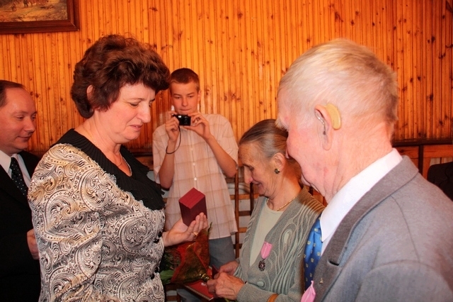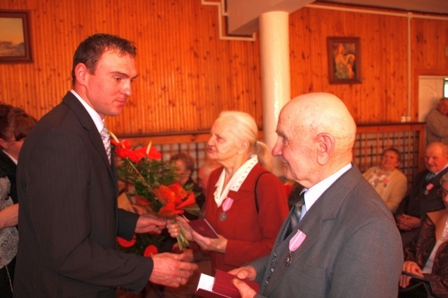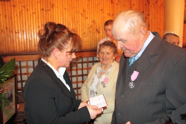 Aktu dekoracji medalami dokonała w imieniu Prezydenta RP Bożena Dominiak Wójt Gminy wraz z Przewodniczącym Rady Gminy Waldemarem Banasiakiem i Z-cą Kierownika USC Urszulą Kikosicką.