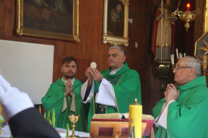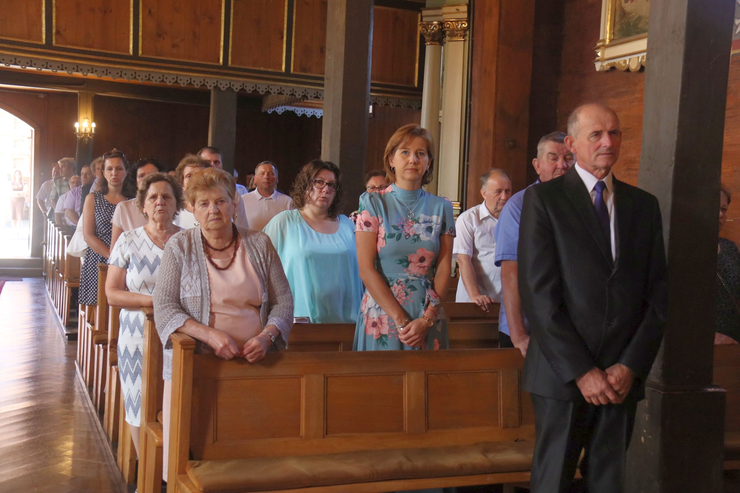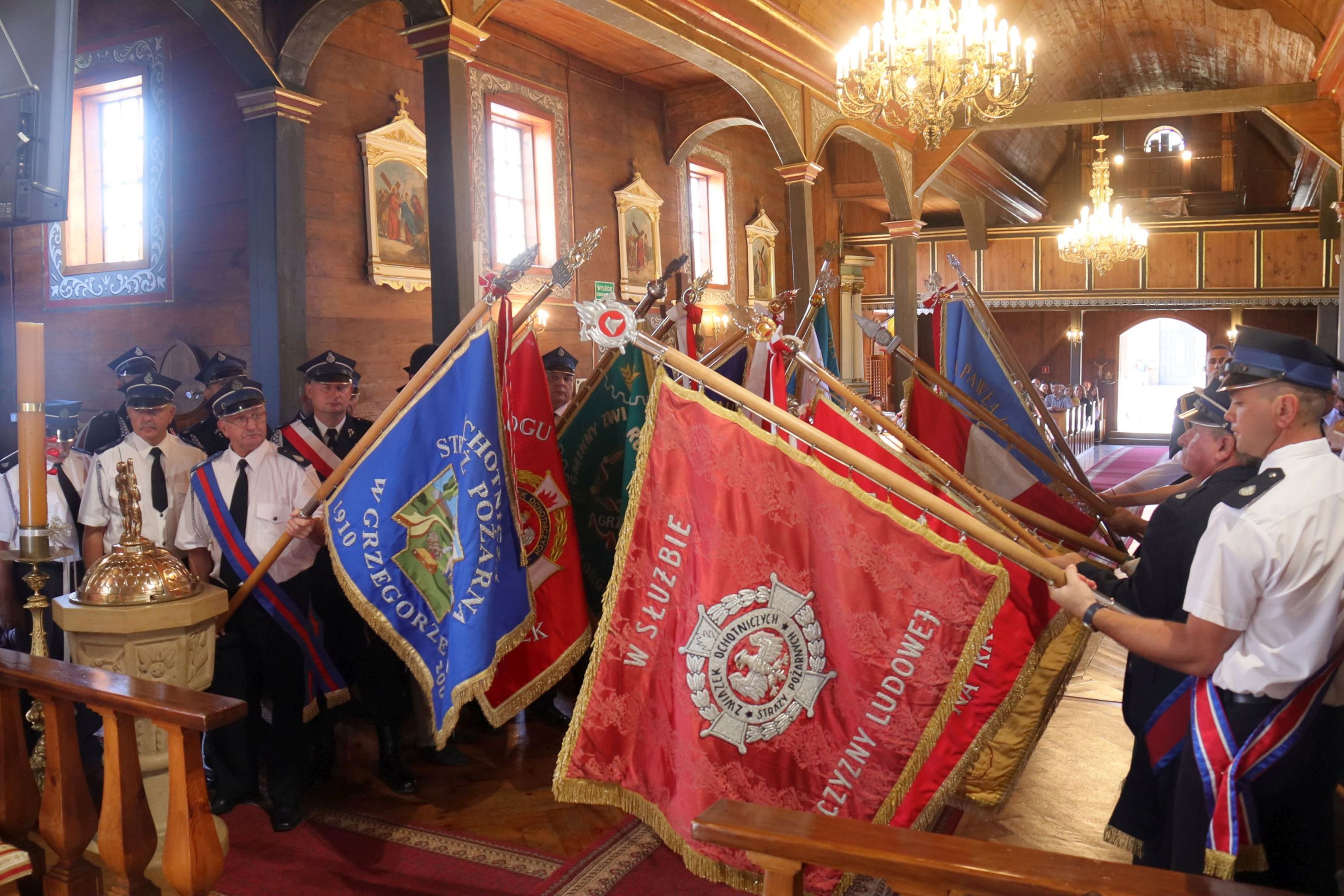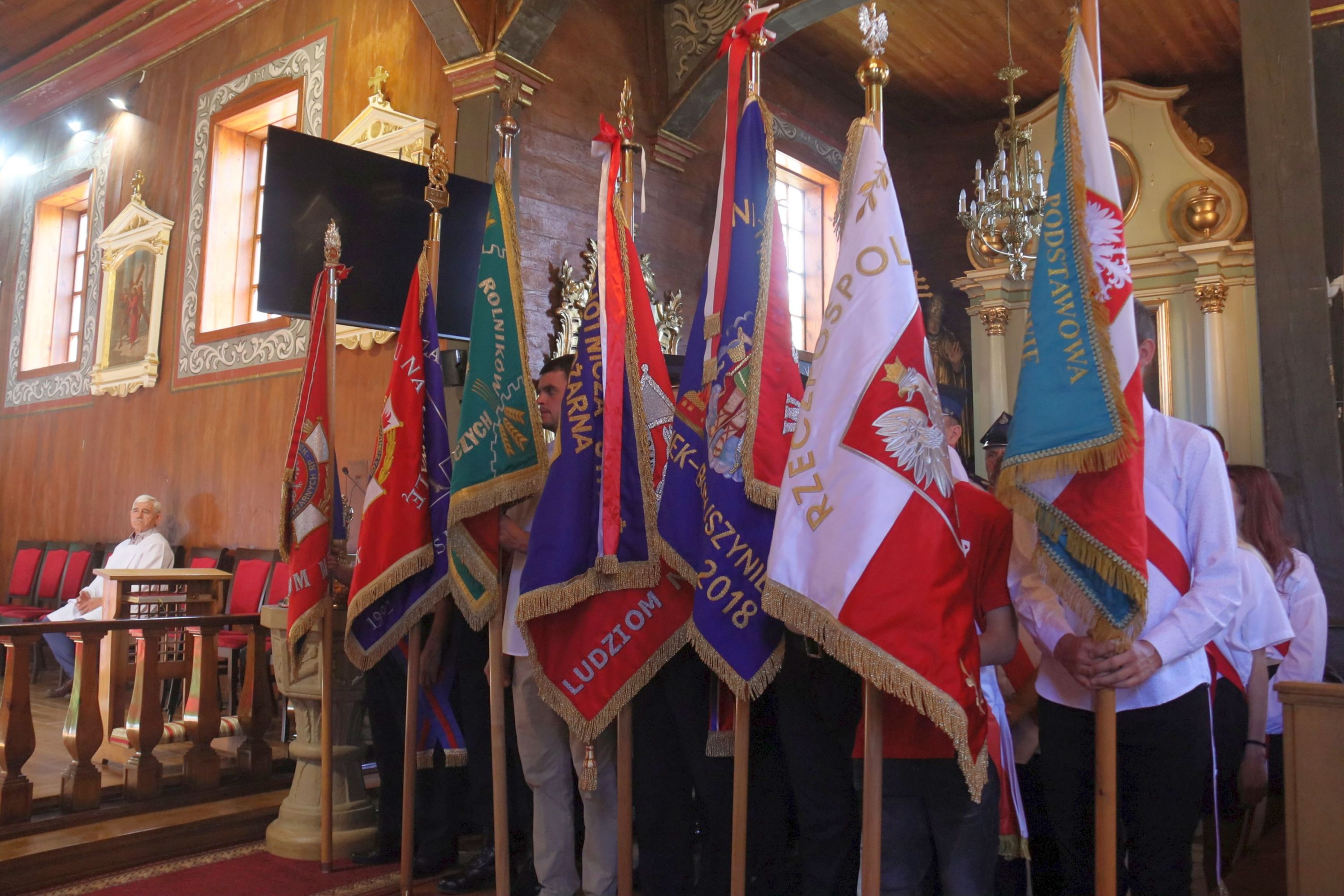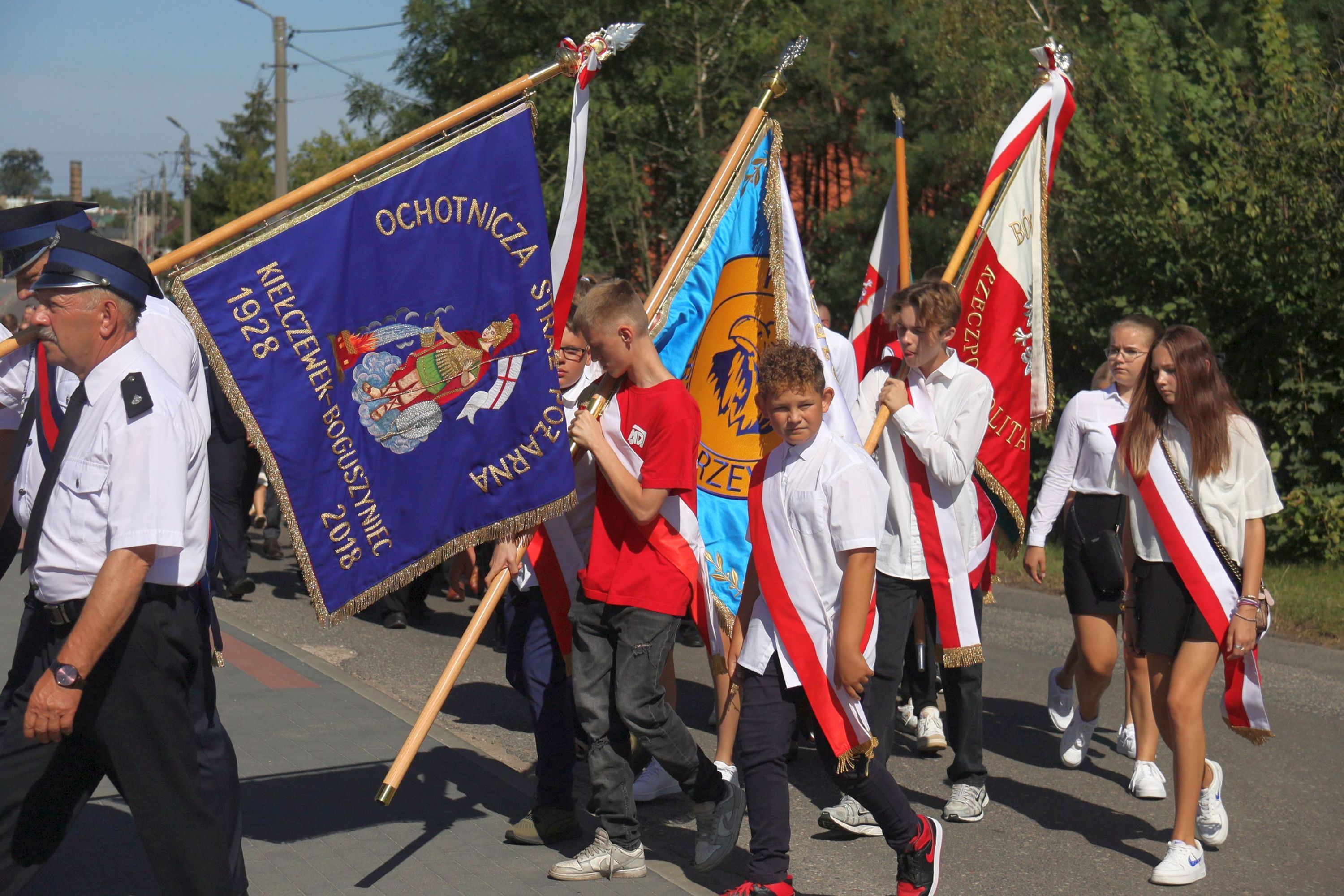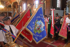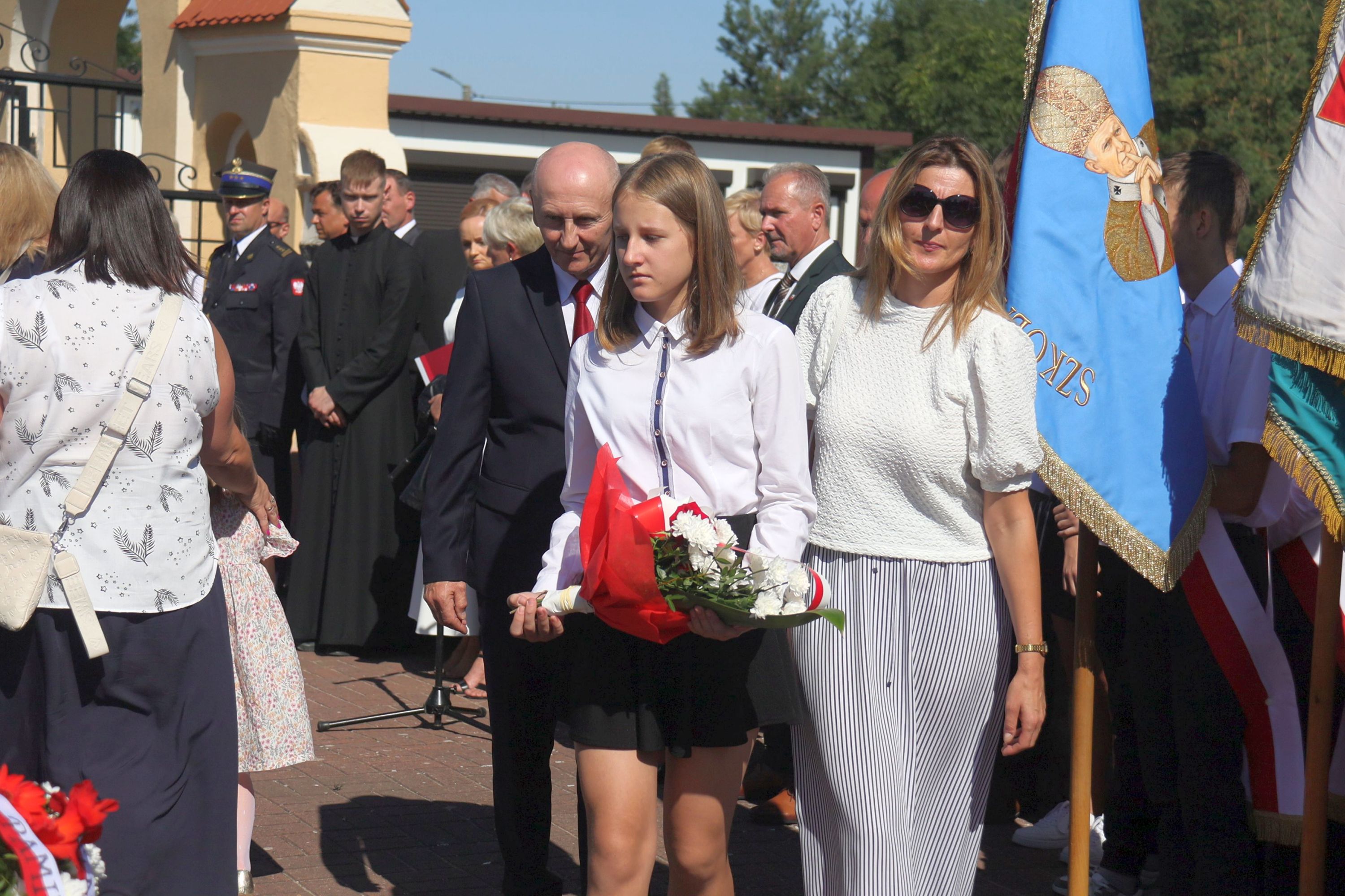 Po zbiórce przed Domem Strażaka samorządowcy, poczty sztandarowe, delegacje jednostek OSP, placówek oświatowych, kół gospodyń wiejskich, zaproszeni goście oraz mieszkańcy gminy na czele z orkiestrą dętą udali się do kościoła parafialnego aby uczestniczyć we Mszy świętej w intencji poległych w obronie naszej ojczyzny. Mszę Świętą odprawił ksiądz proboszcz Tomasz Król w koncelebrze z księdzem prałatem Michałem Pietrzakiem oraz księdzem wikariuszem Bartłomiejem Pyką z parafii Św. Bartłomieja Apostoła w Koninie.