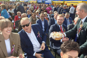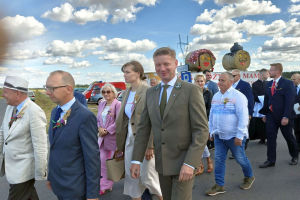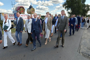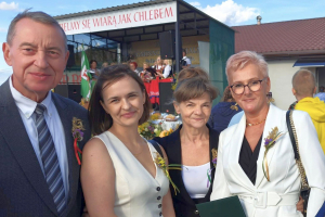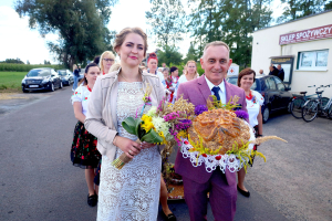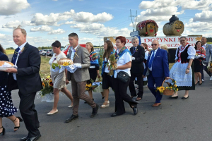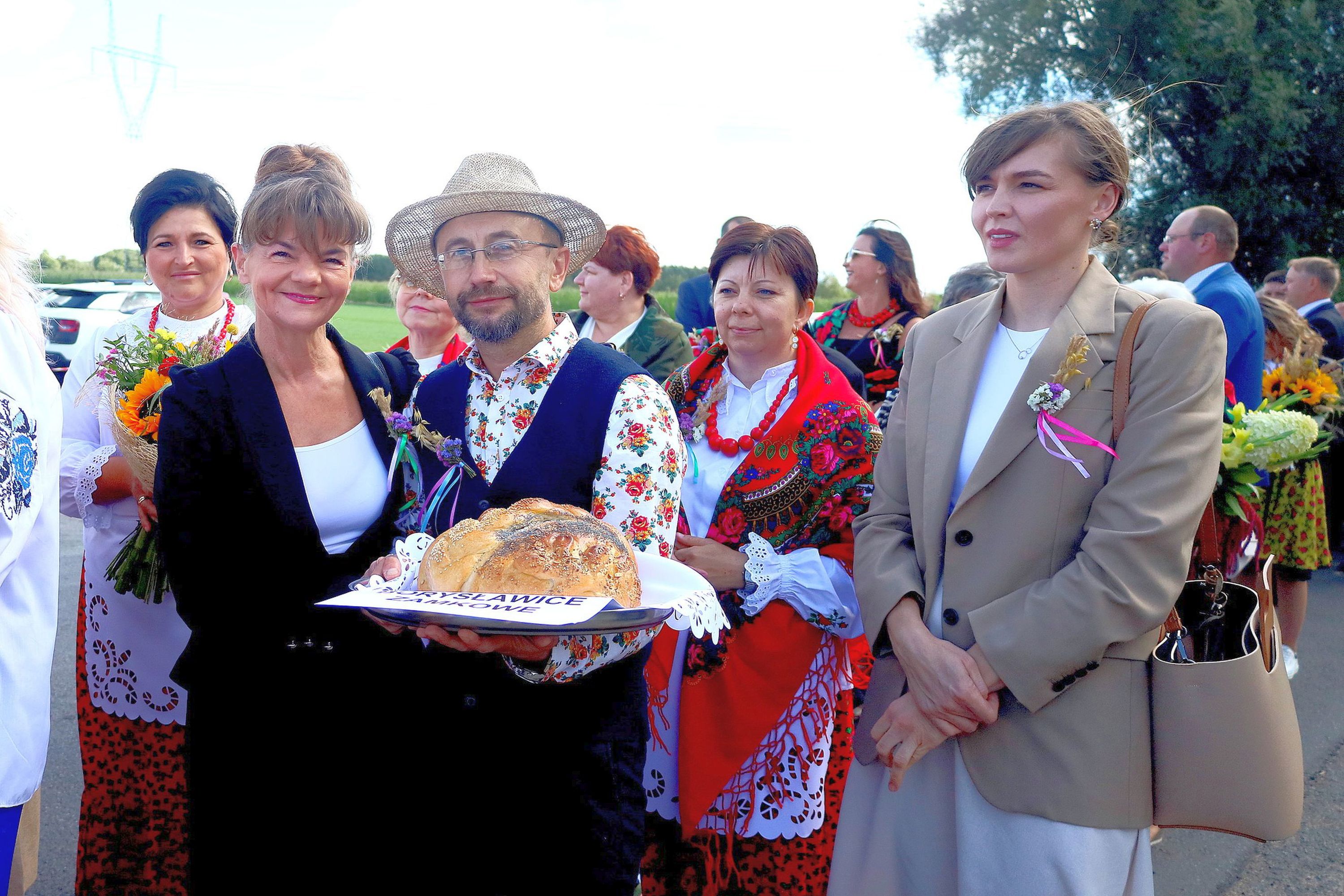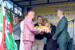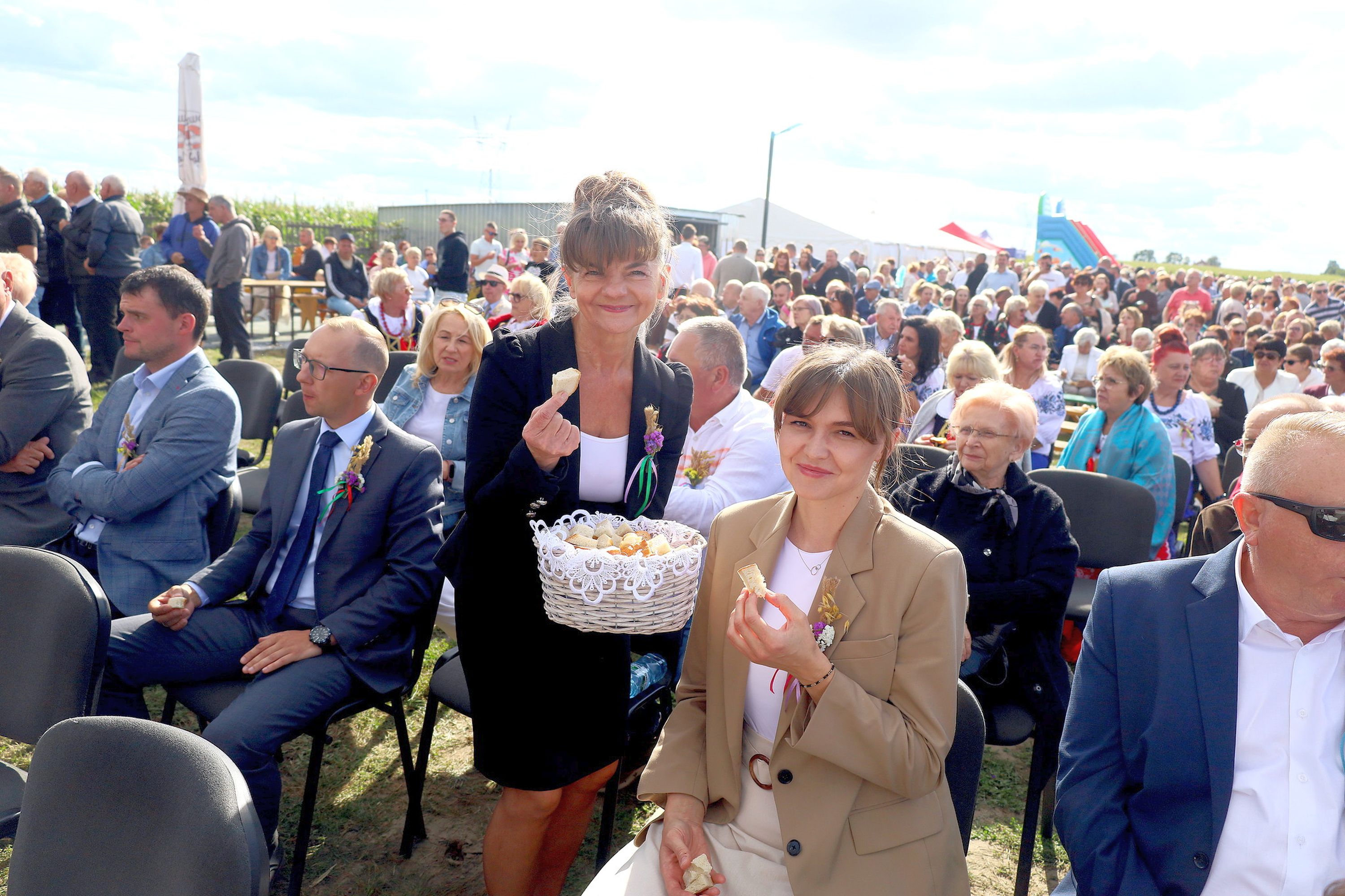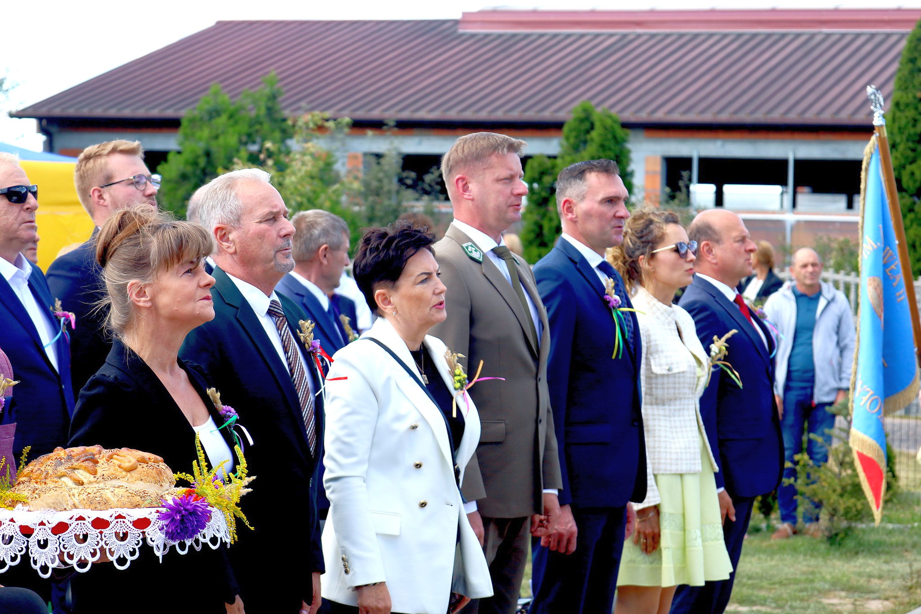 Jednym z centralnych momentów uroczystości było przekazanie chleba dożynkowego przez starostów – Katarzynę Janiak i Marcina Stegentę – na ręce Wójt Gminy oraz Przewodniczącego Rady Gminy Tadeusza Sosnowskiego. W krótkim przemówieniu Wójt Dominiak wyraziła wdzięczność za otrzymany bochen i zadeklarowała troskę o dobro wspólnoty lokalnej.