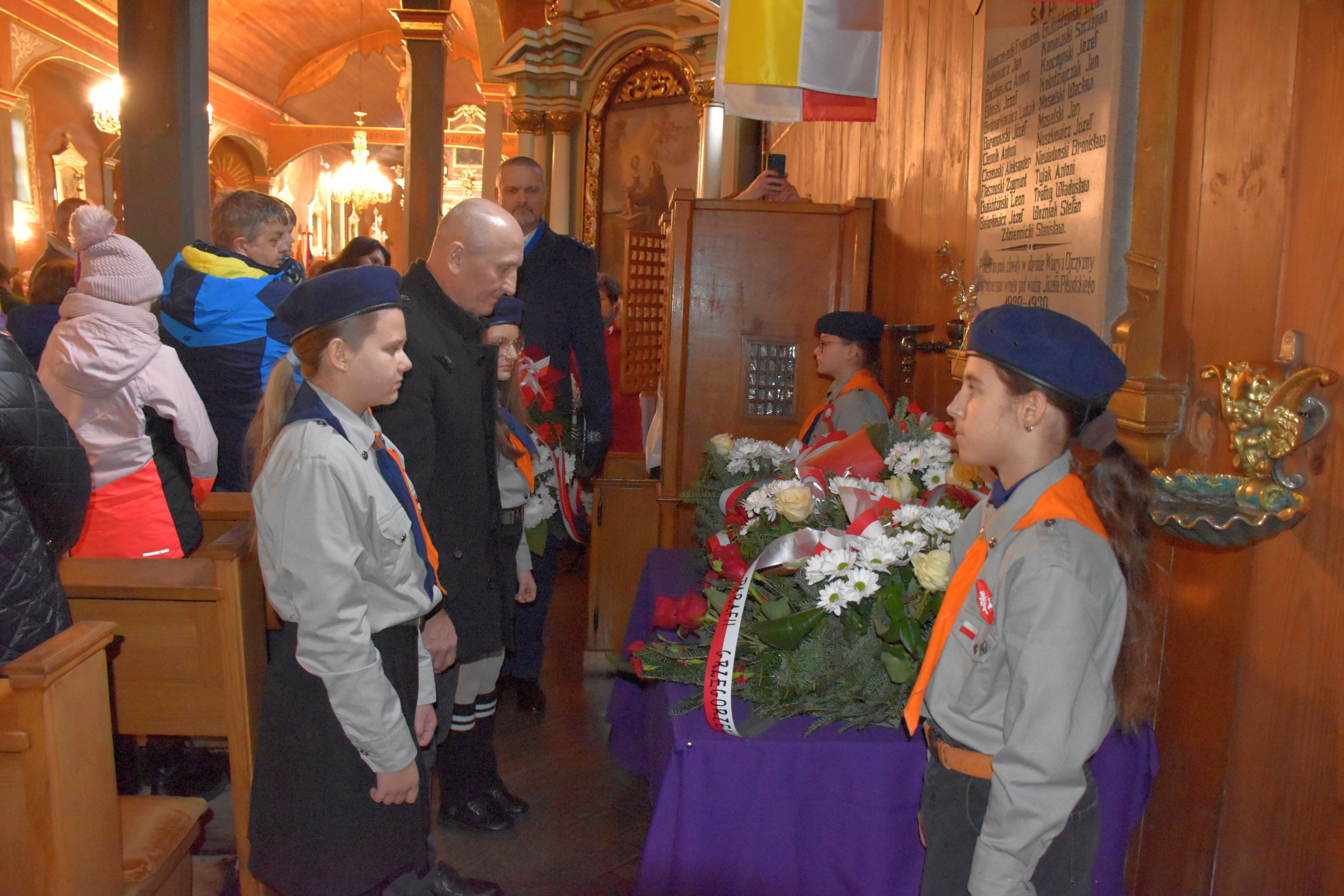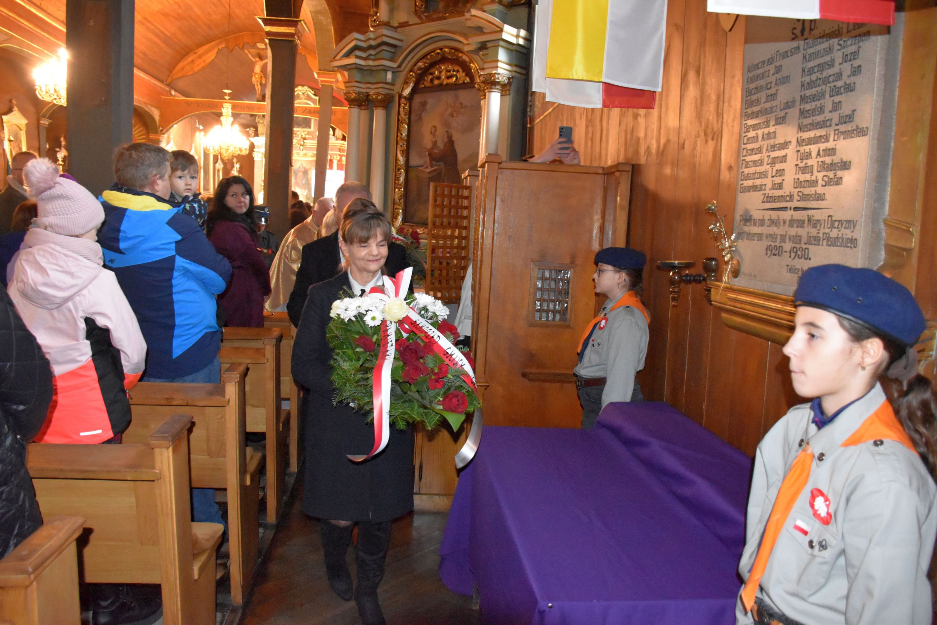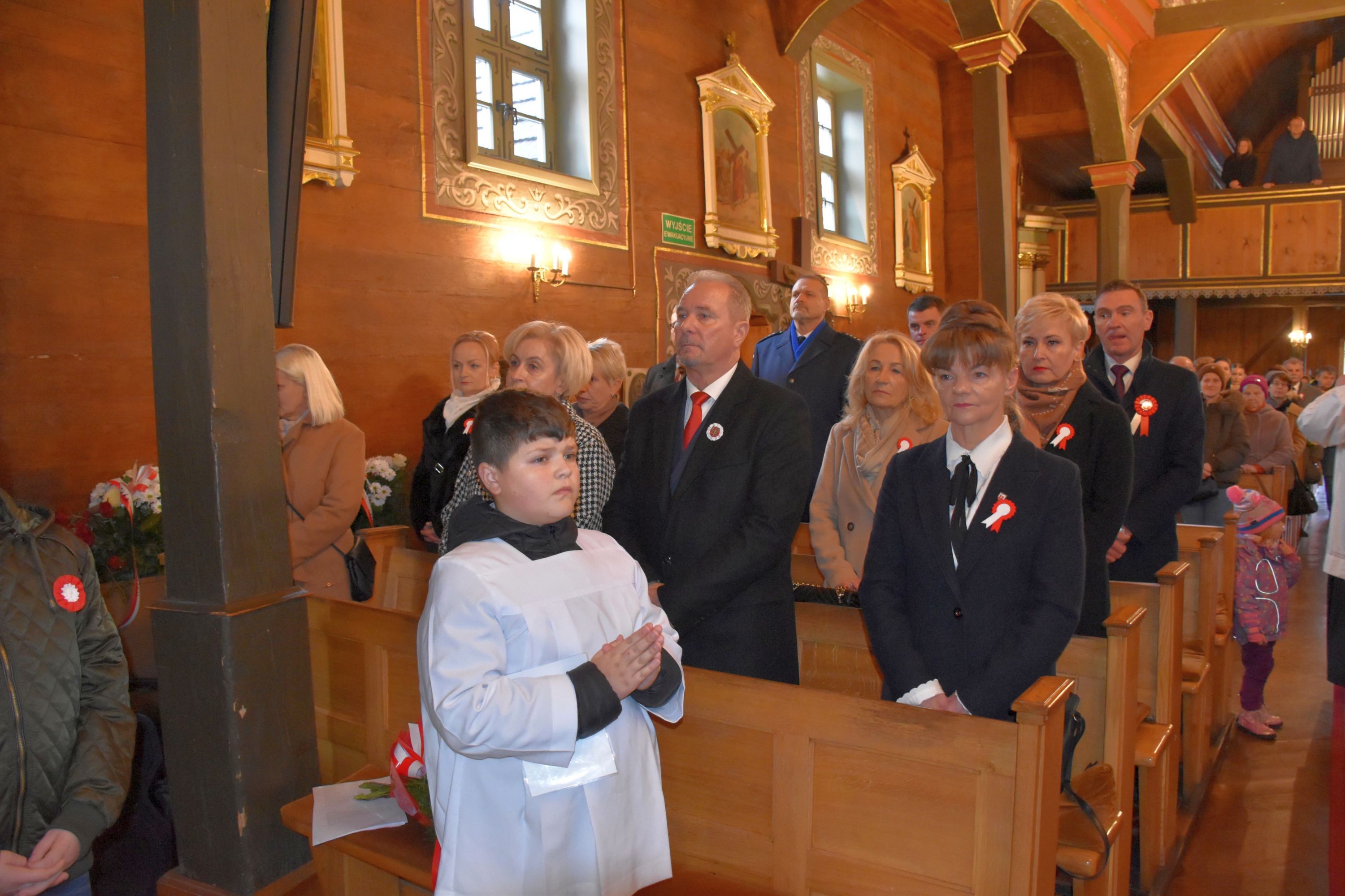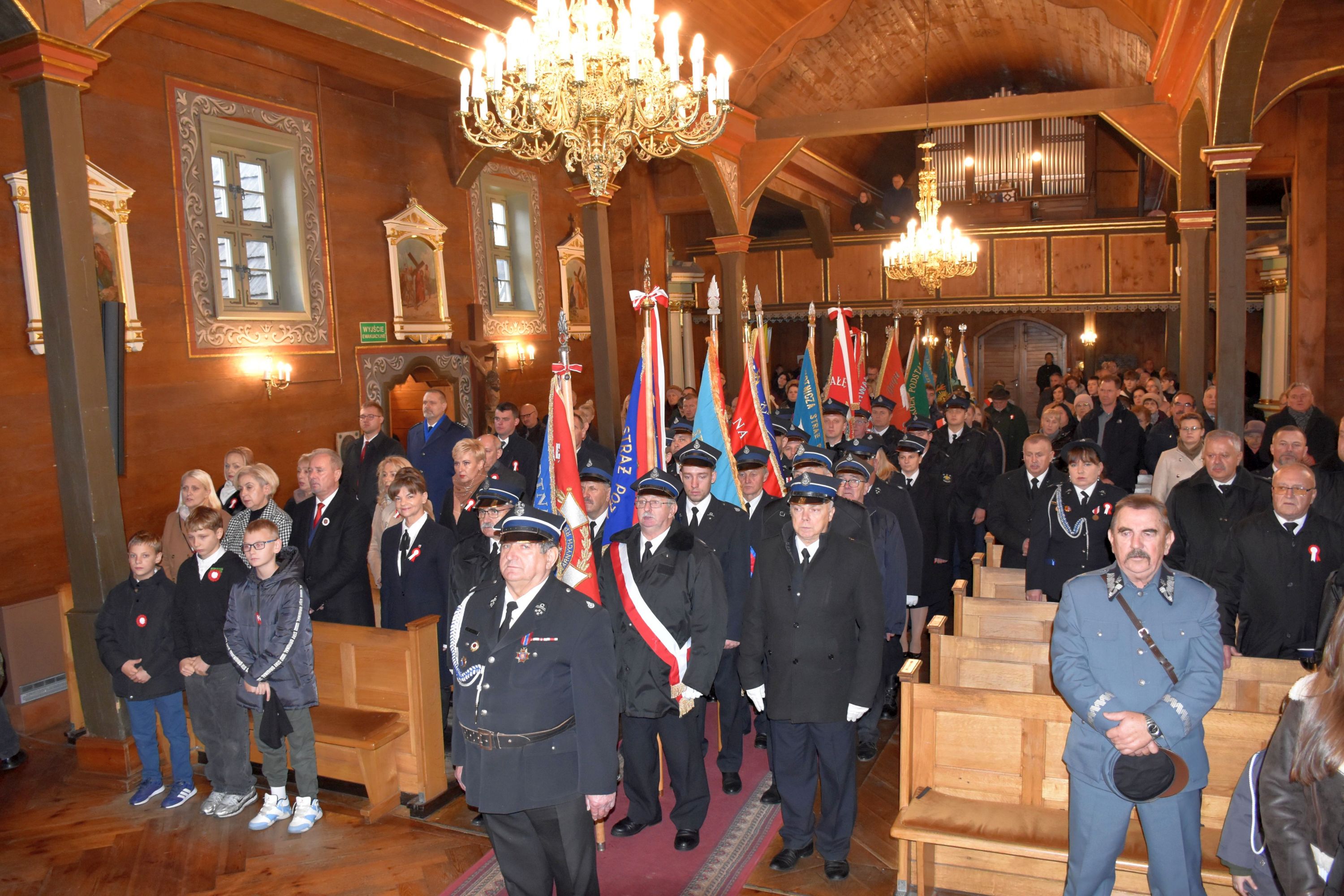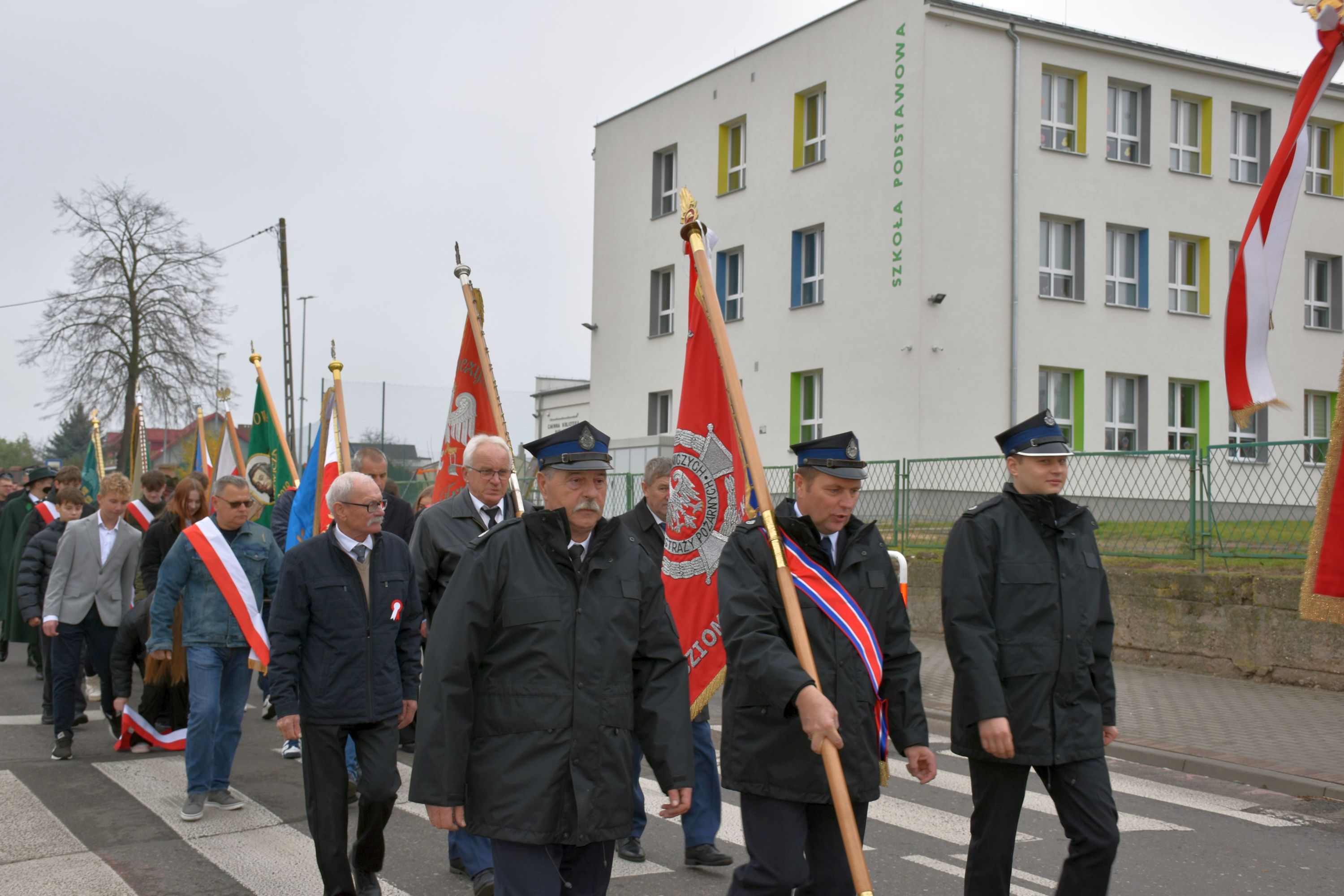 Stamtąd wszyscy uczestnicy w uroczystym przemarszu, przy akompaniamencie Strażackiej Orkiestry Dętej, udali się ulicami Grzegorzewa do Kościoła pw. św. Mikołaja. Mszę Świętą w intencji Ojczyzny odprawił proboszcz parafii w Grzegorzewie, ks. Tomasz Król, w koncelebrze z ks. kanonikiem Andrzejem Piesikiem – proboszczem parafii pw. Wniebowzięcia NMP w Borysławicach Kościelnych.
